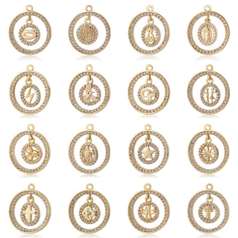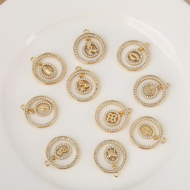 Cubique Pendentif en laiton zircon pavent, fleur, Plaqué or 18K, styles différents pour le choix & pavé de micro zircon & pour femme, Vendu par PC