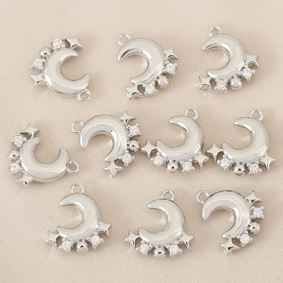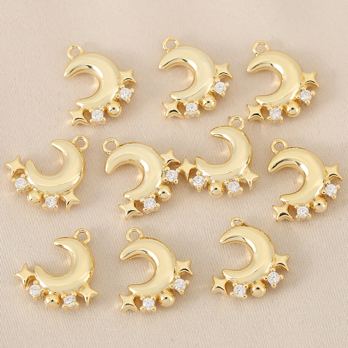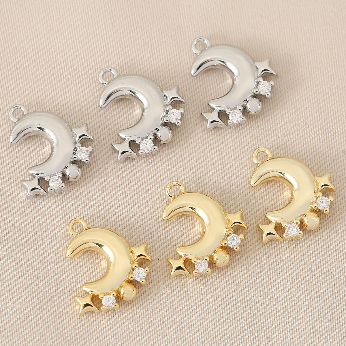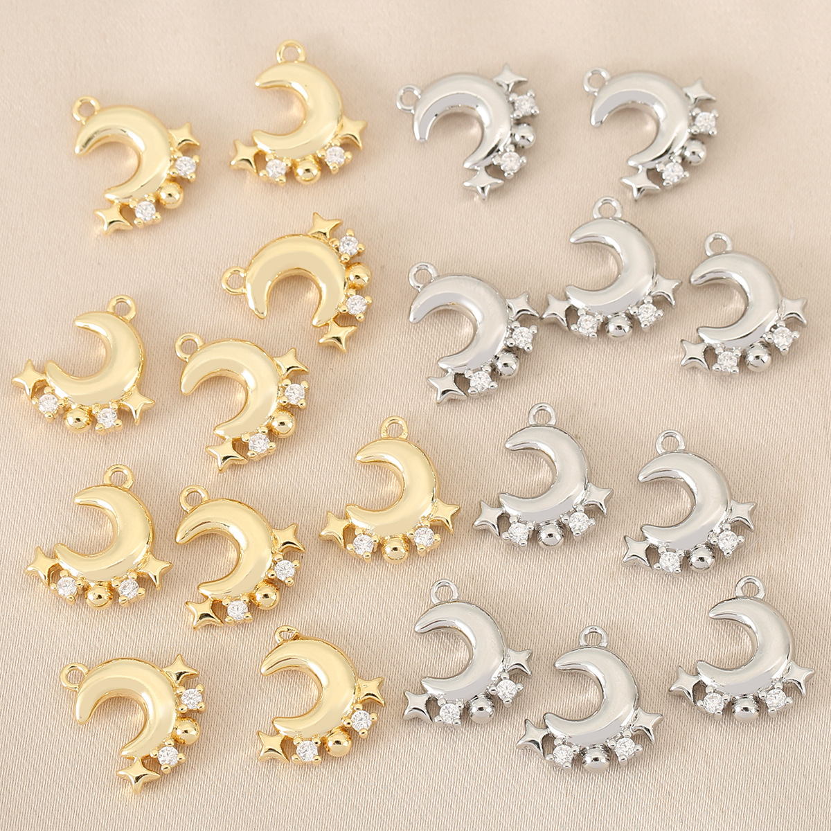 Cubique Pendentif en laiton zircon pavent, Lune et Etoile, Placage, DIY & pavé de micro zircon, plus de couleurs à choisir, protéger l'environnement, sans nickel, plomb et cadmium, 10PC/sac, Vendu par sac