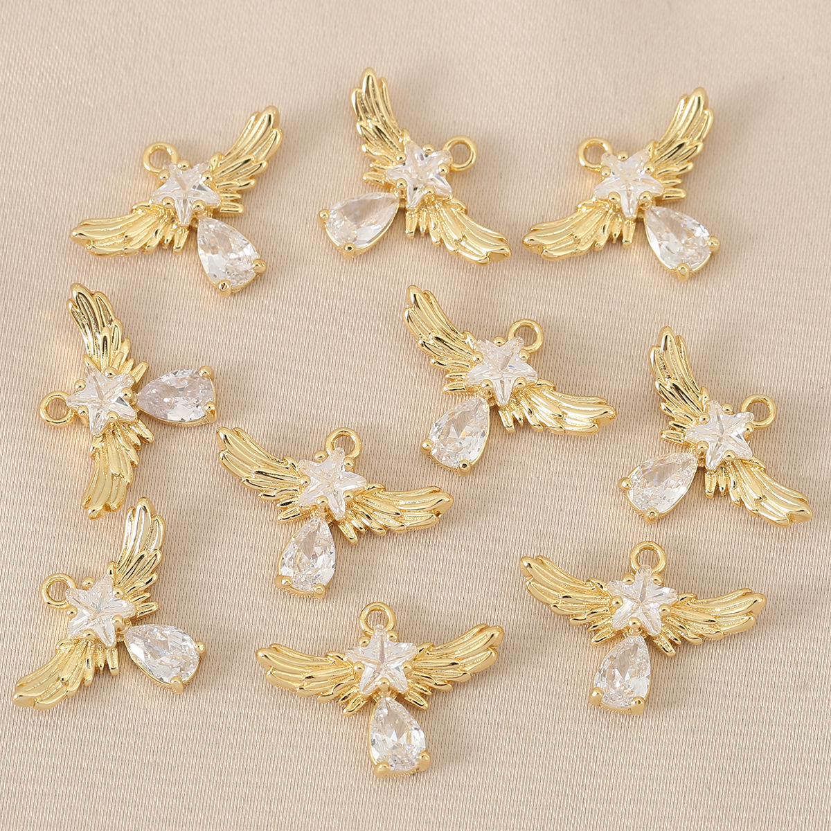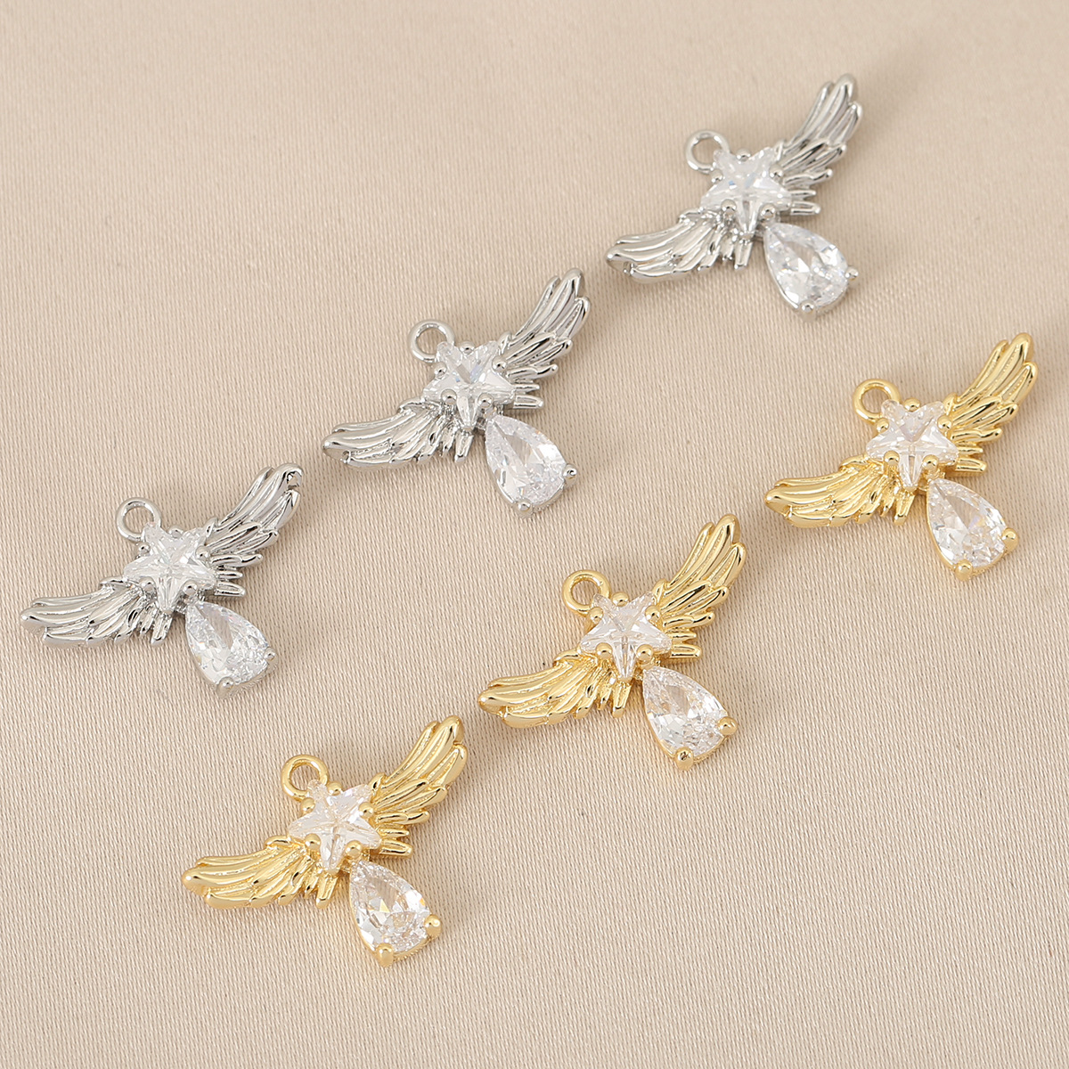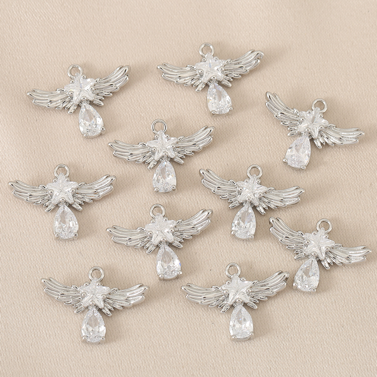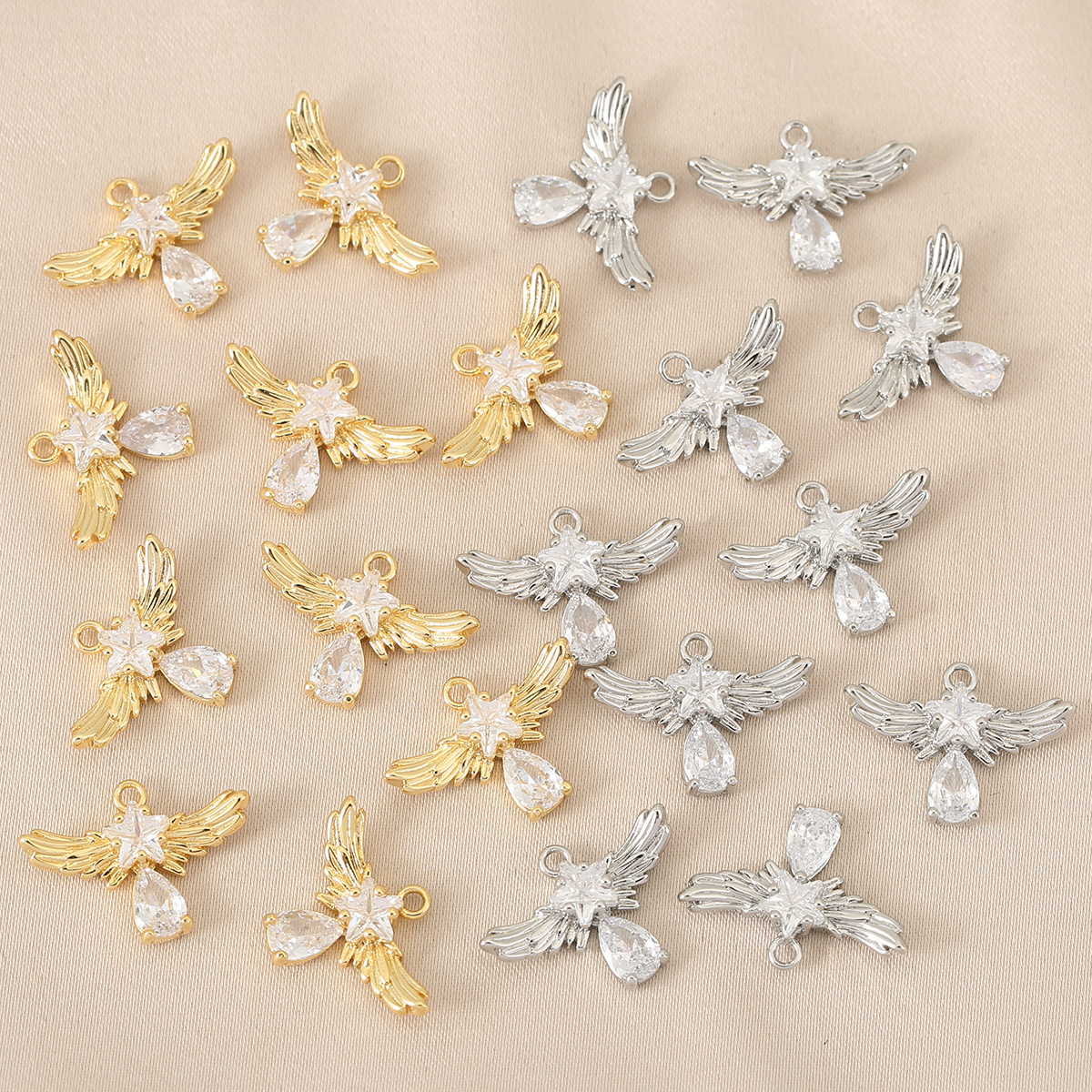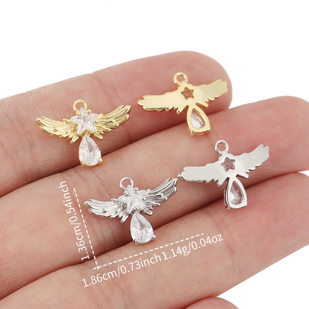 Cubique Pendentif en laiton zircon pavent, aile d'ange, Placage, DIY & pavé de micro zircon, plus de couleurs à choisir, protéger l'environnement, sans nickel, plomb et cadmium, 10PC/sac, Vendu par sac