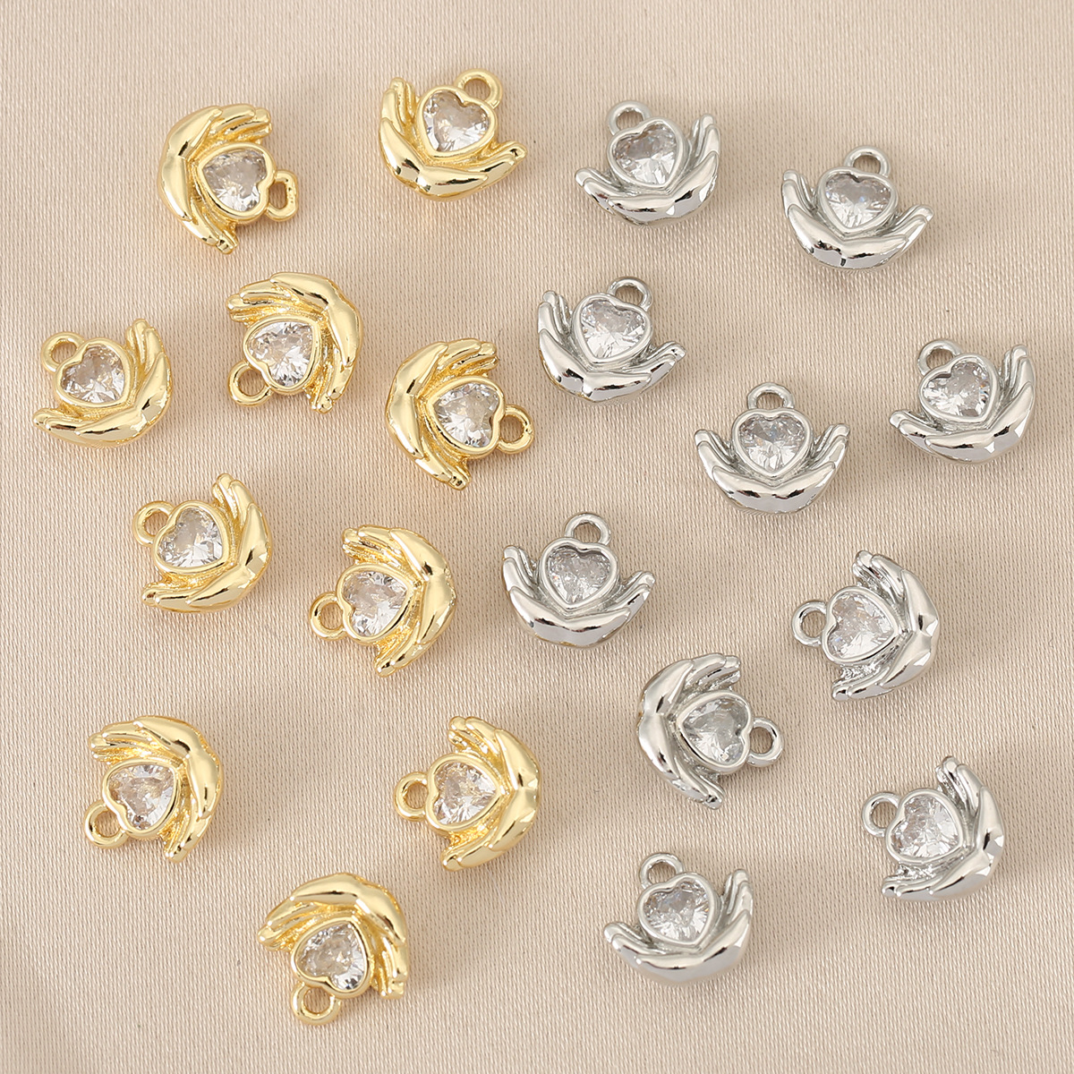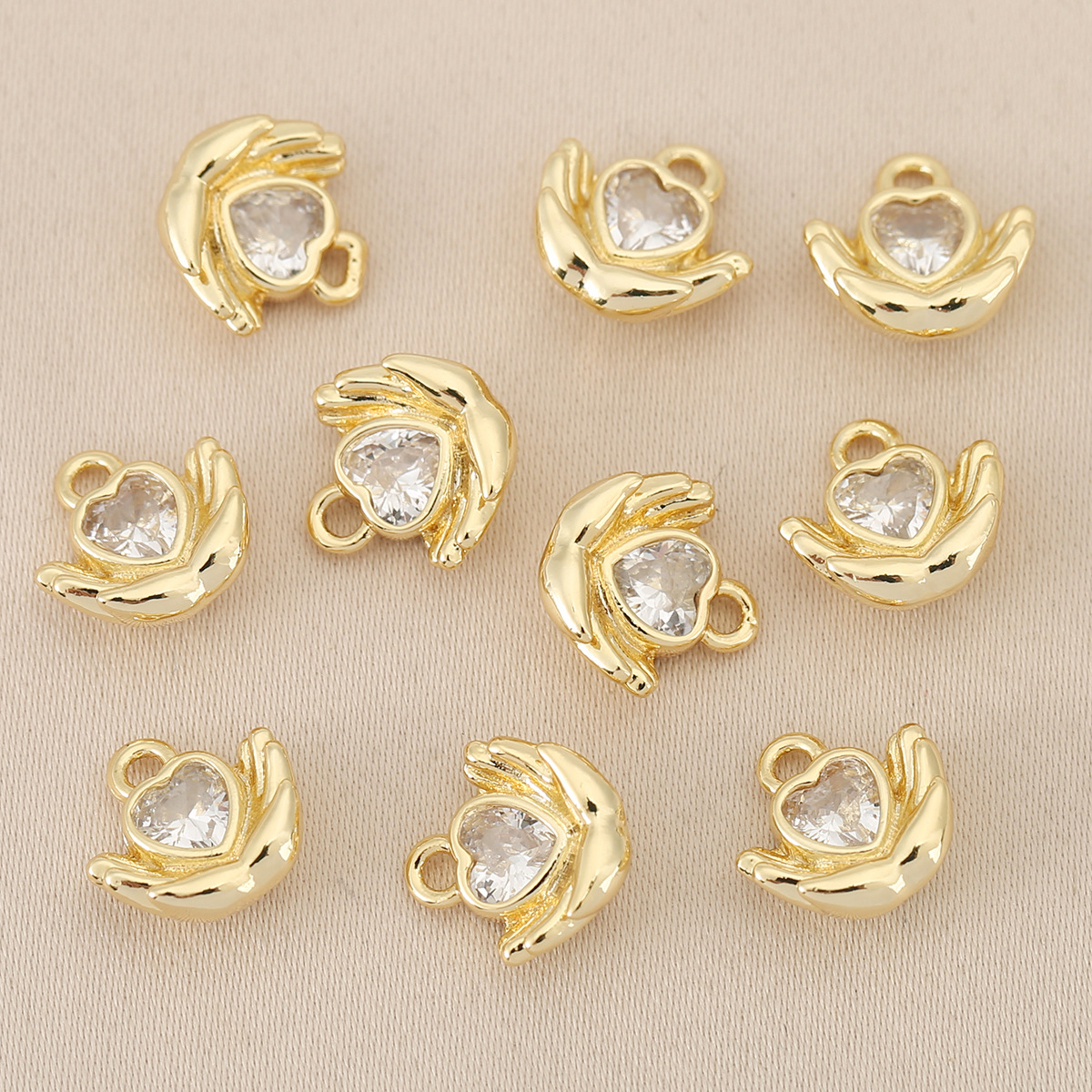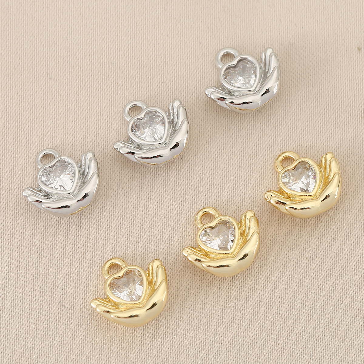Cubique Pendentif en laiton zircon pavent, coeur, Placage, DIY & pavé de micro zircon, plus de couleurs à choisir, protéger l'environnement, sans nickel, plomb et cadmium, 10PC/sac, Vendu par sac