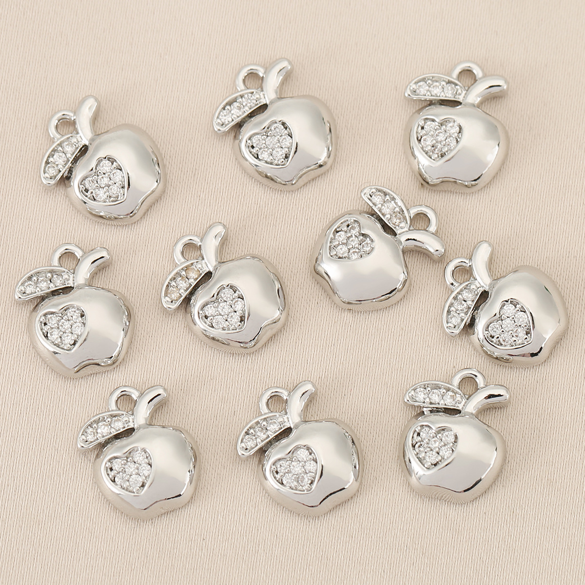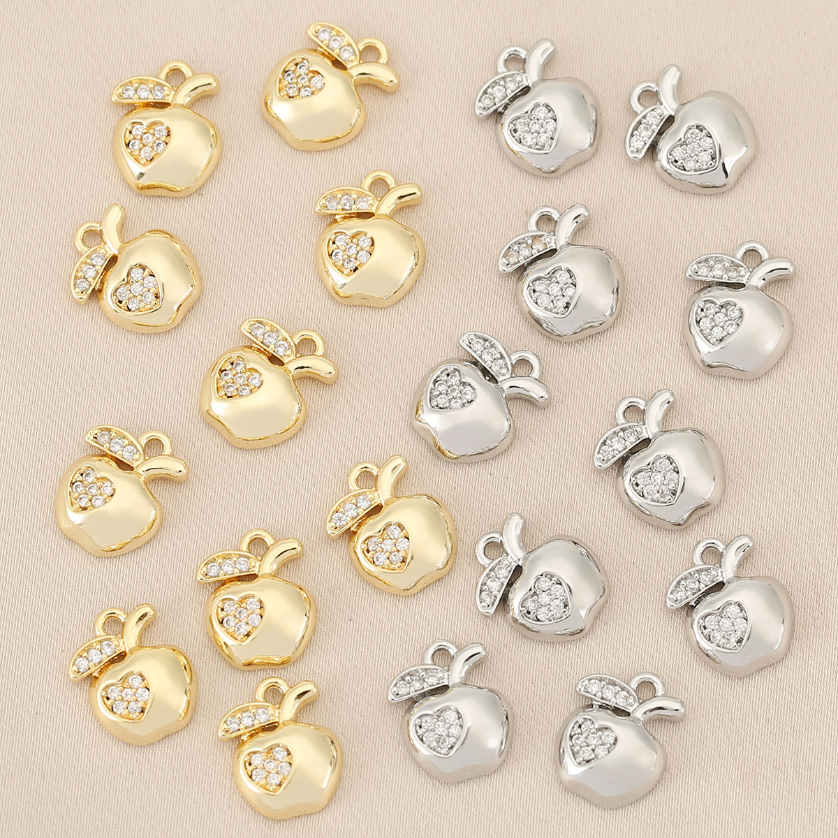 Cubique Pendentif en laiton zircon pavent, pomme, Placage, DIY & pavé de micro zircon, plus de couleurs à choisir, protéger l'environnement, sans nickel, plomb et cadmium, 10PC/sac, Vendu par sac