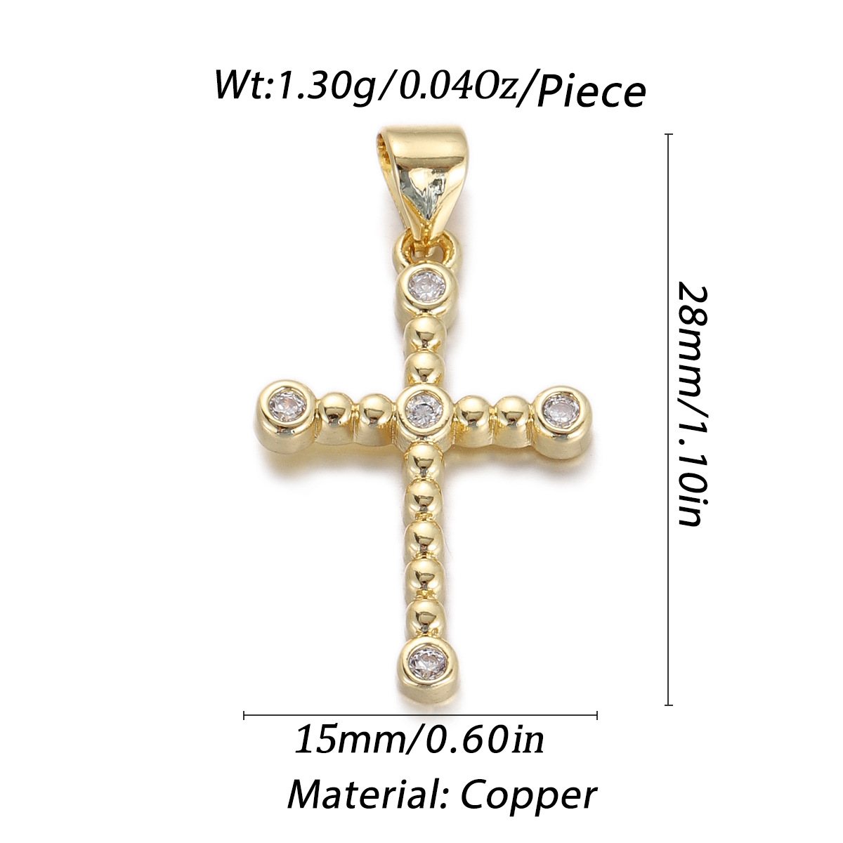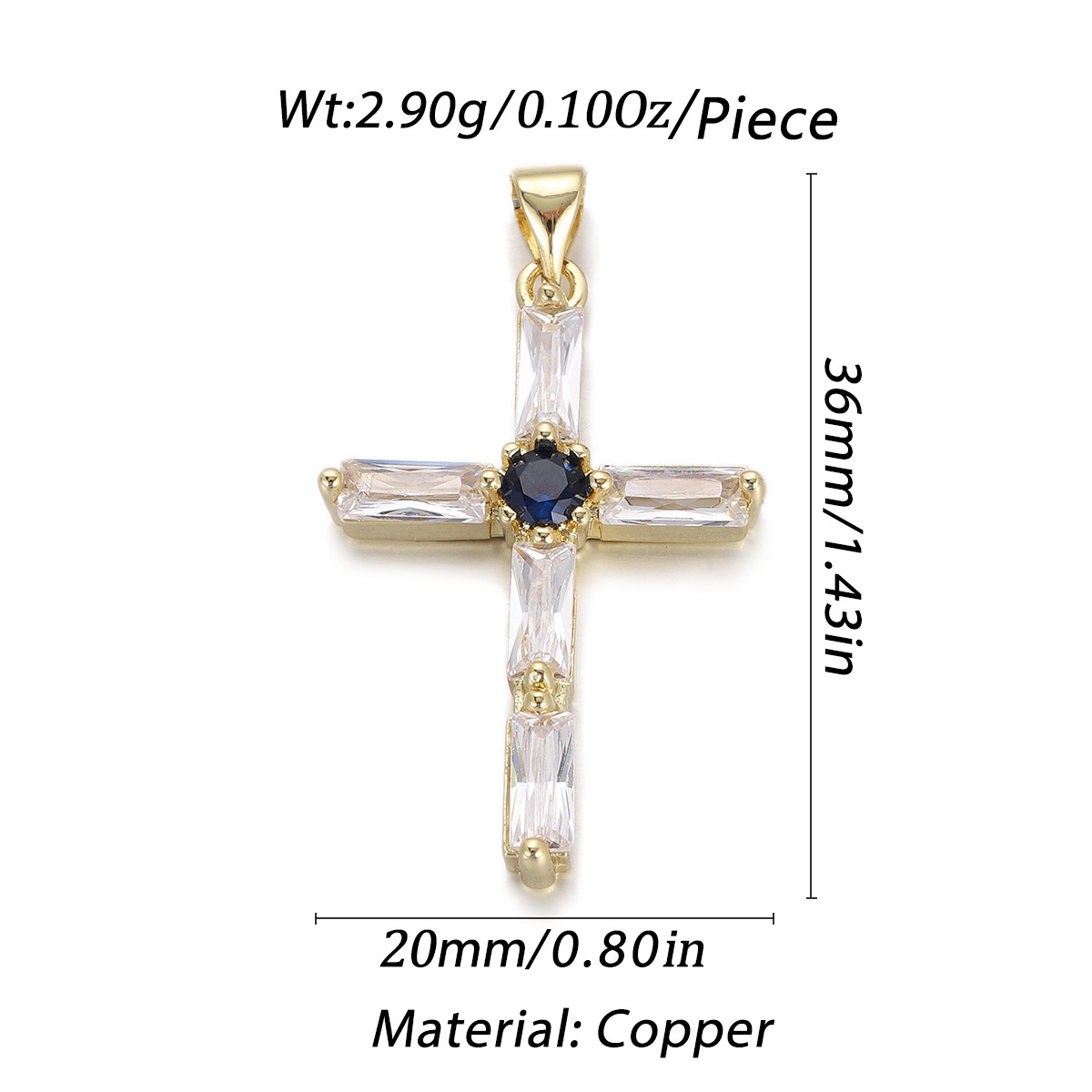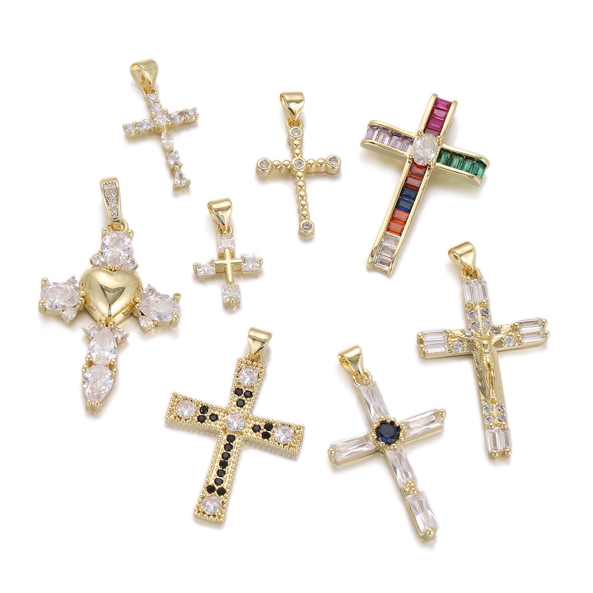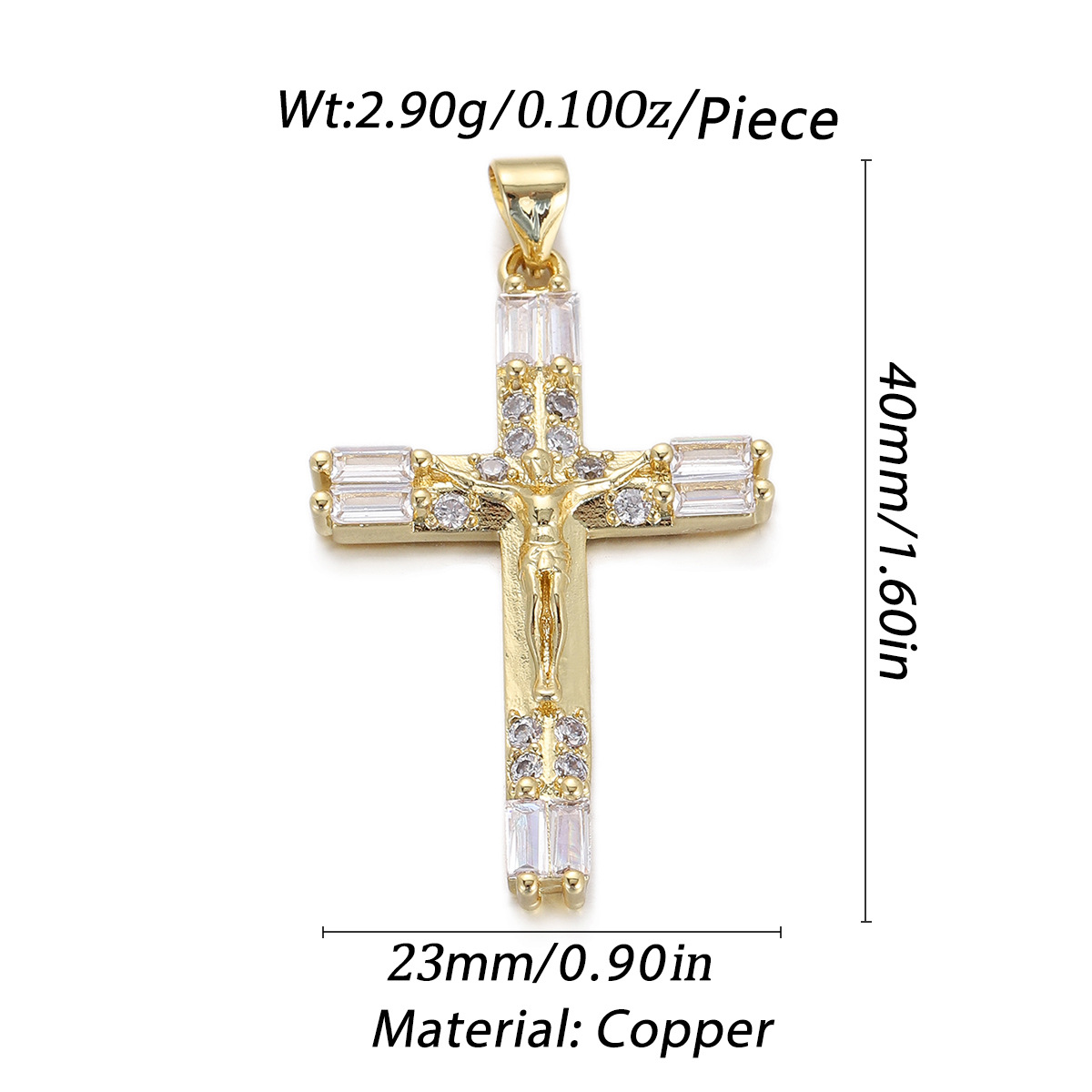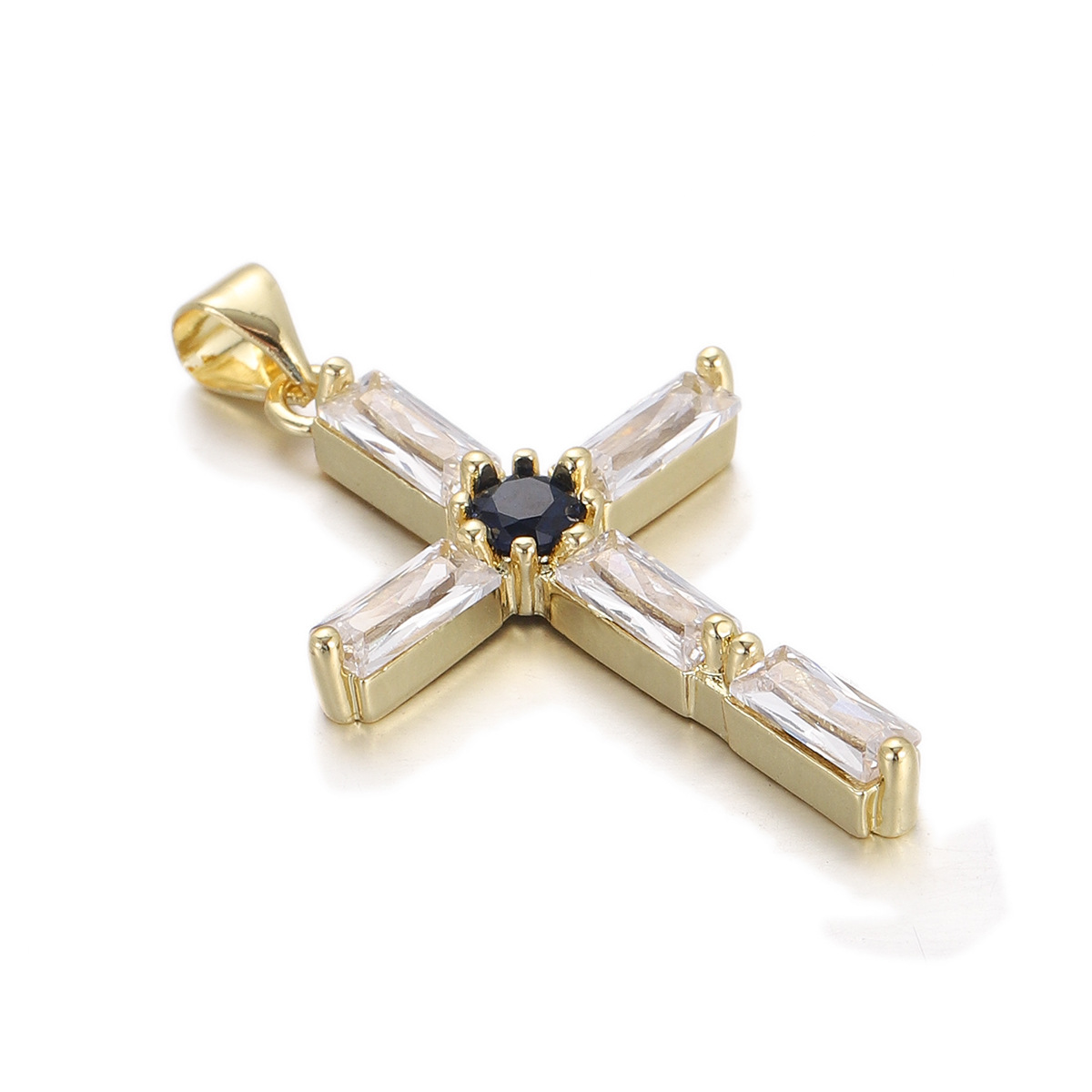 Cubique Pendentif en laiton zircon pavent, croix, Placage, DIY & pavé de micro zircon, doré, protéger l'environnement, sans nickel, plomb et cadmium, Vendu par PC