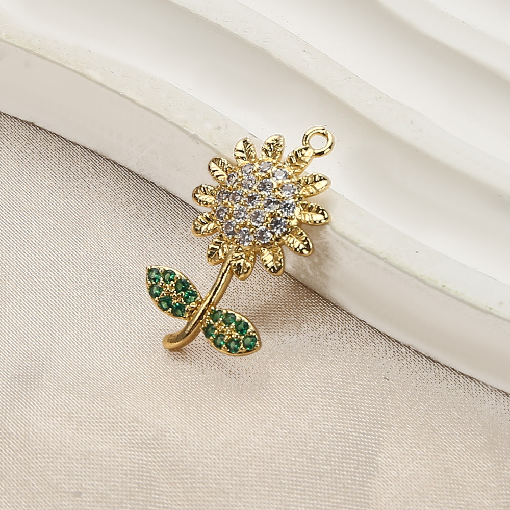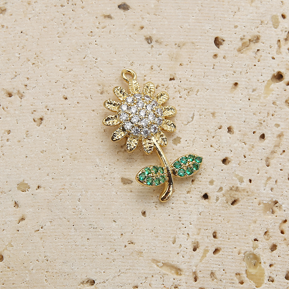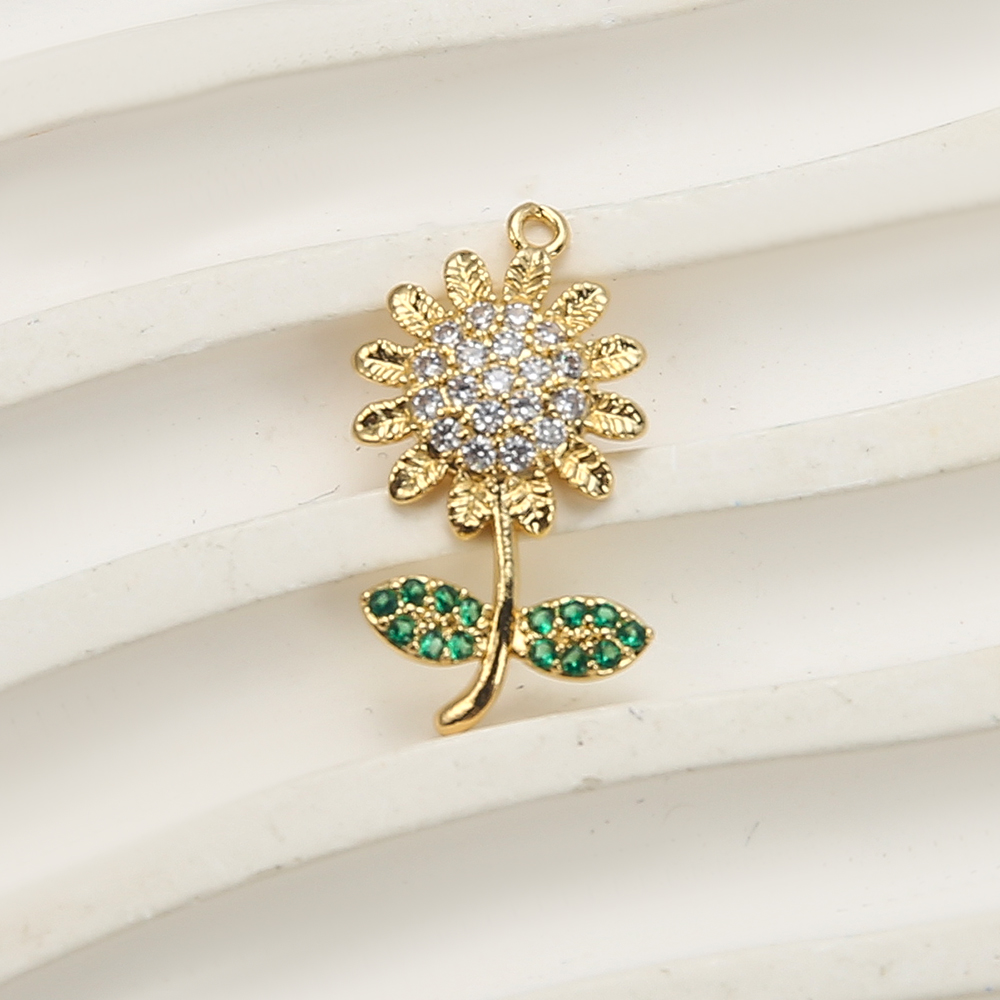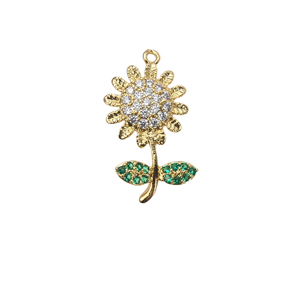 Cubique Pendentif en laiton zircon pavent, Tournesol, Placage de couleur d'or, DIY & pavé de micro zircon, doré, protéger l'environnement, sans nickel, plomb et cadmium, 15.24x3.07x24.17mm, 20PC/sac, Vendu par sac