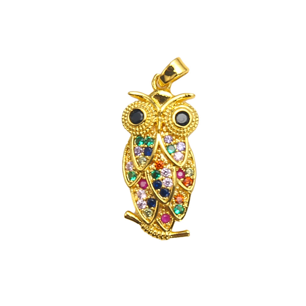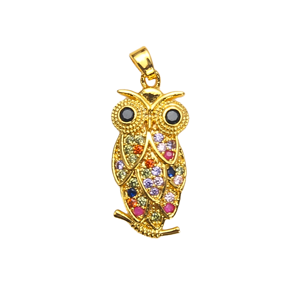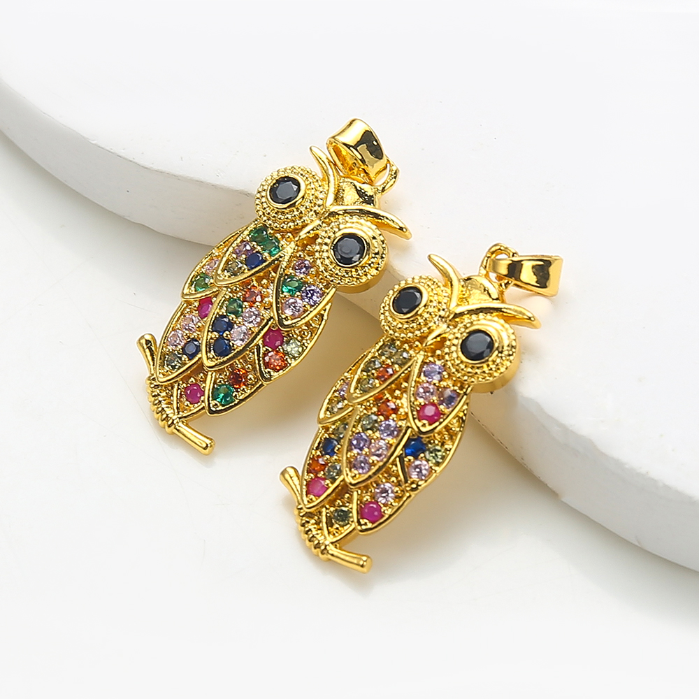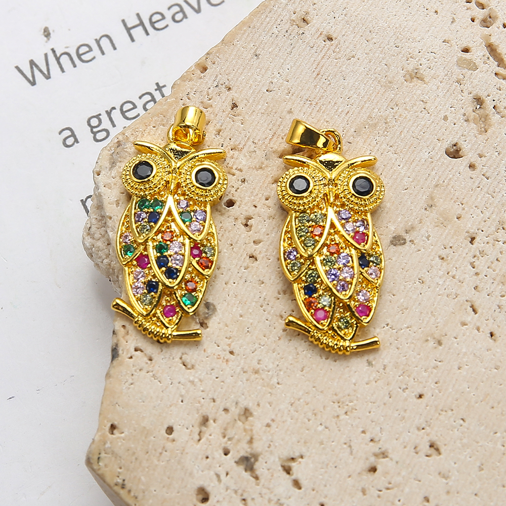 Cubique Pendentif en laiton zircon pavent, hibou, Placage, DIY & pavé de micro zircon, doré, protéger l'environnement, sans nickel, plomb et cadmium, 12x3.23x30.06mm, 20PC/sac, Vendu par sac