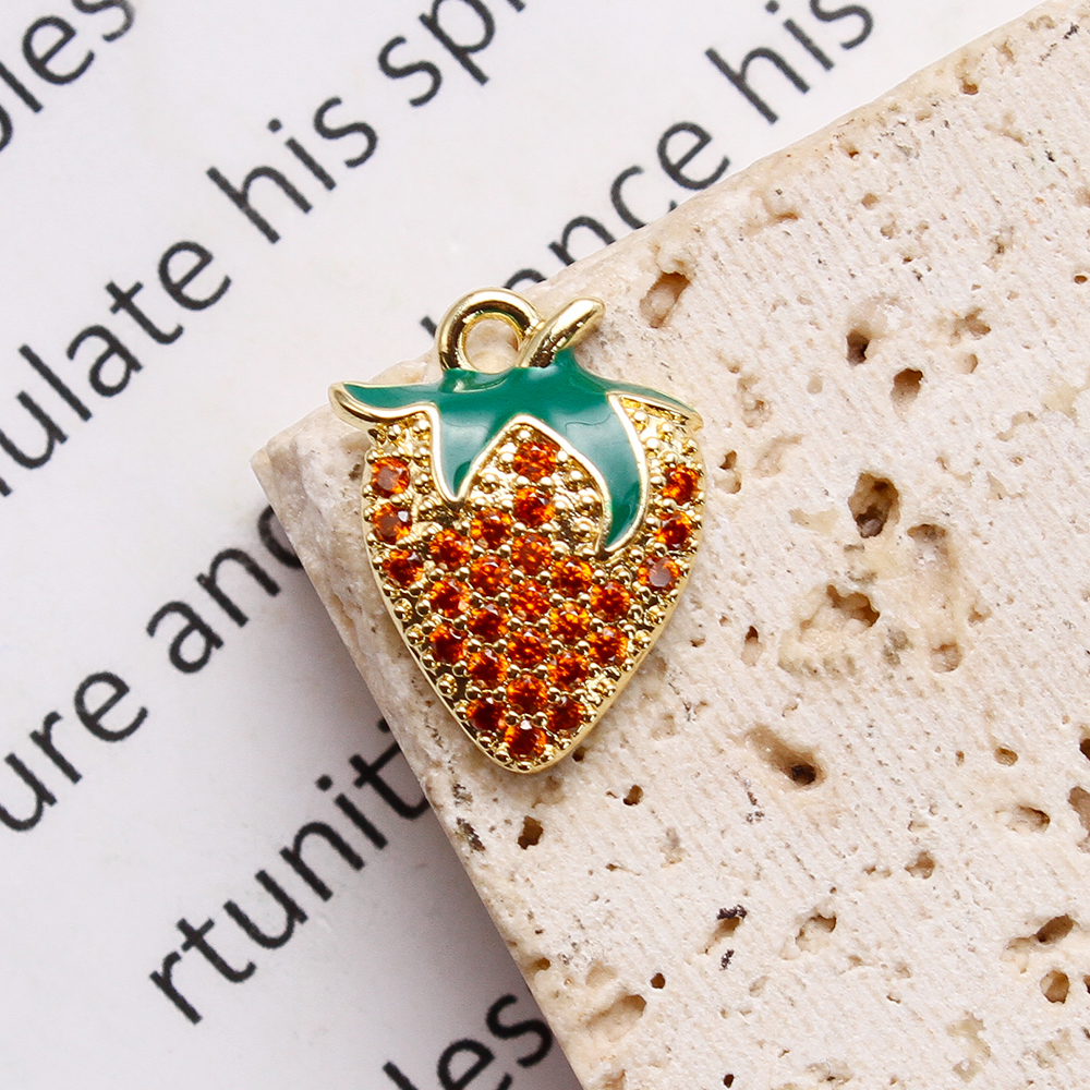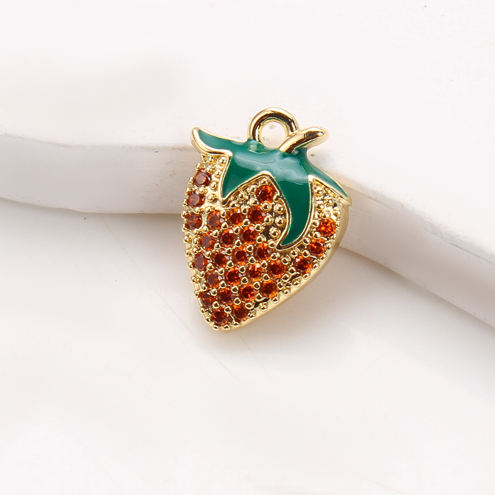 Cubique Pendentif en laiton zircon pavent, fraise, Placage, DIY & pavé de micro zircon & émail, doré, 11.90x3.60x16.46mm, Vendu par sac