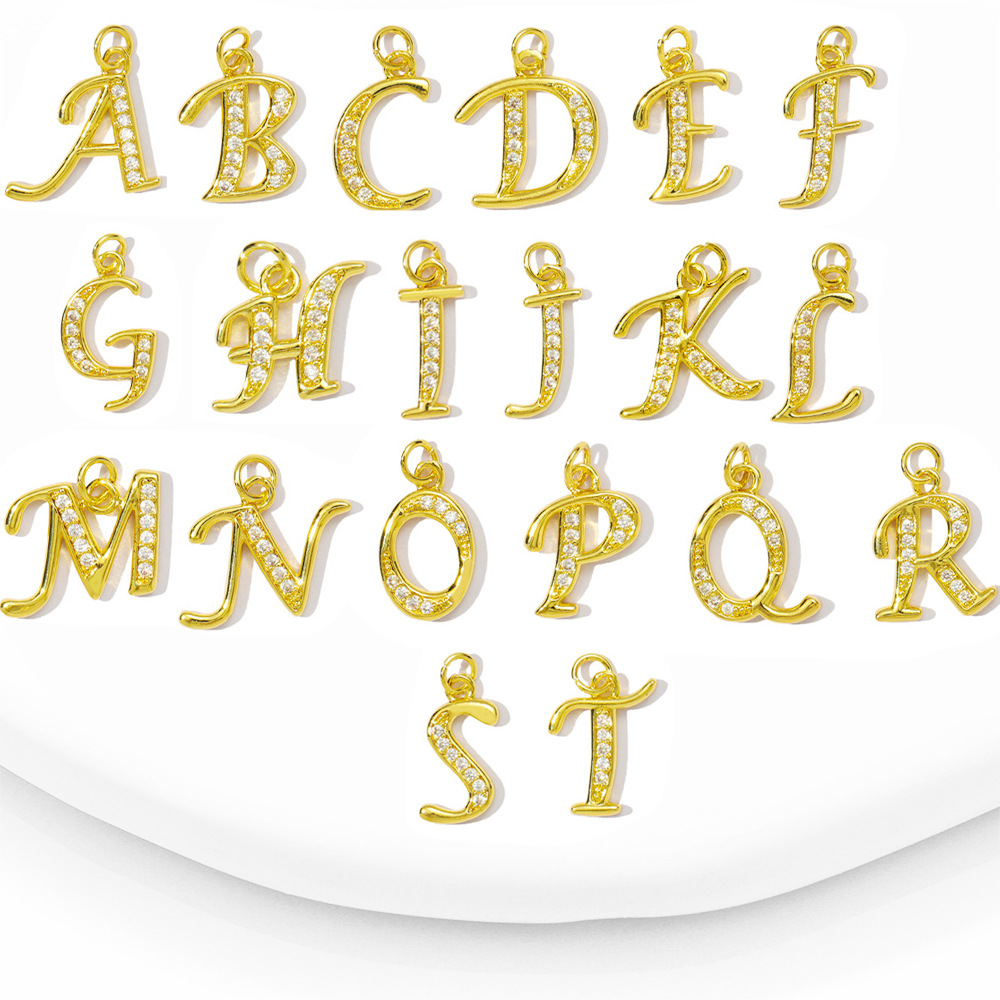 Cubique Pendentif en laiton zircon pavent, Lettre d’alphabet, Placage, DIY & pavé de micro zircon, plus de couleurs à choisir, protéger l'environnement, sans nickel, plomb et cadmium, Vendu par PC