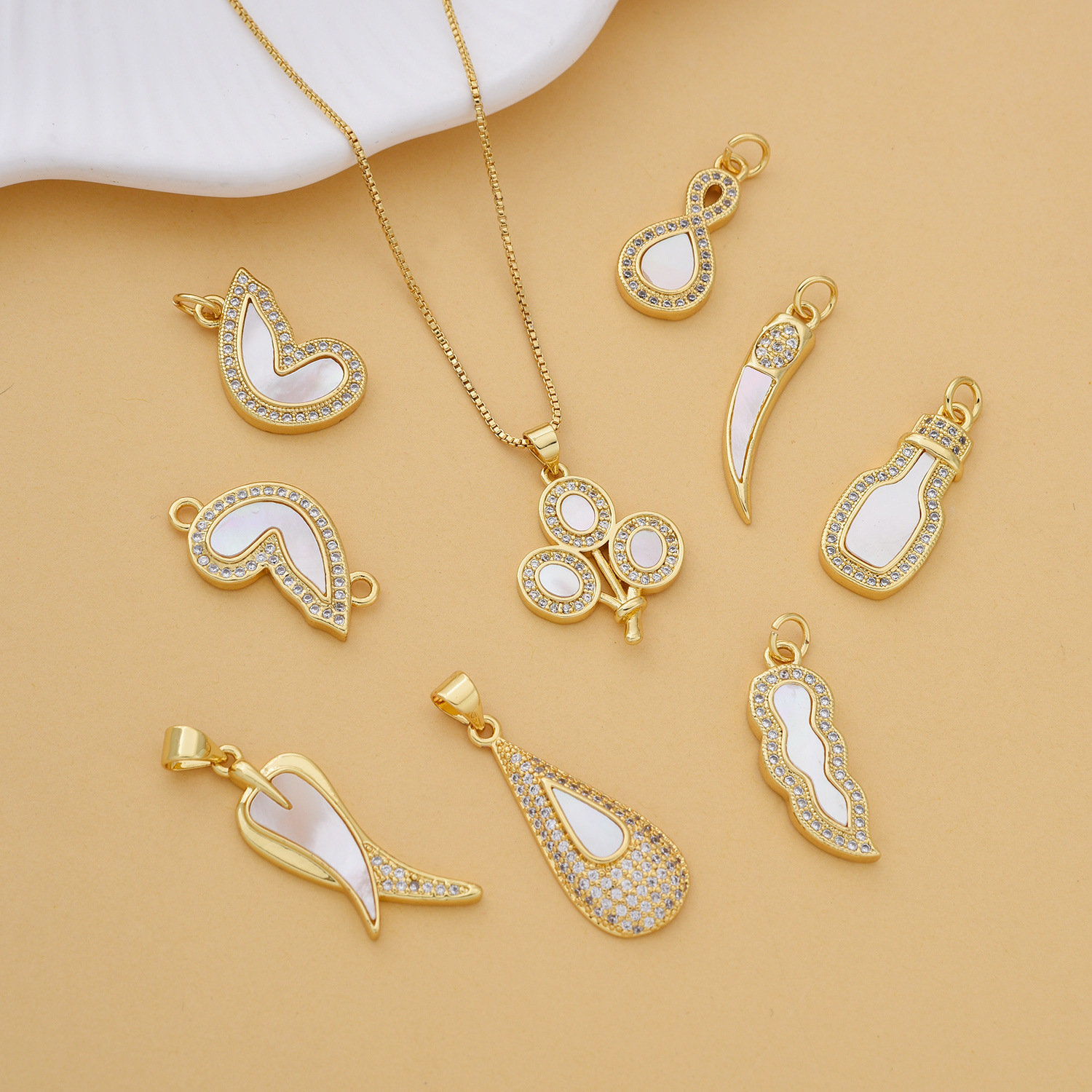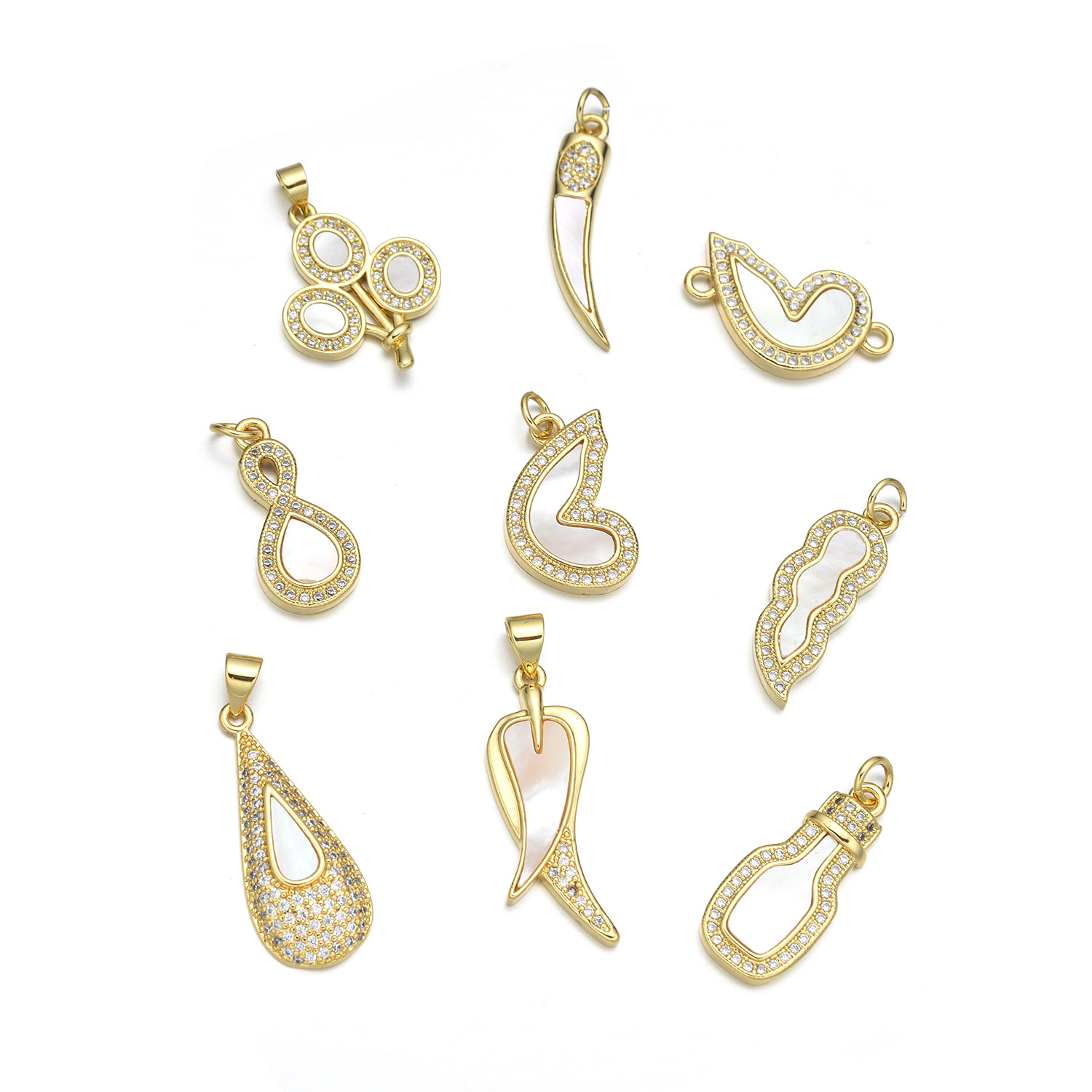 Cubique Pendentif en laiton zircon pavent, avec coquille blanche, Placage, DIY & pavé de micro zircon, plus de couleurs à choisir, protéger l'environnement, sans nickel, plomb et cadmium, Vendu par PC