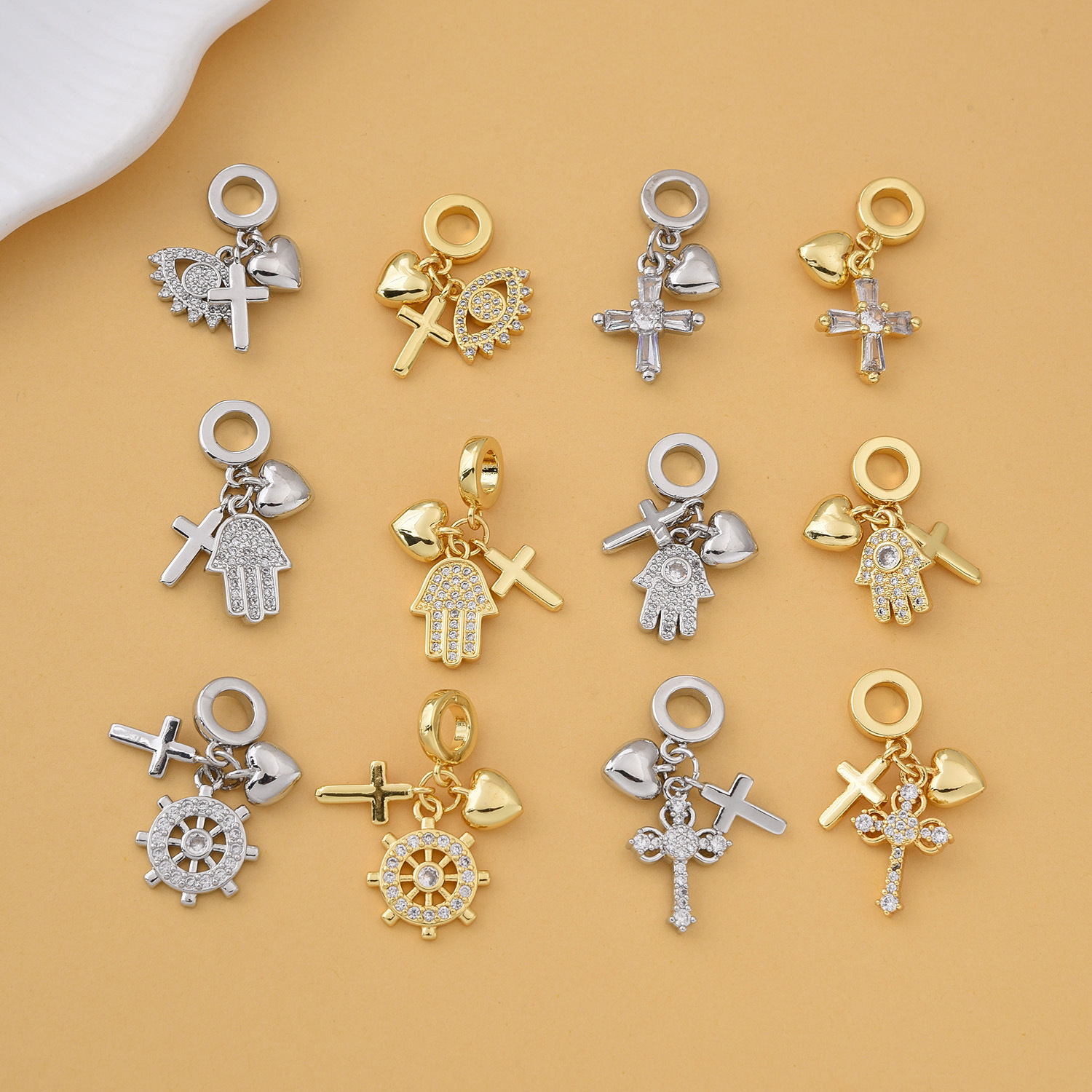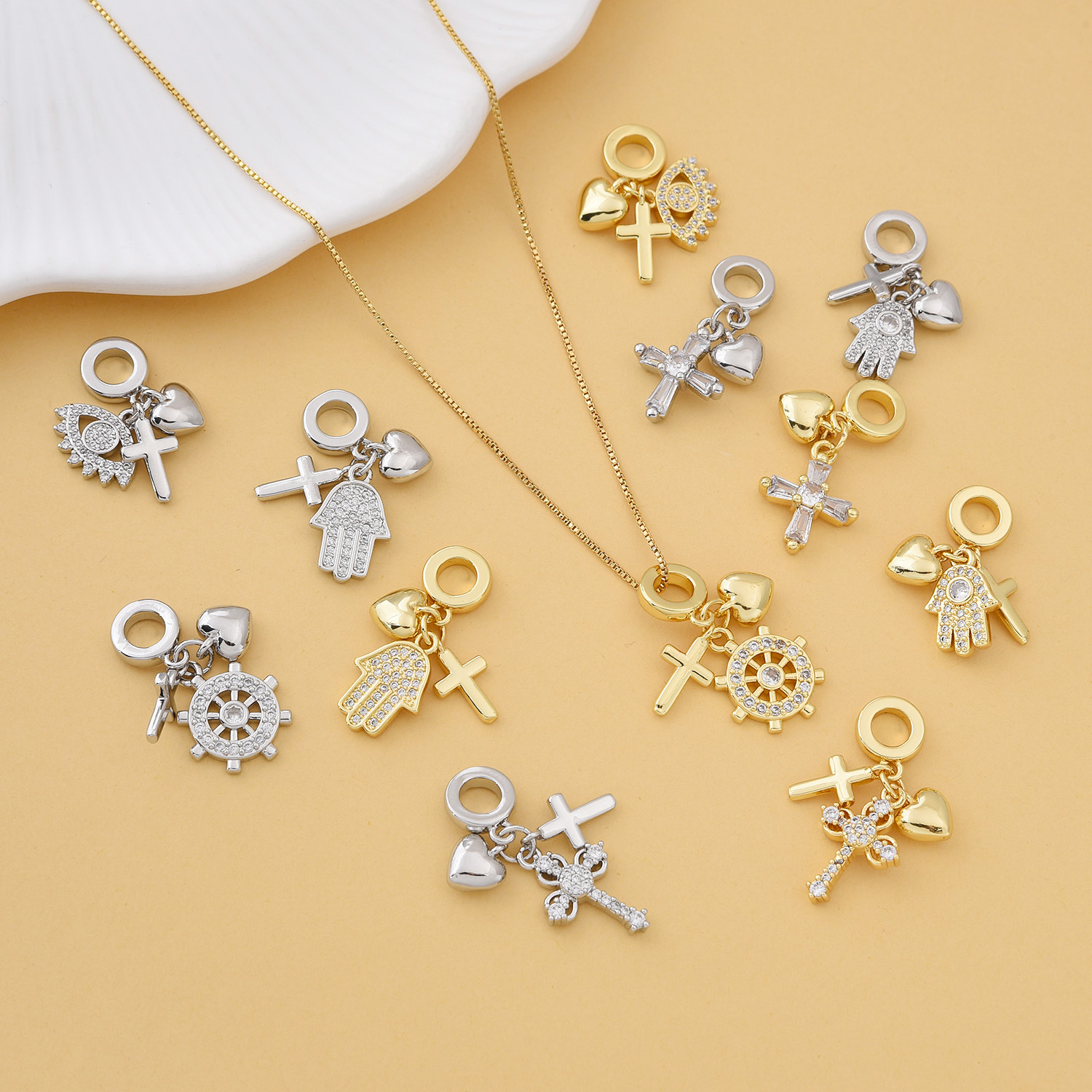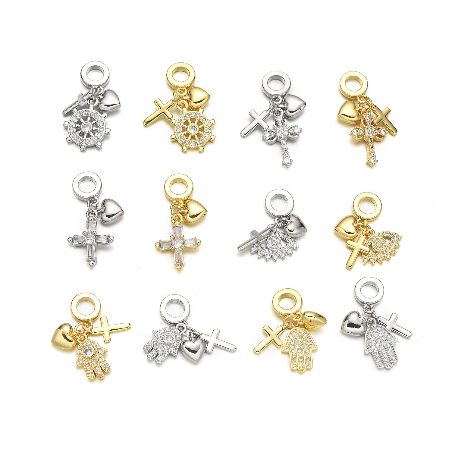 Cubique Pendentif en laiton zircon pavent, fleur, Plaqué or 18K, styles différents pour le choix & pavé de micro zircon & pour femme, Vendu par PC