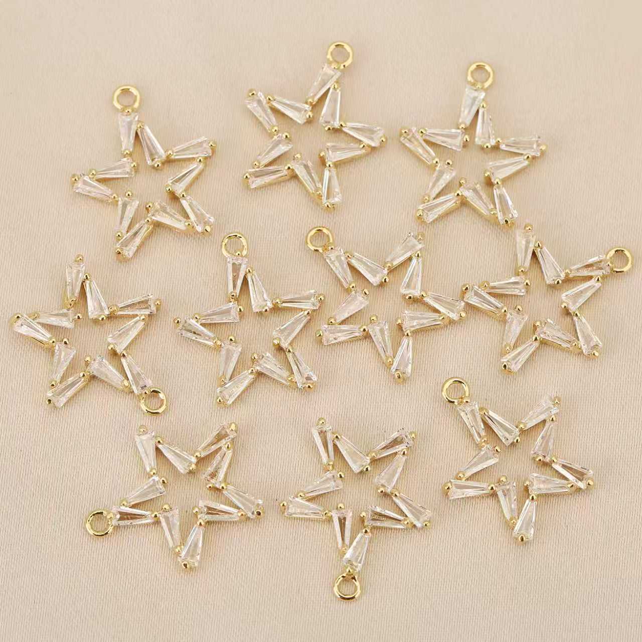 Cubique Pendentif en laiton zircon pavent, étoile, Placage, DIY & pavé de micro zircon & creux, plus de couleurs à choisir, protéger l'environnement, sans nickel, plomb et cadmium, 10PC/sac, Vendu par sac