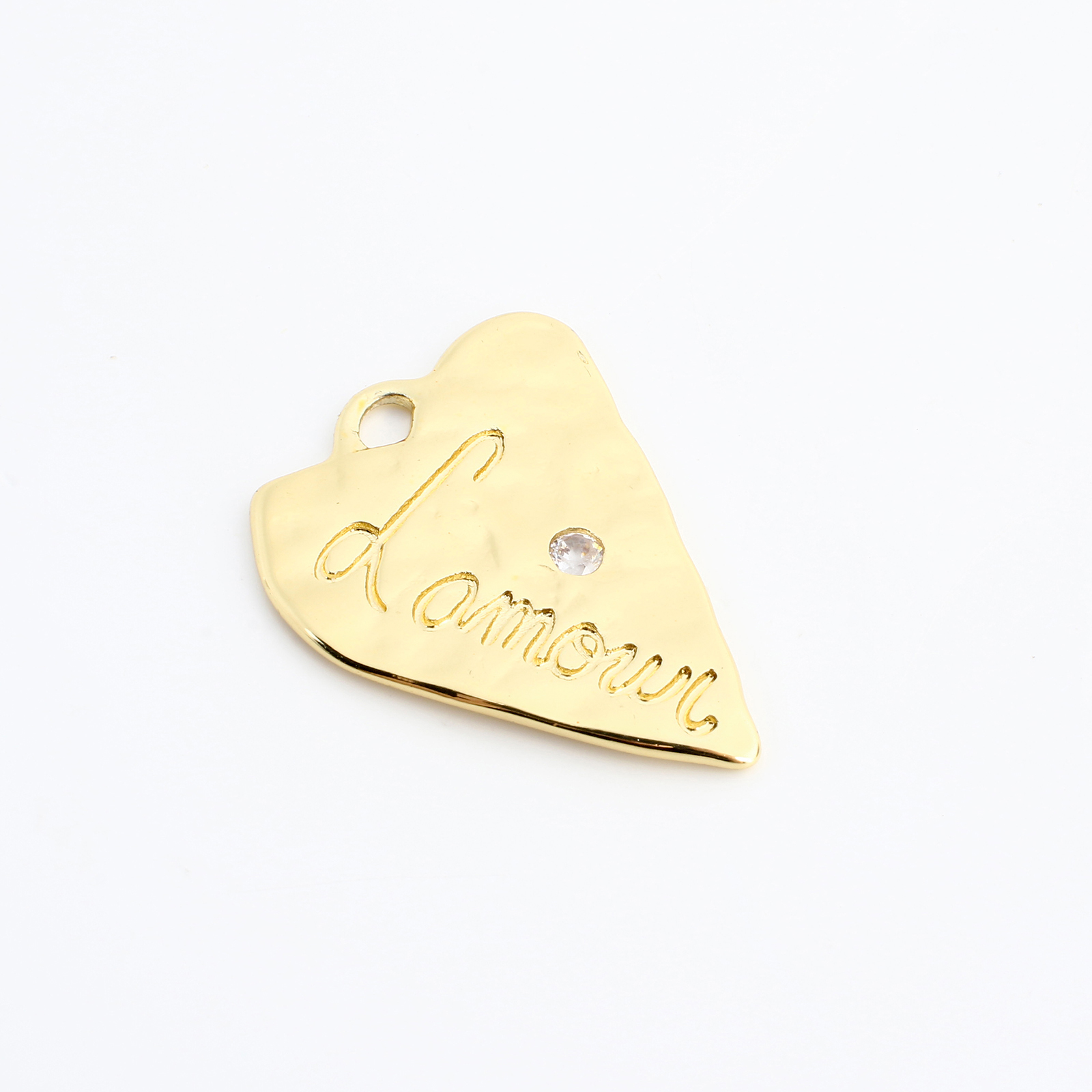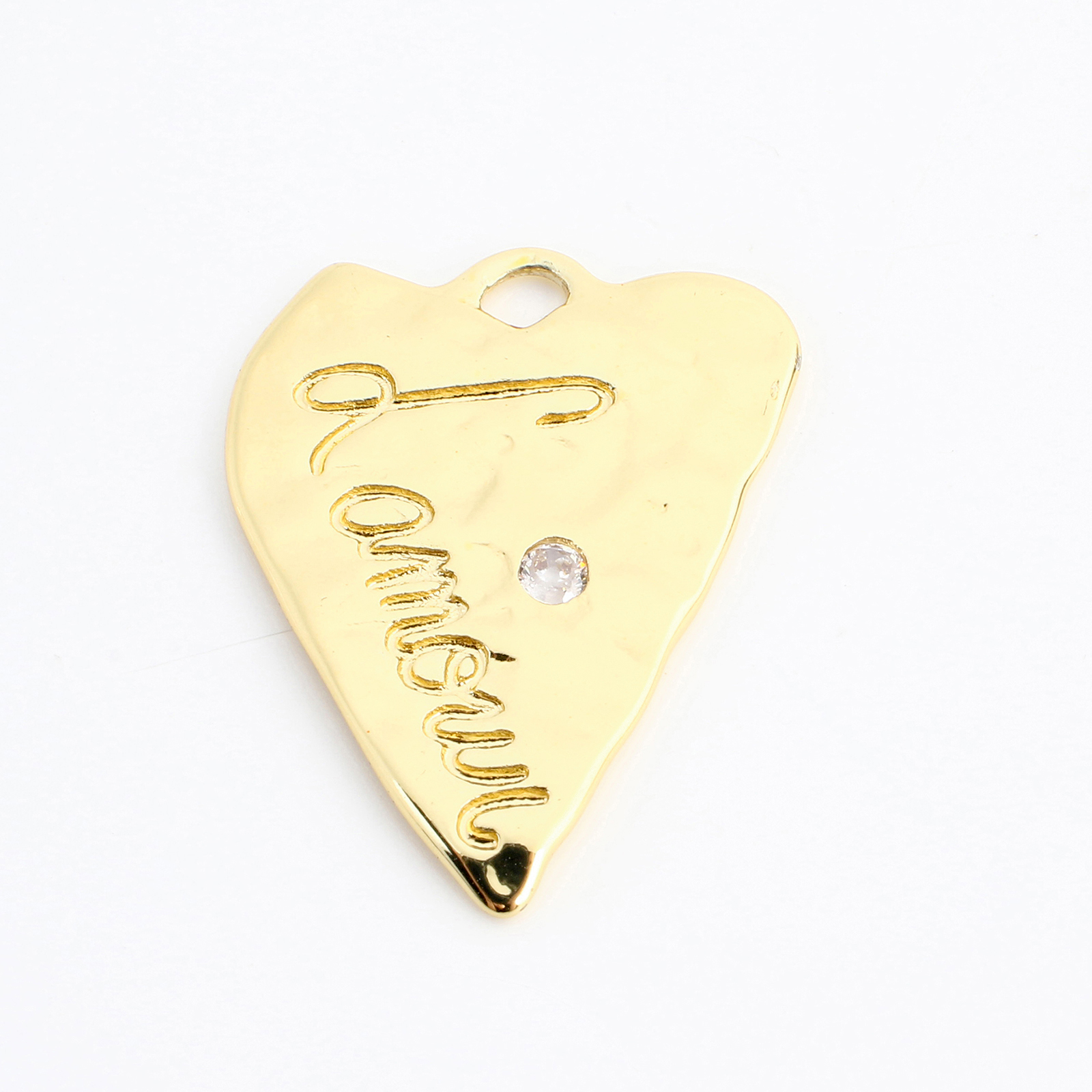 Cubique Pendentif en laiton zircon pavent, coeur, DIY & pavé de micro zircon, doré, 25x20x1mm, Vendu par PC