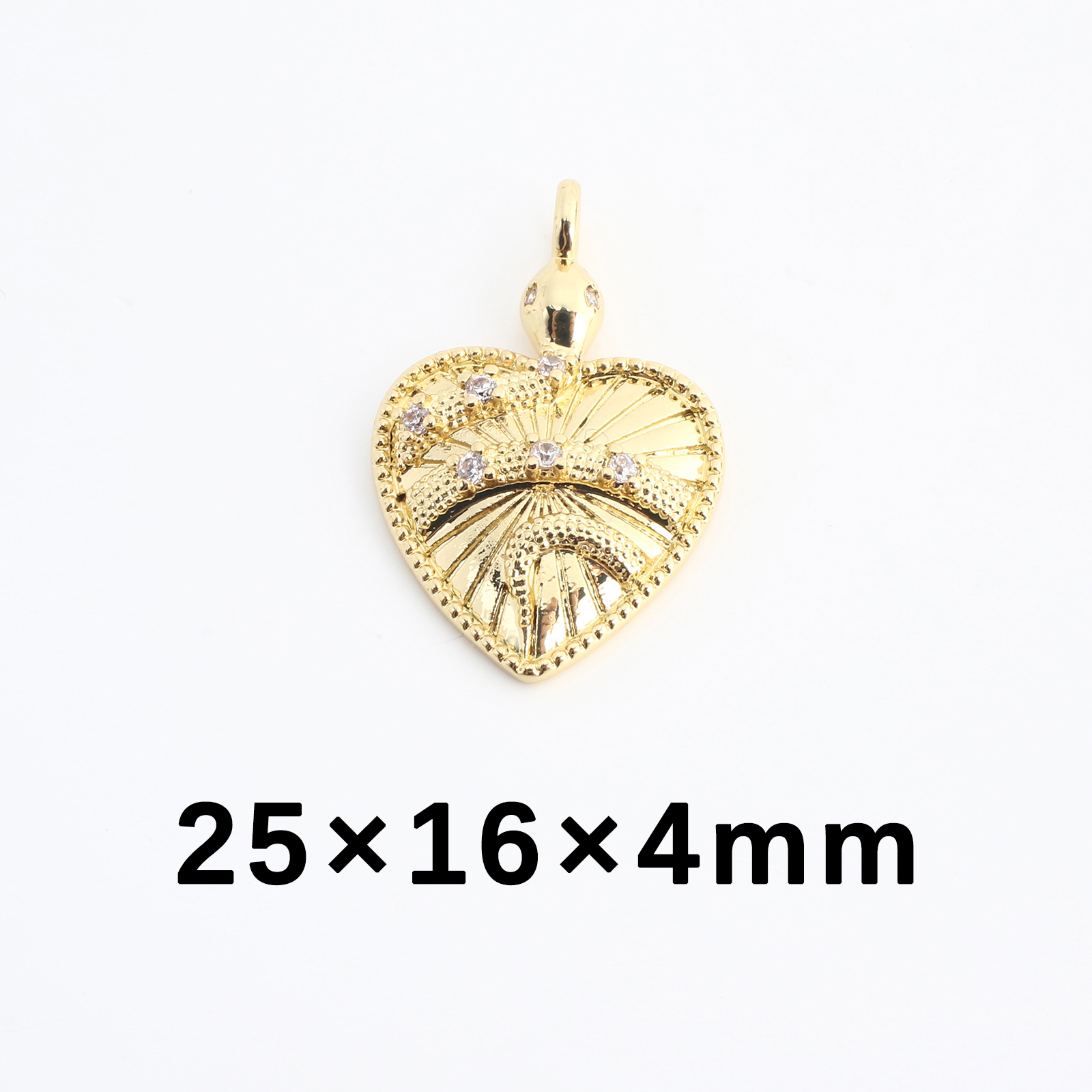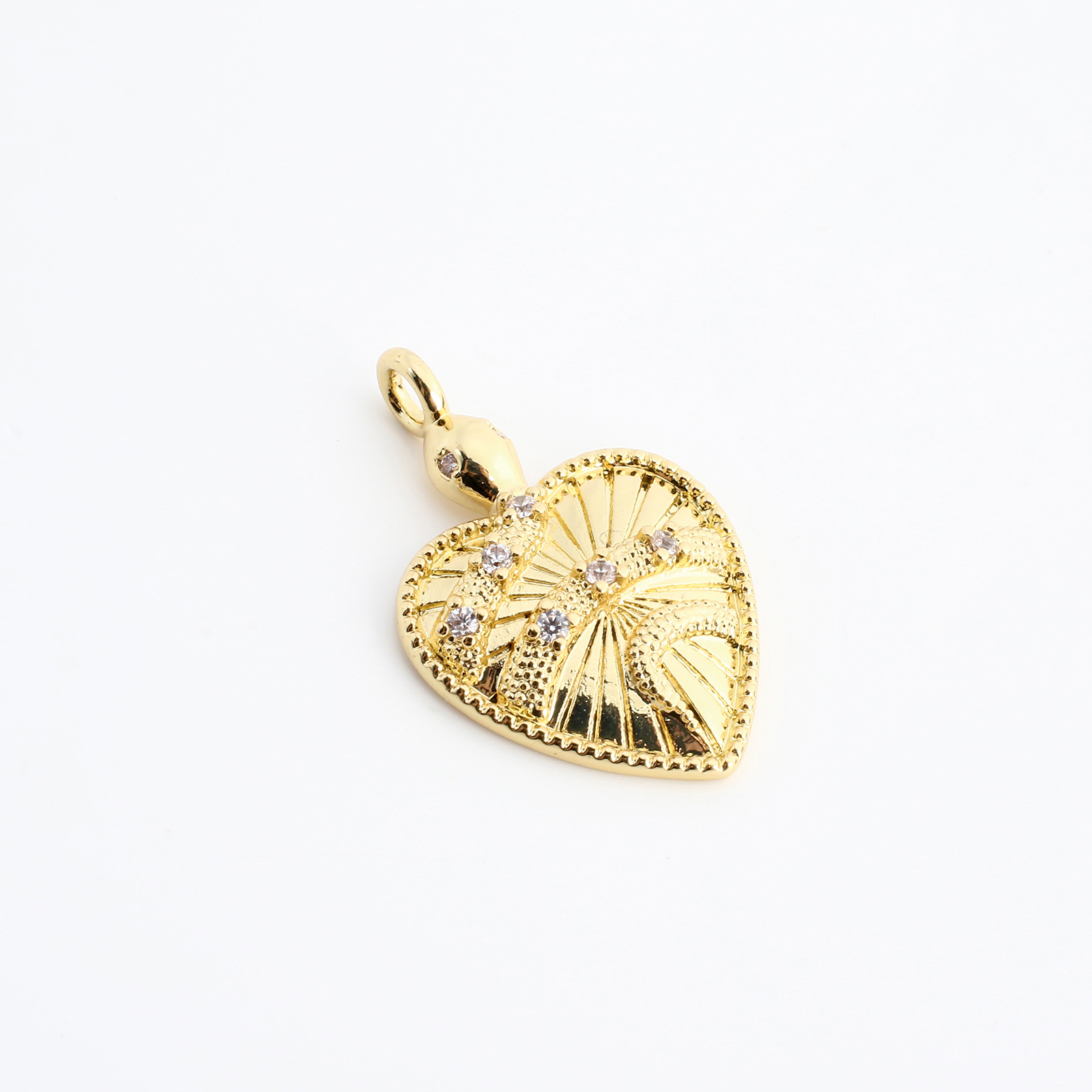 Cubique Pendentif en laiton zircon pavent, coeur, DIY & pavé de micro zircon, doré, 25x16x4mm, Vendu par PC
