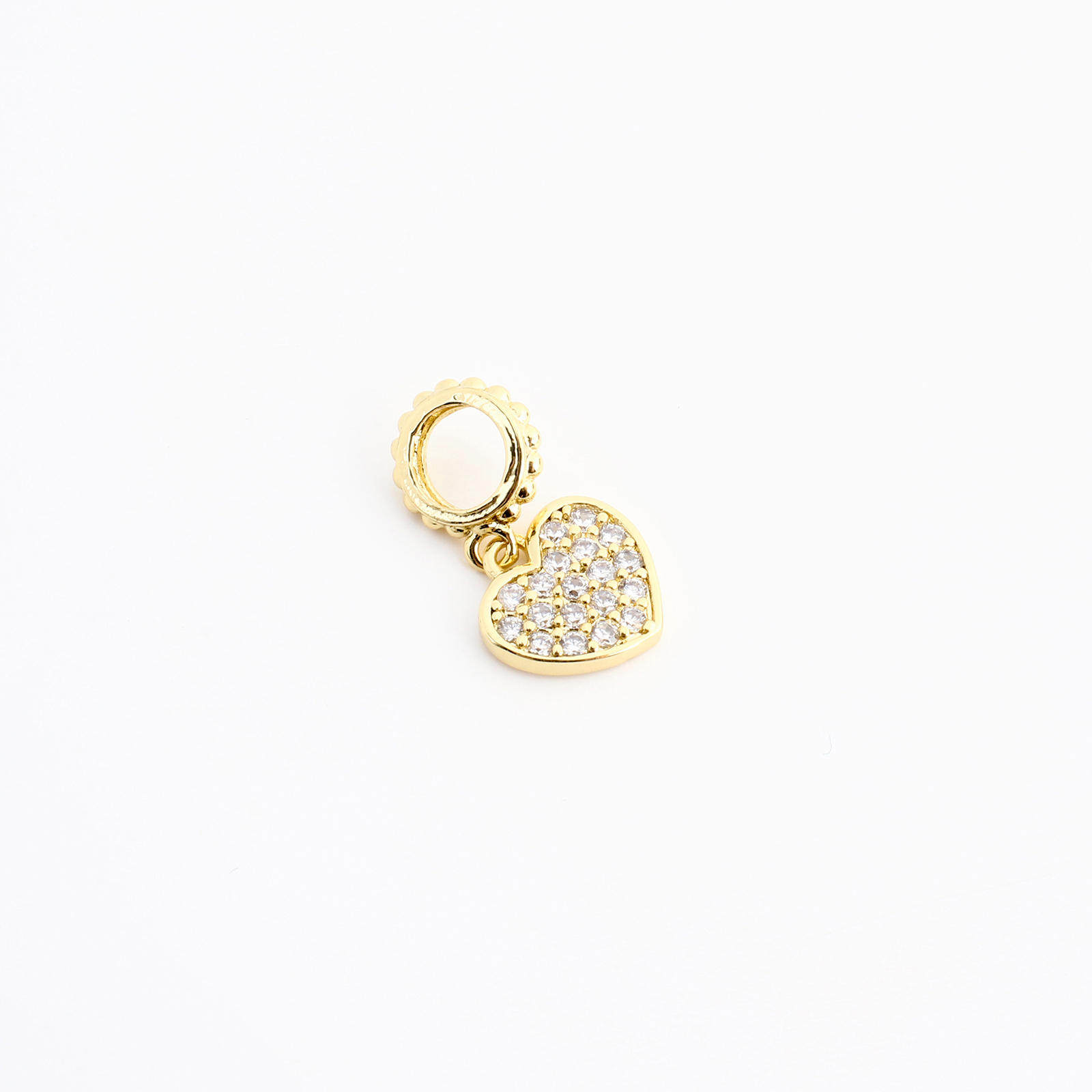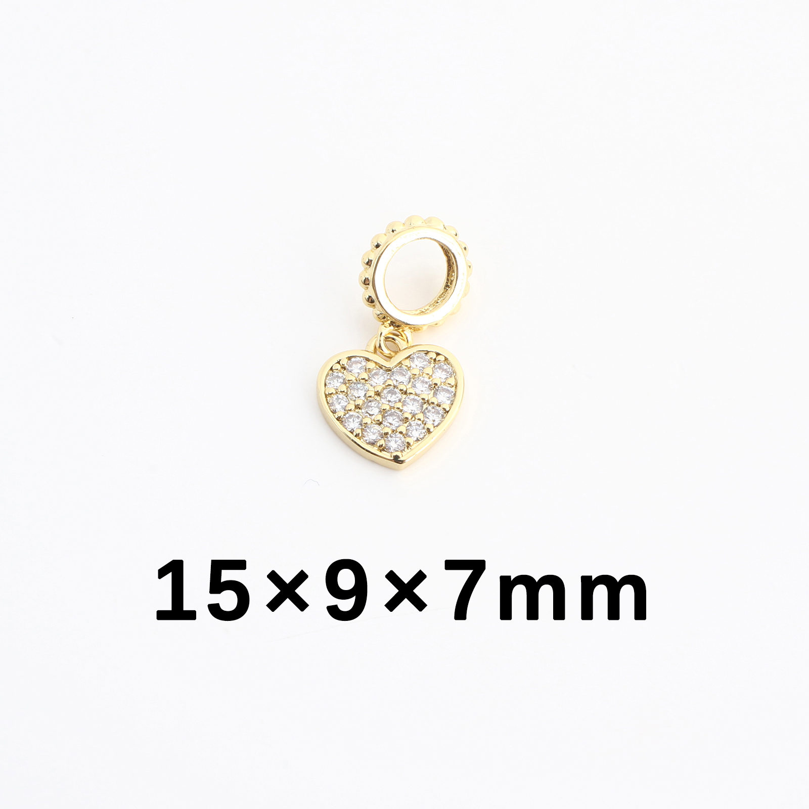 Cubique Pendentif en laiton zircon pavent, coeur, DIY & pavé de micro zircon, doré, 15x9x7mm, Vendu par PC