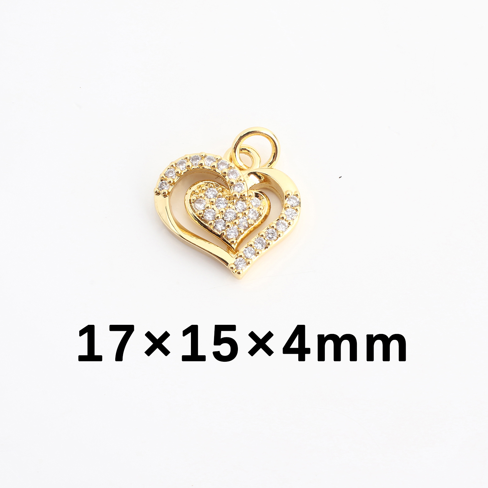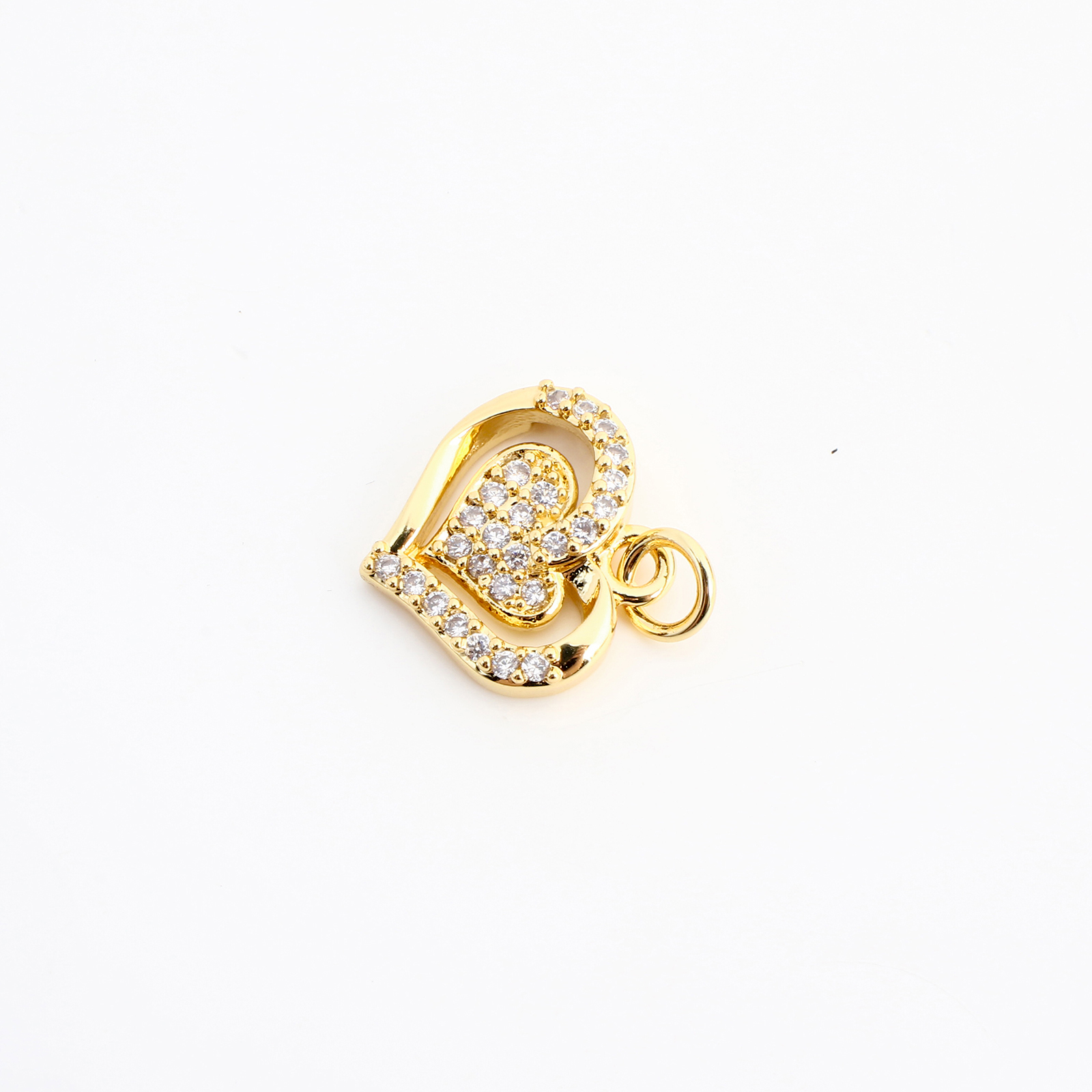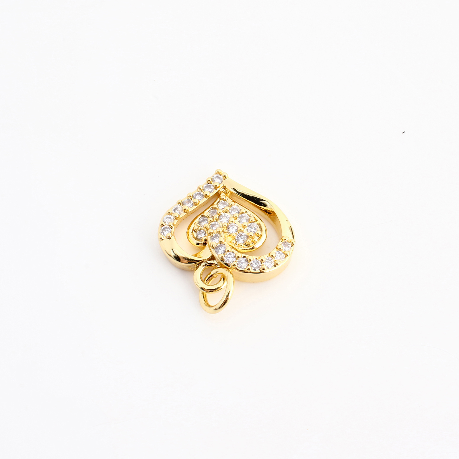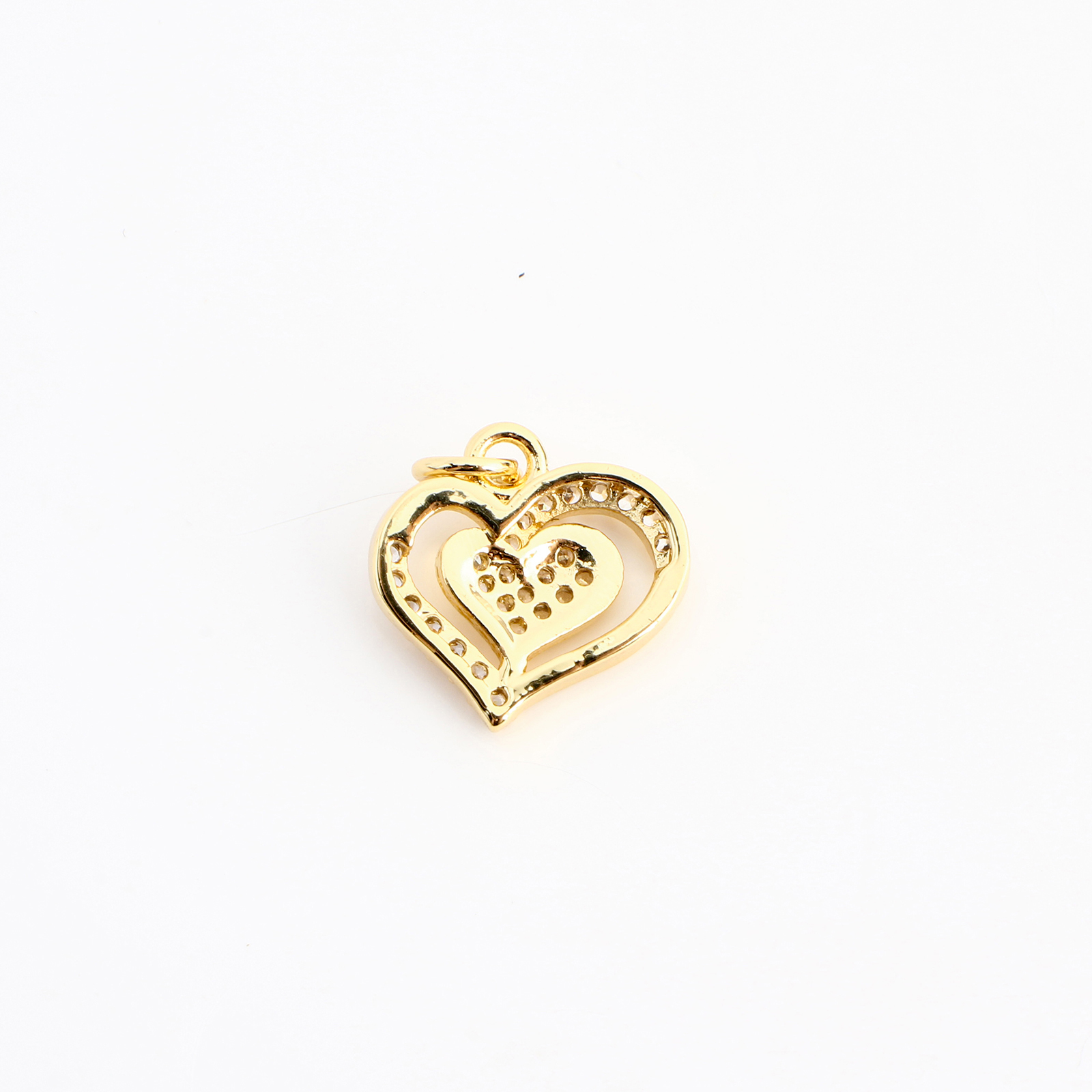 Cubique Pendentif en laiton zircon pavent, coeur, DIY & pavé de micro zircon & creux, doré, 17x15x4mm, Vendu par PC