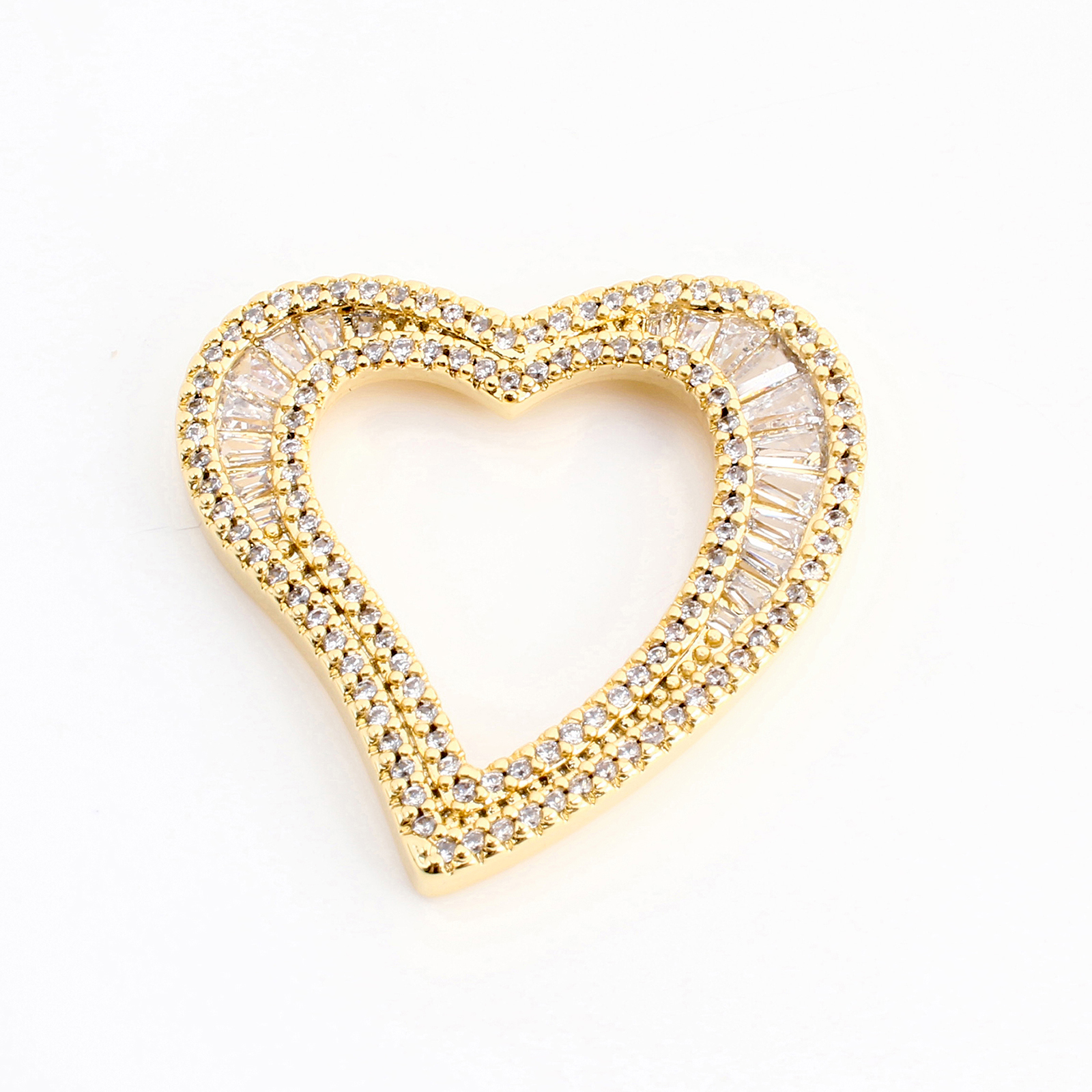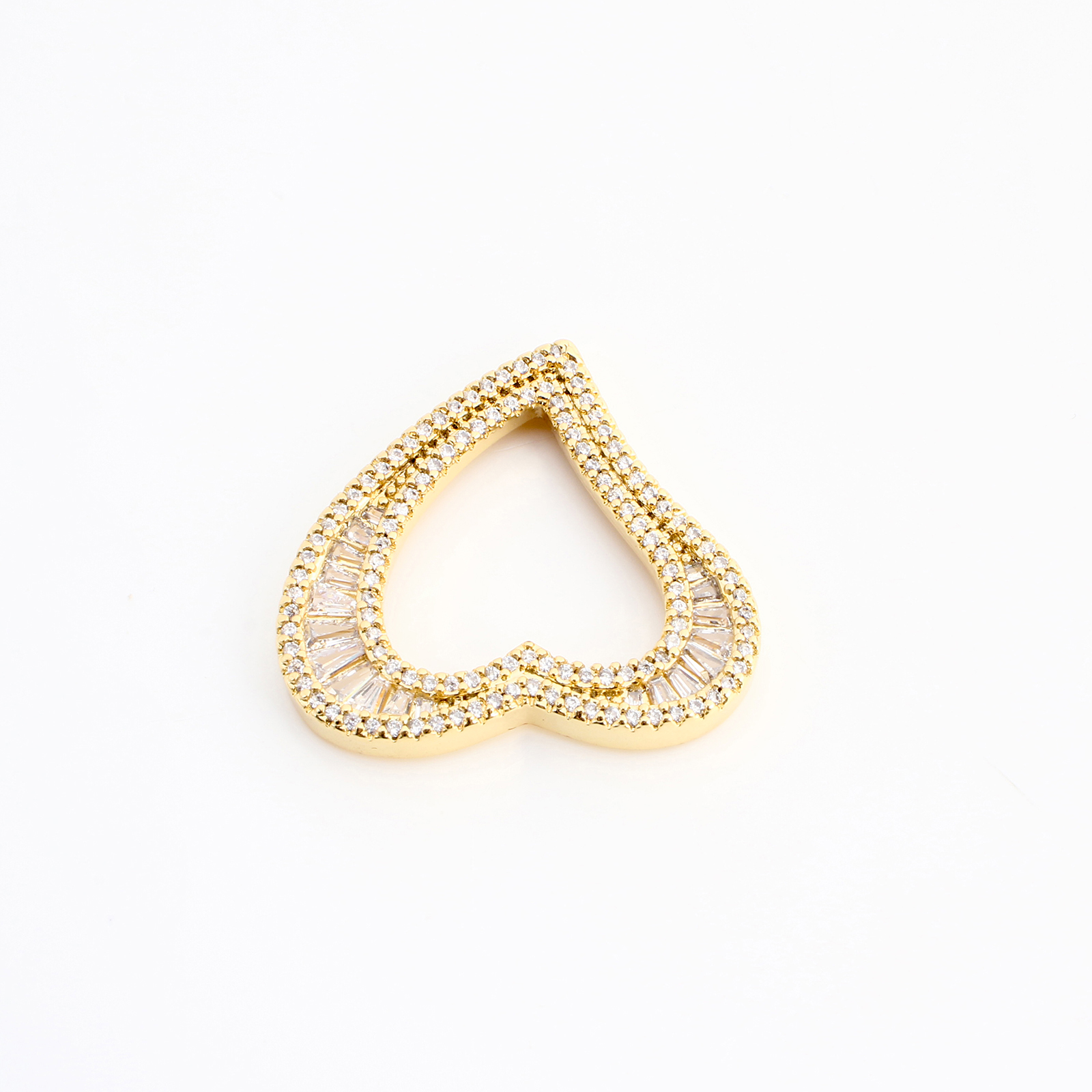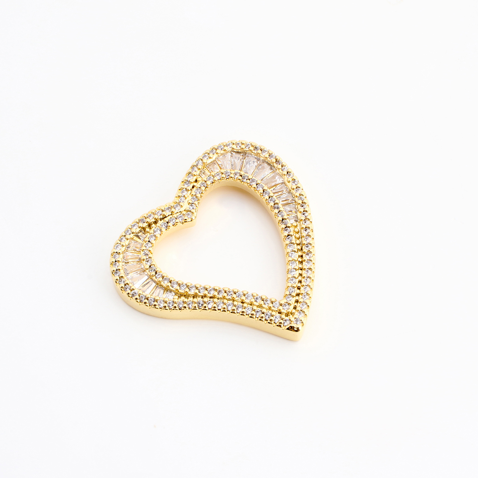 Cubique Pendentif en laiton zircon pavent, coeur, DIY & pavé de micro zircon, doré, 26x28x3mm, Vendu par PC
