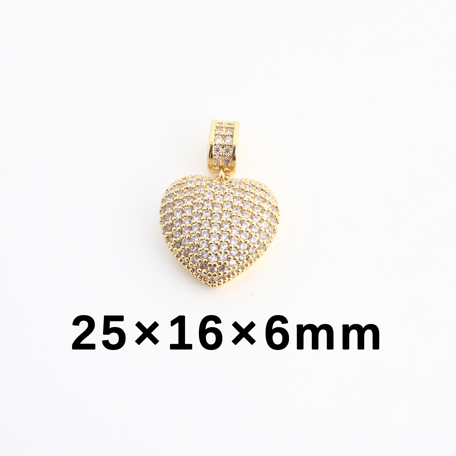 Cubique Pendentif en laiton zircon pavent, coeur, DIY & pavé de micro zircon, doré, 25x16x6mm, Vendu par PC
