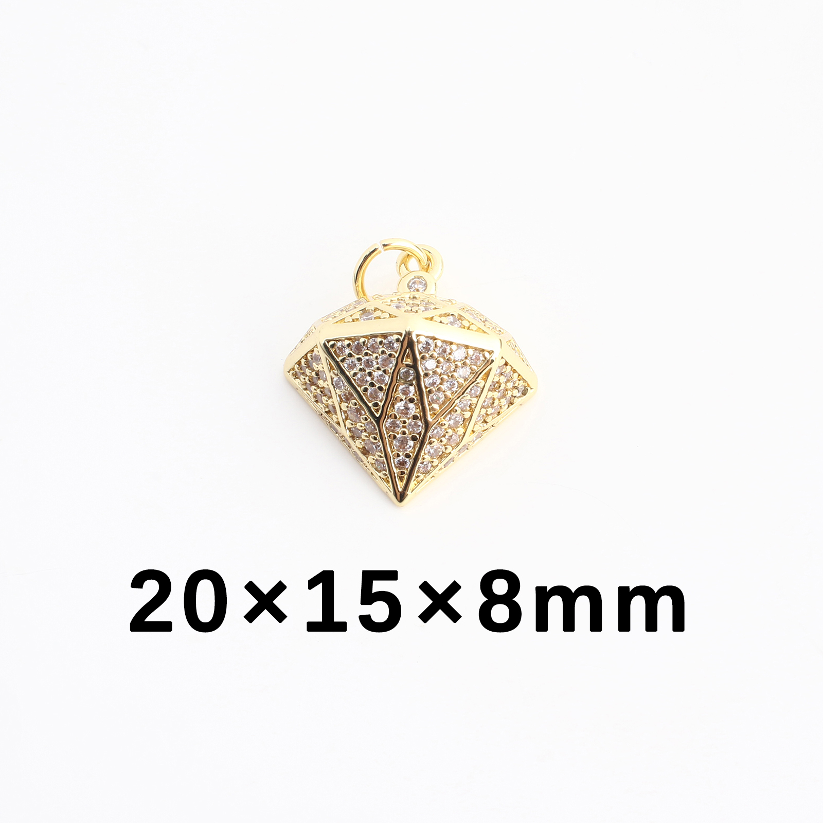 Cubique Pendentif en laiton zircon pavent, diamant, DIY & pavé de micro zircon, doré, 20x15x8mm, Vendu par PC