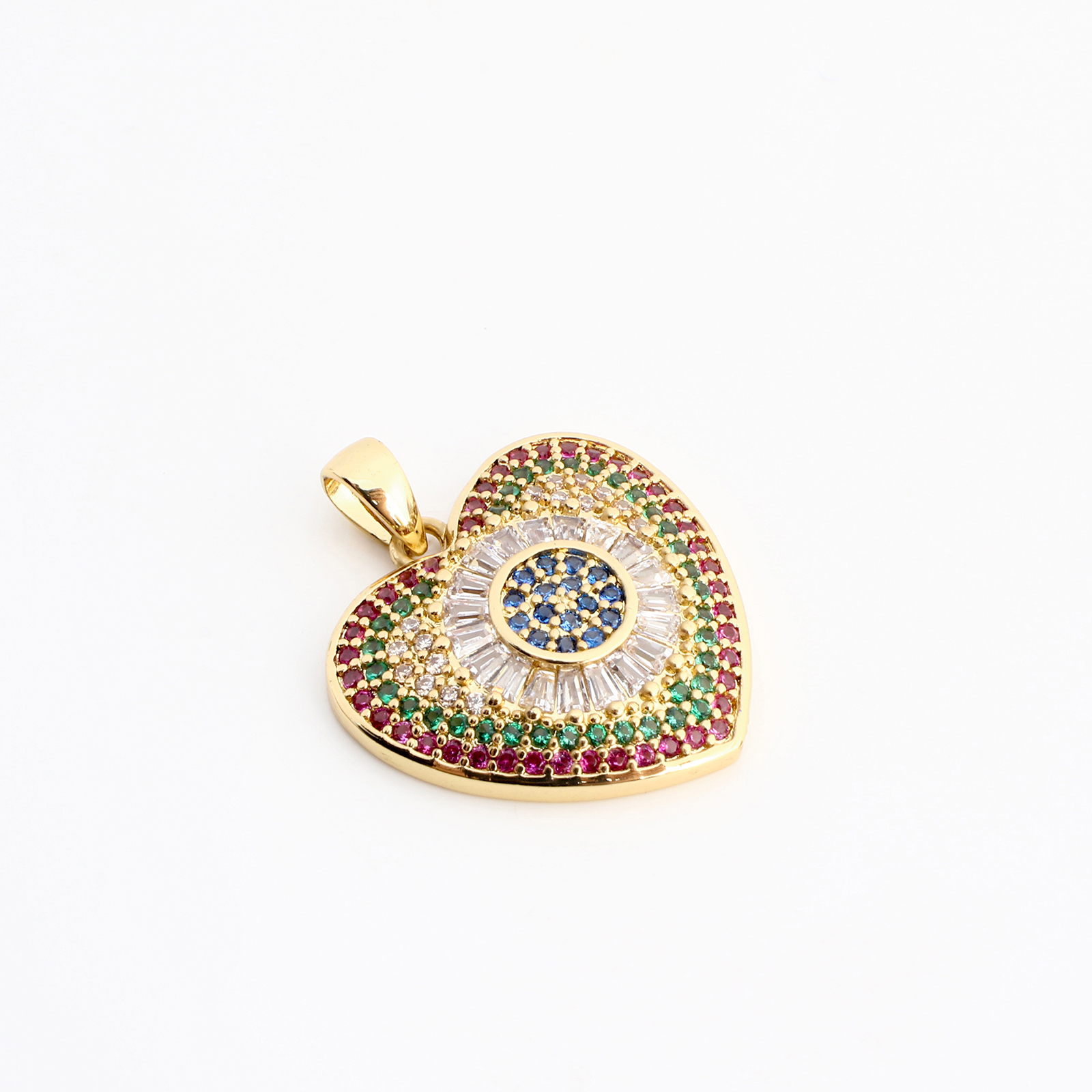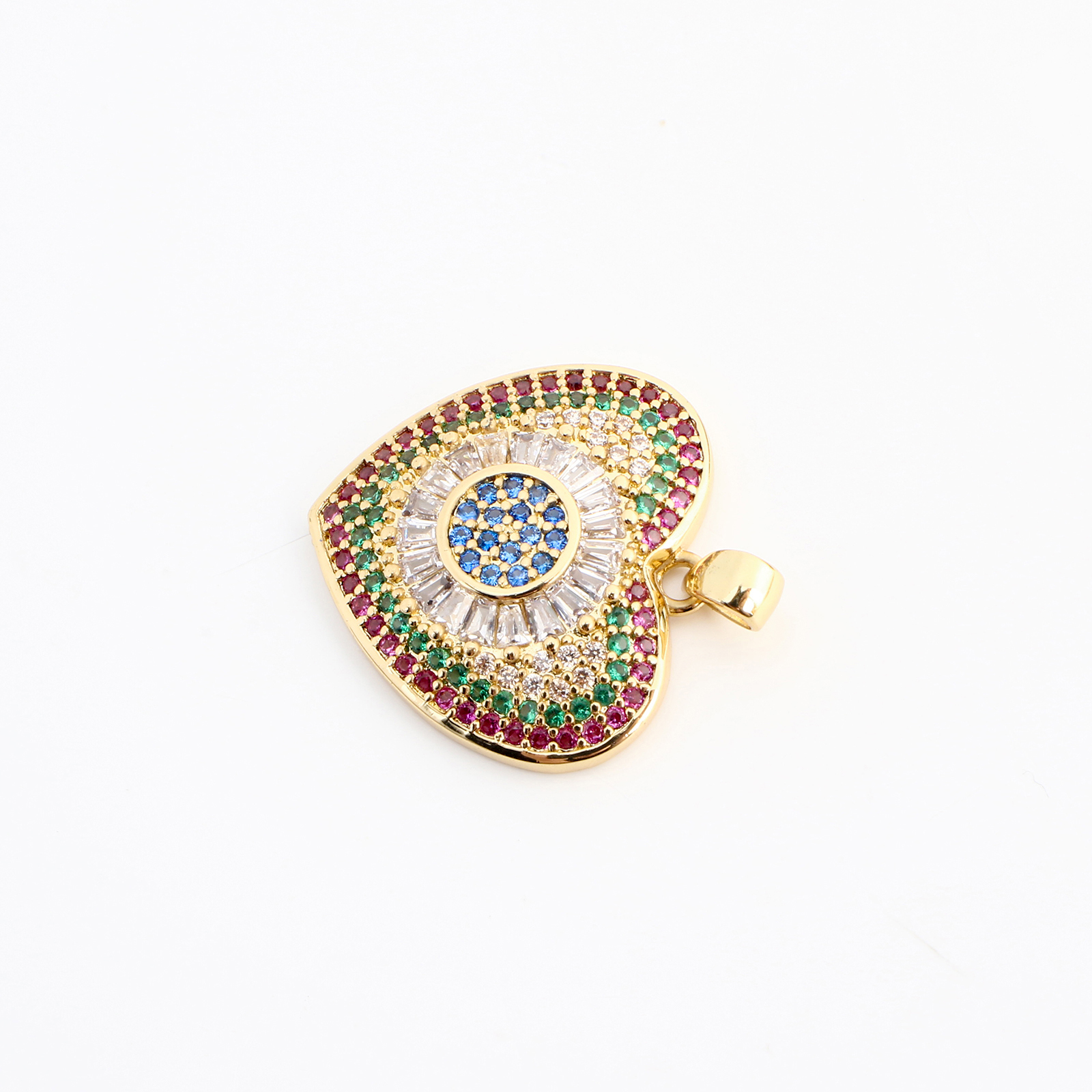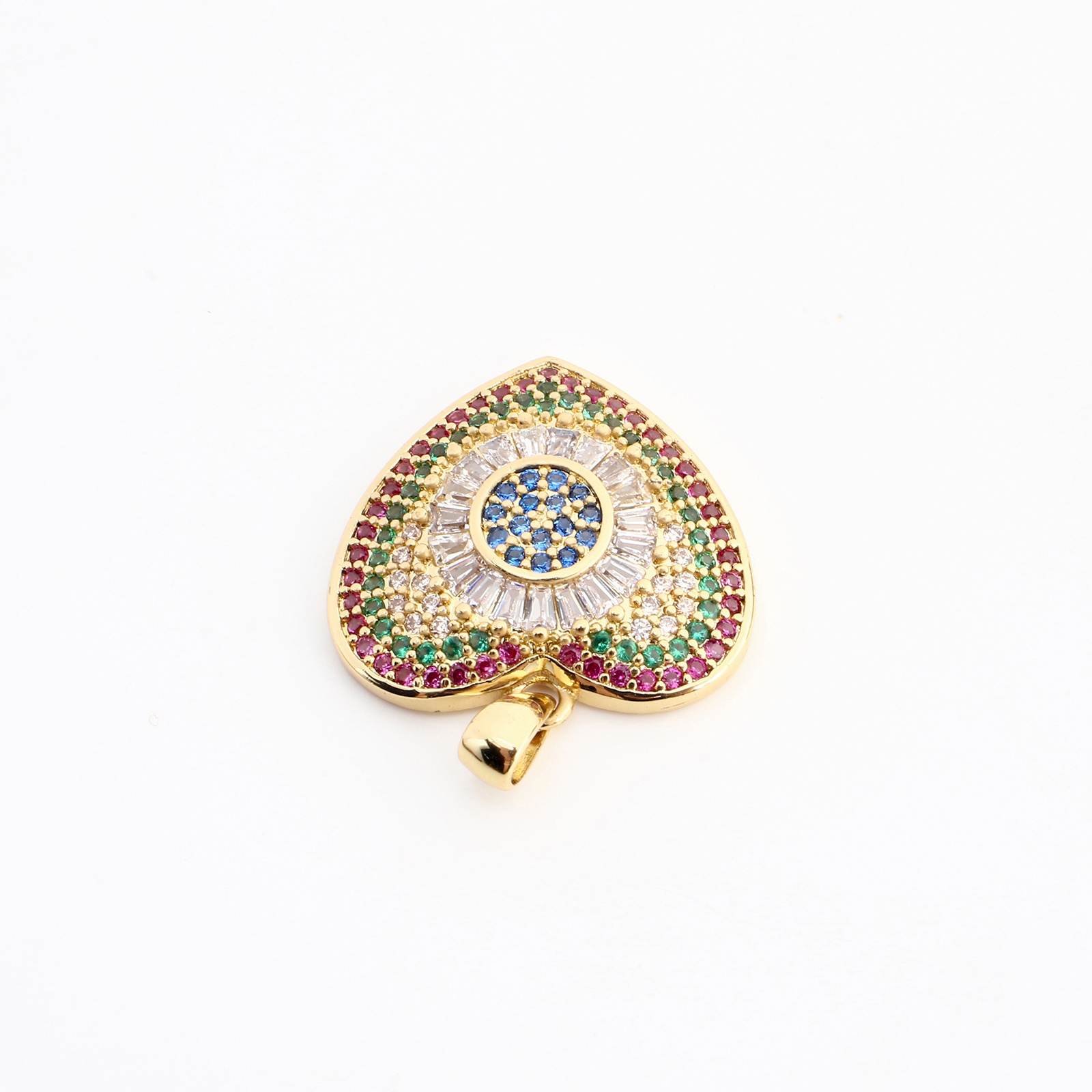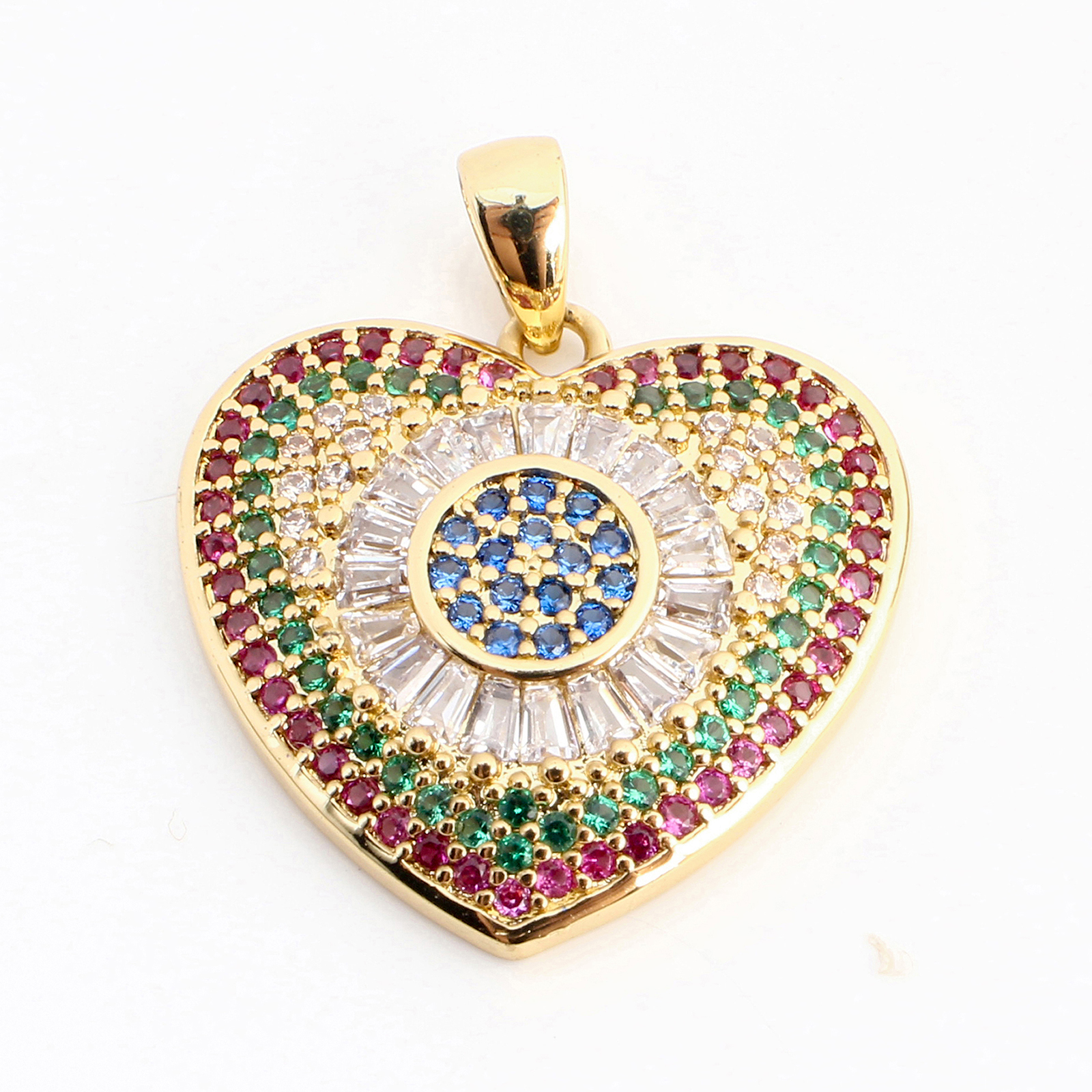 Cubique Pendentif en laiton zircon pavent, coeur, DIY & pavé de micro zircon, doré, 22x20x3mm, Vendu par PC