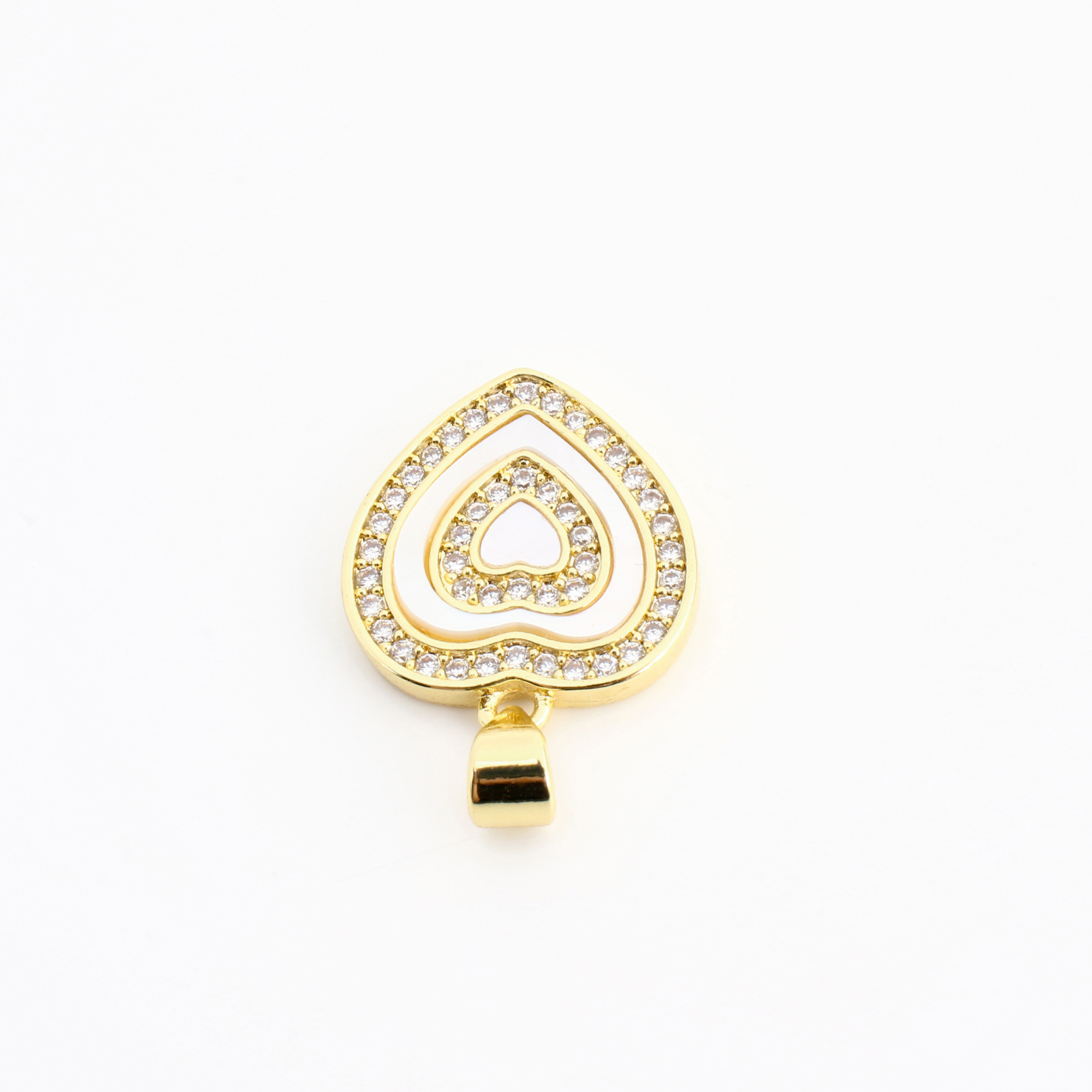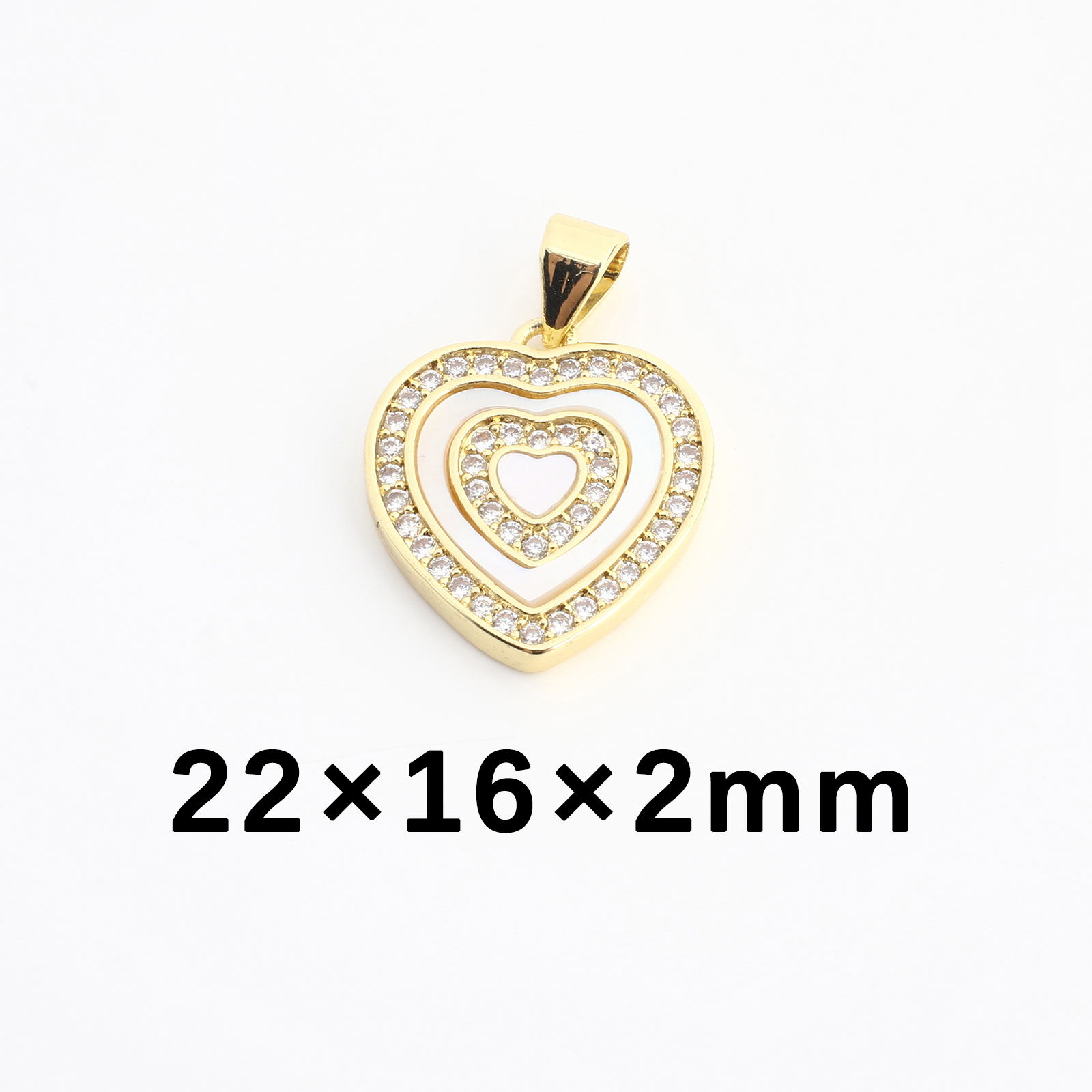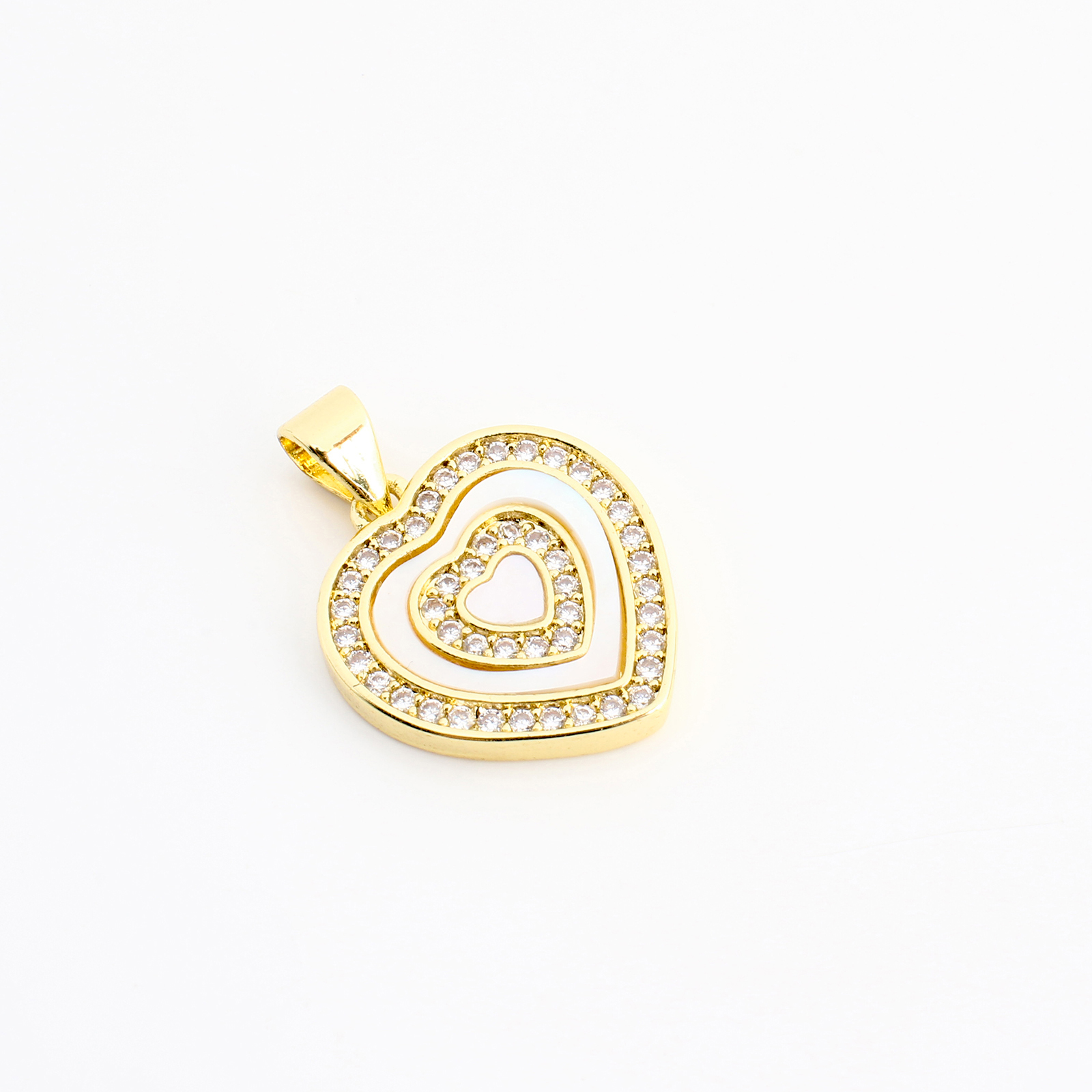 Cubique Pendentif en laiton zircon pavent, avec coquille blanche, coeur, DIY & pavé de micro zircon, doré, 22x16x2mm, Vendu par PC