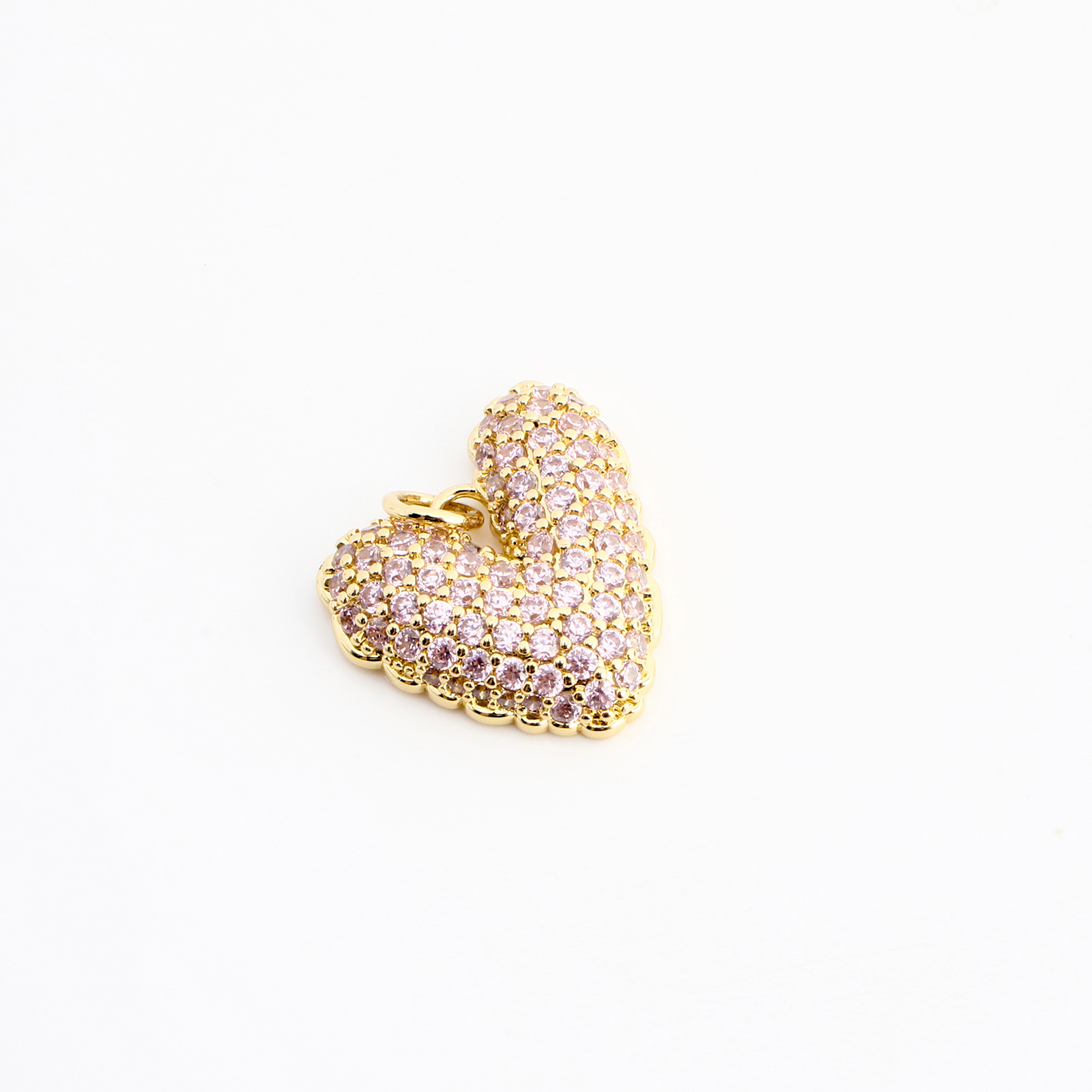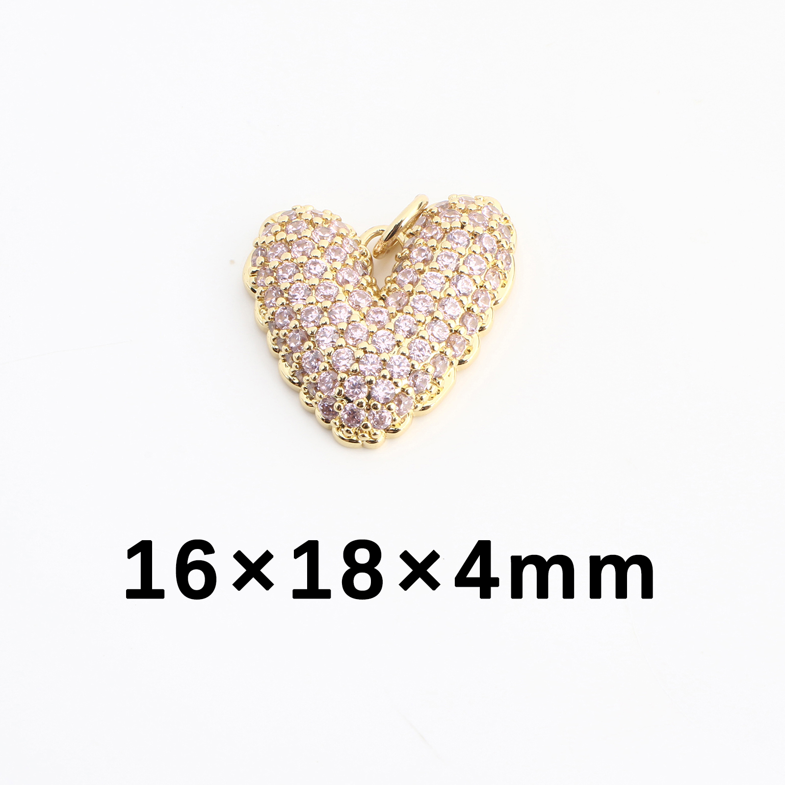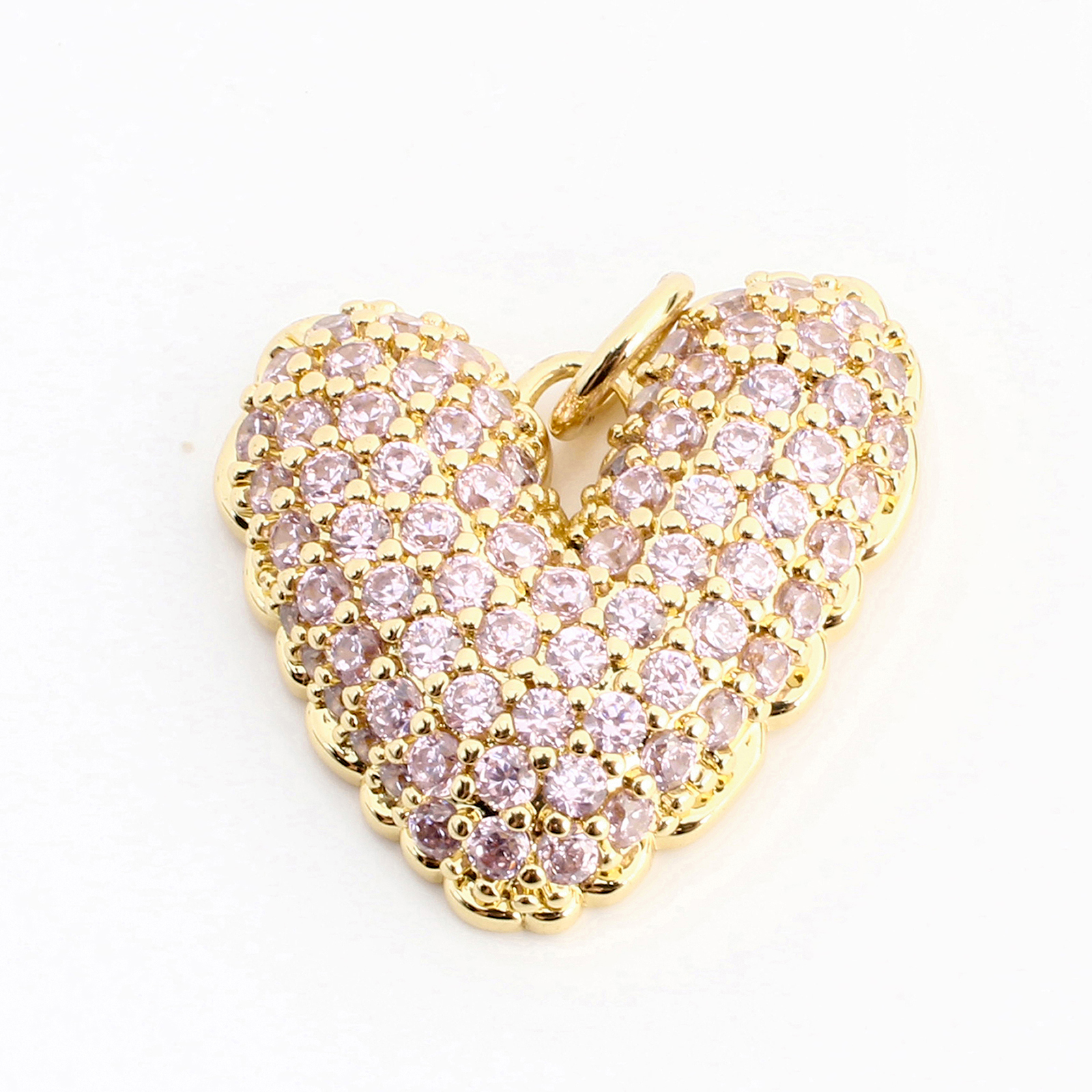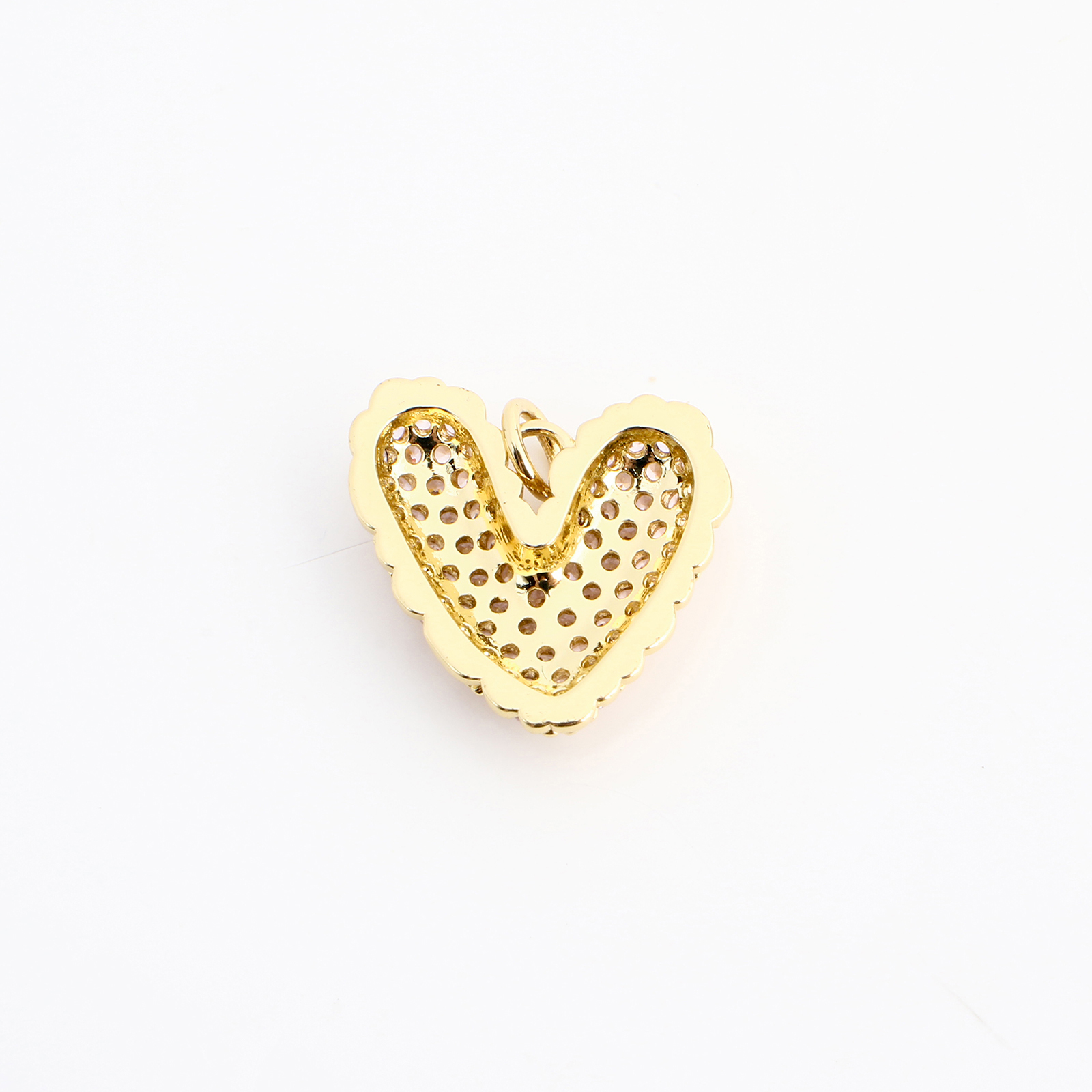 Cubique Pendentif en laiton zircon pavent, coeur, DIY & pavé de micro zircon, doré, 16x18x4mm, Vendu par PC