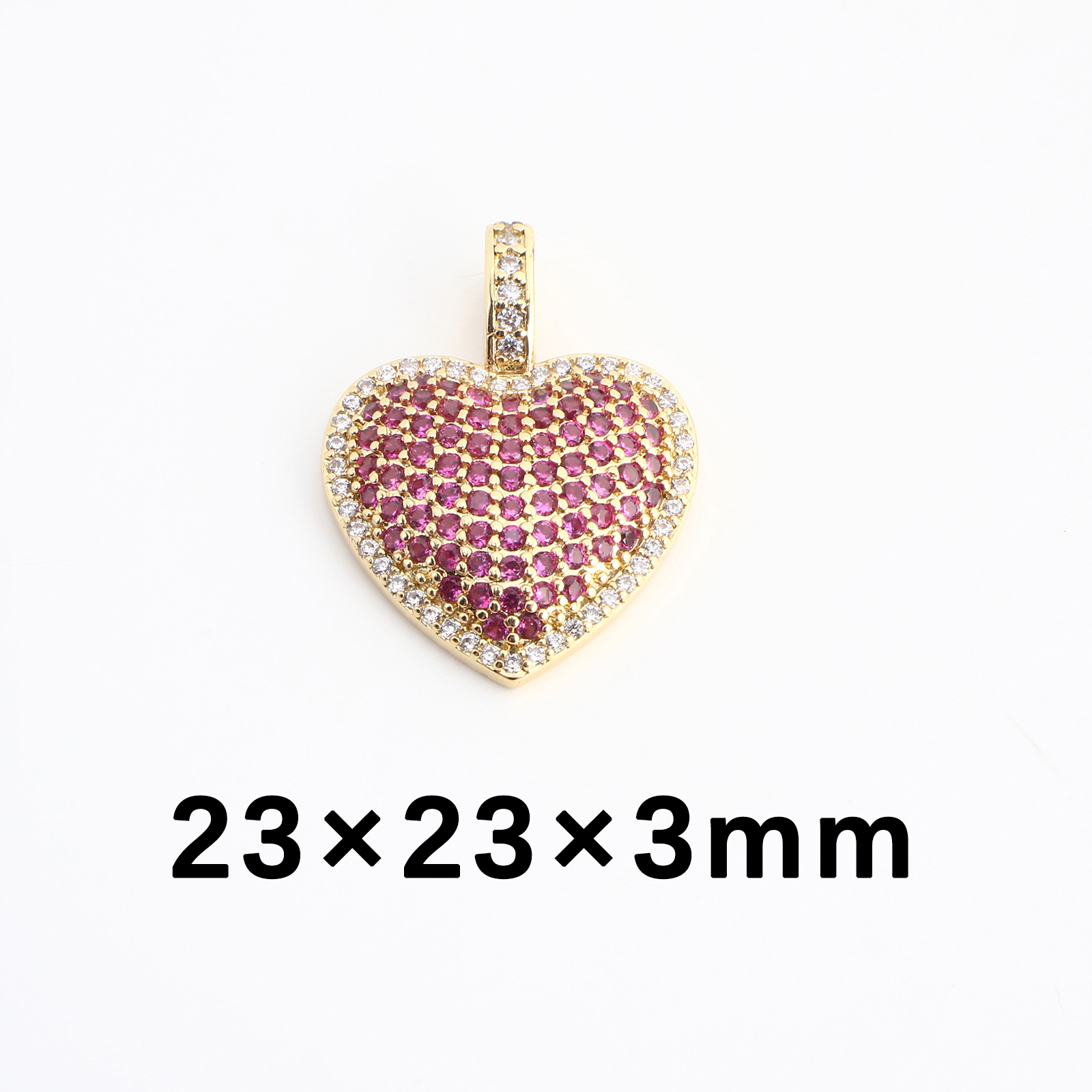 Cubique Pendentif en laiton zircon pavent, coeur, DIY & pavé de micro zircon, doré, 23x23x3mm, Vendu par PC