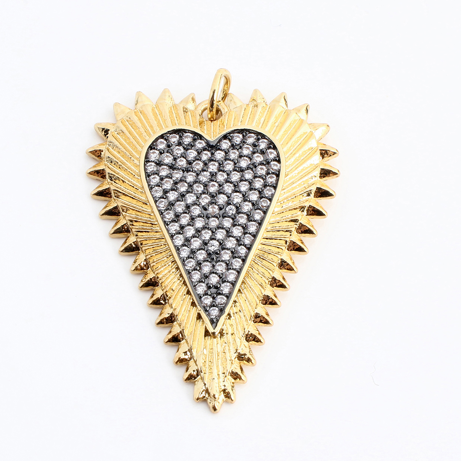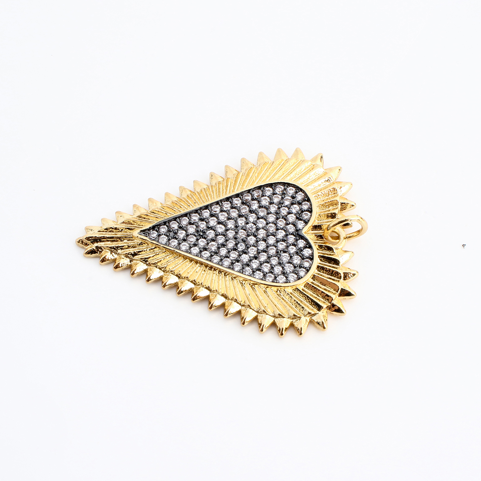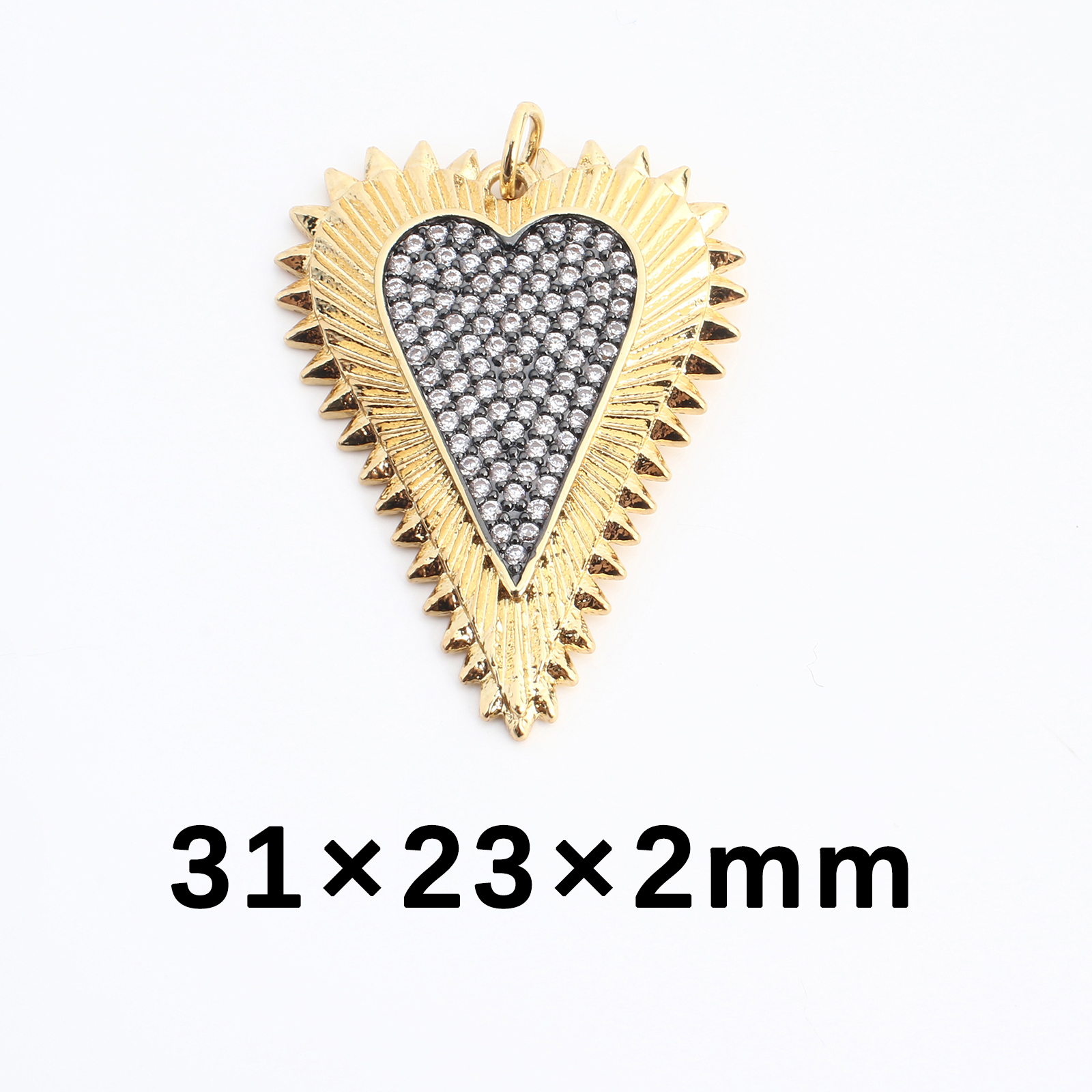 Cubique Pendentif en laiton zircon pavent, coeur, DIY & pavé de micro zircon, doré, 31x23x2mm, Vendu par PC