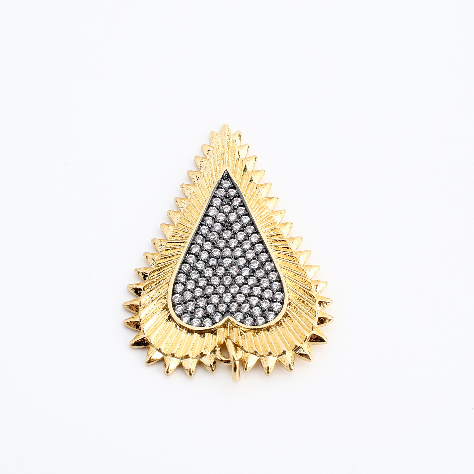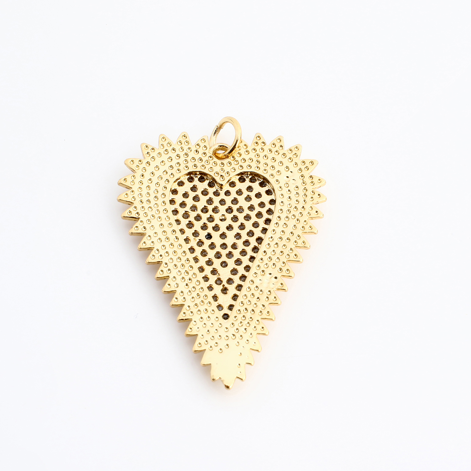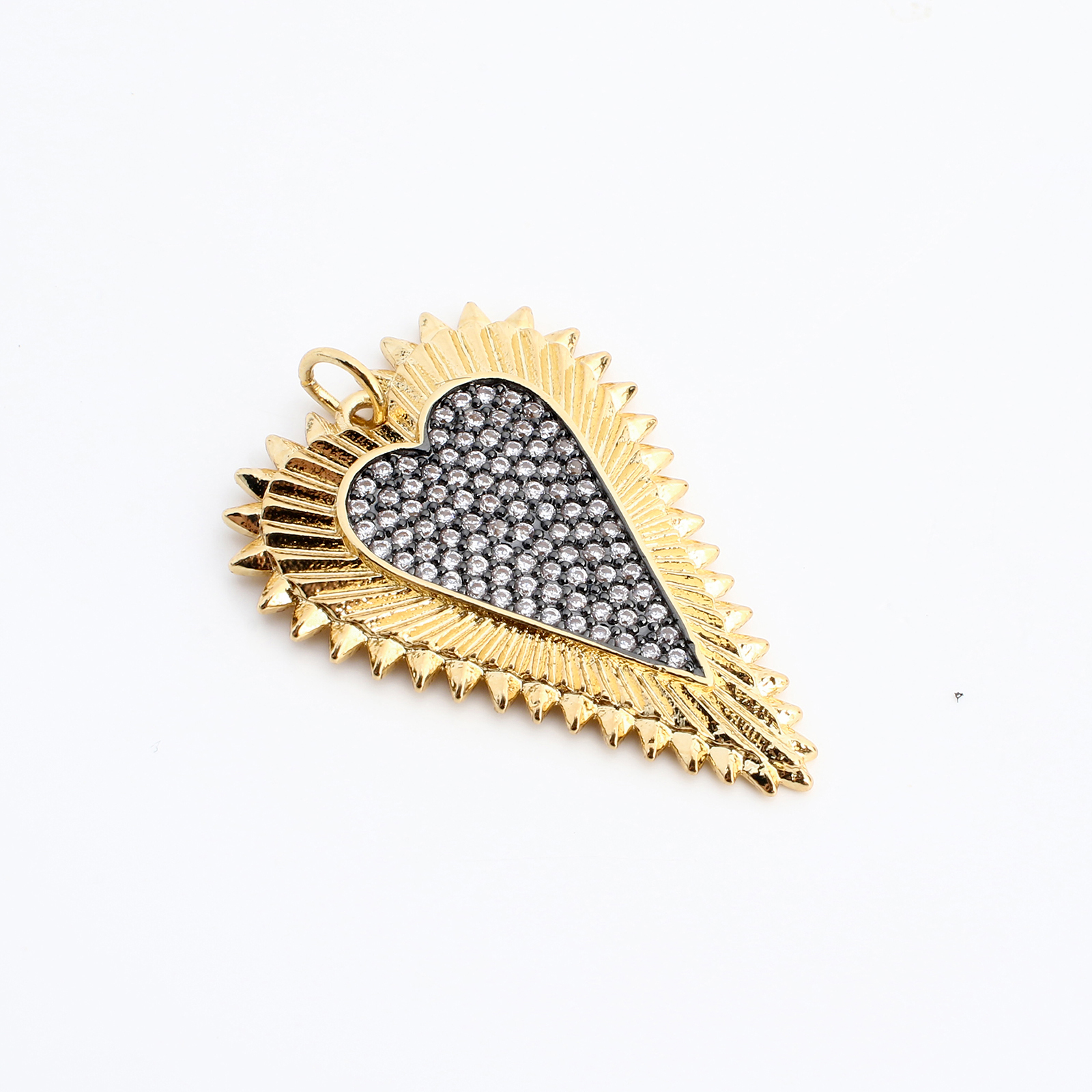 Cubique Pendentif en laiton zircon pavent, coeur, DIY & pavé de micro zircon, doré, 31x23x2mm, Vendu par PC