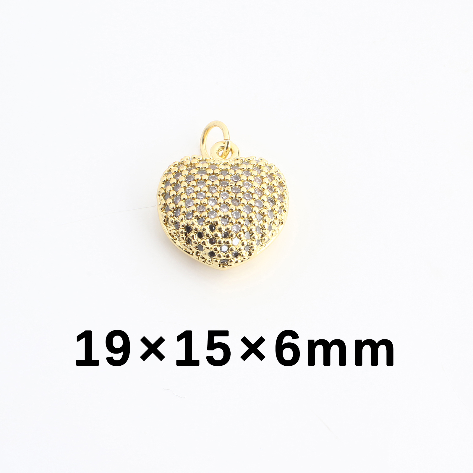 Cubique Pendentif en laiton zircon pavent, coeur, DIY & pavé de micro zircon, doré, 19x15x6mm, Vendu par PC