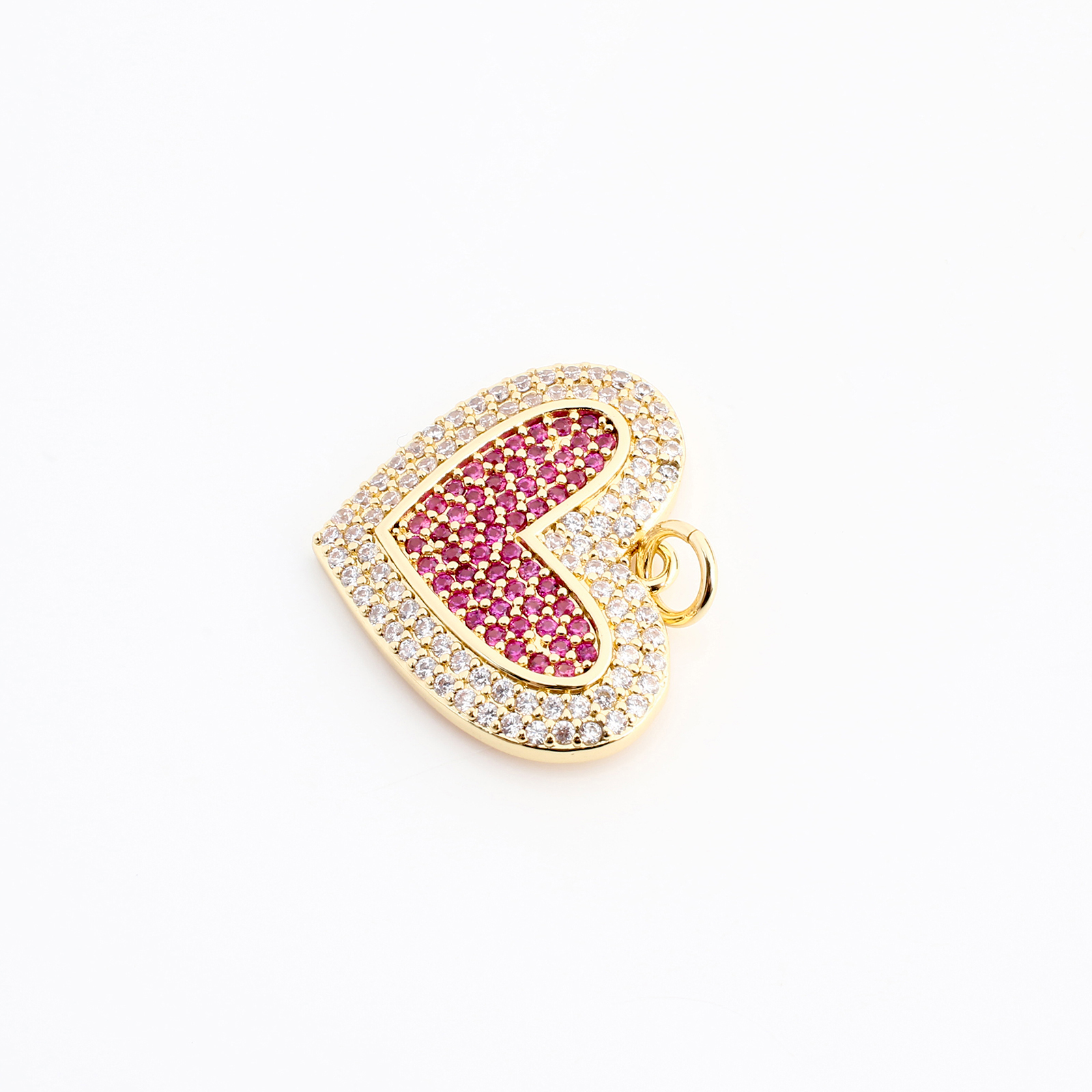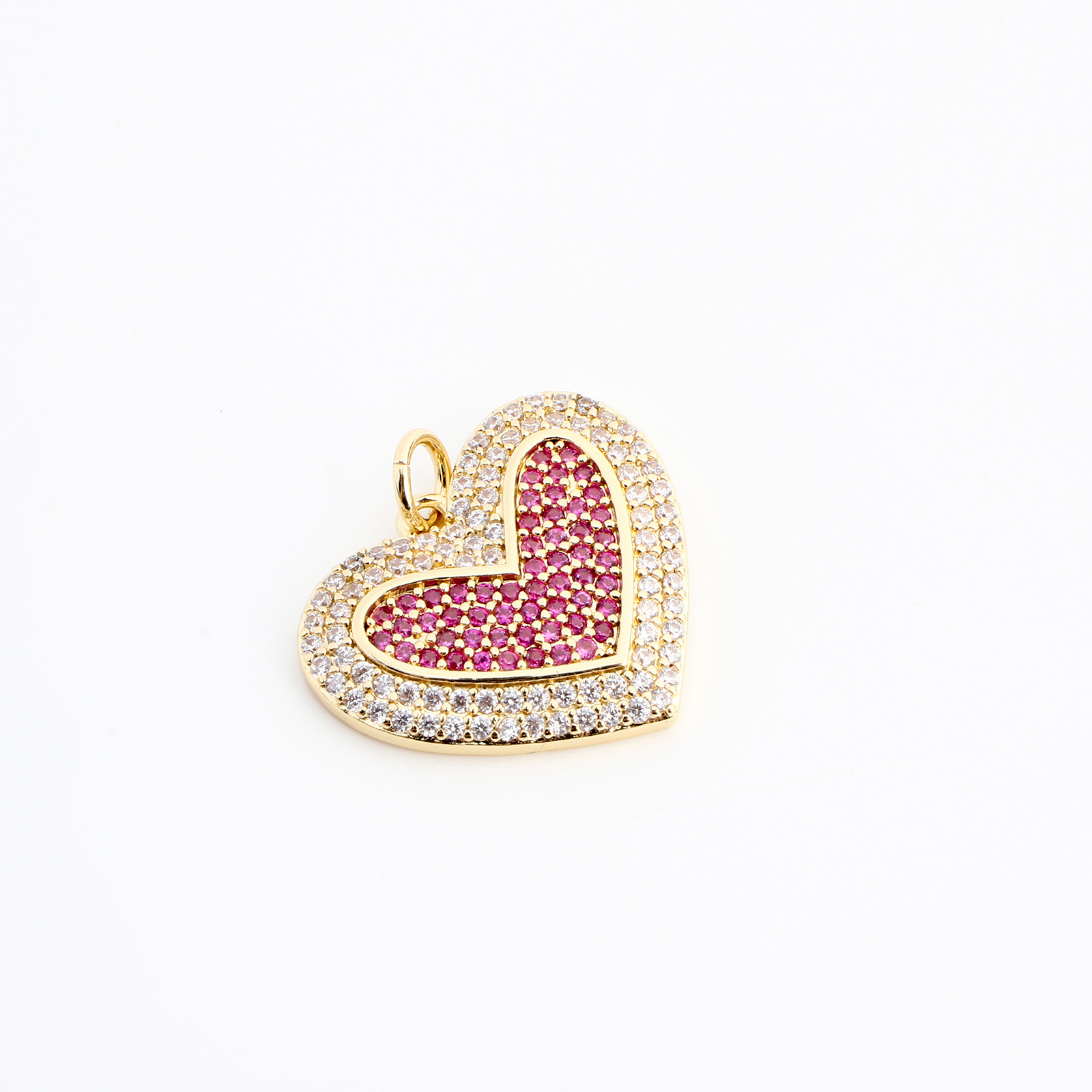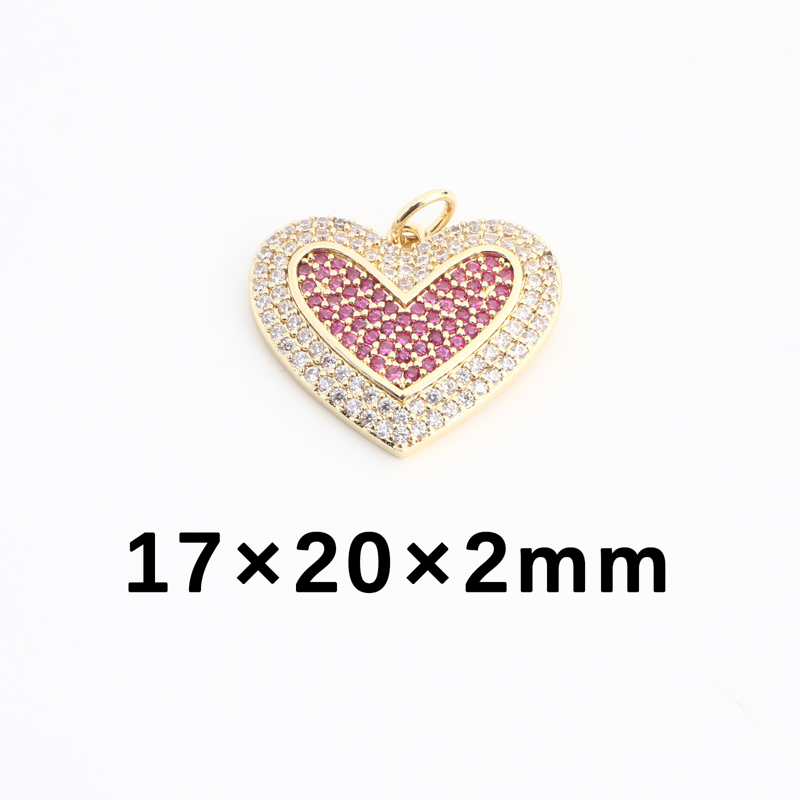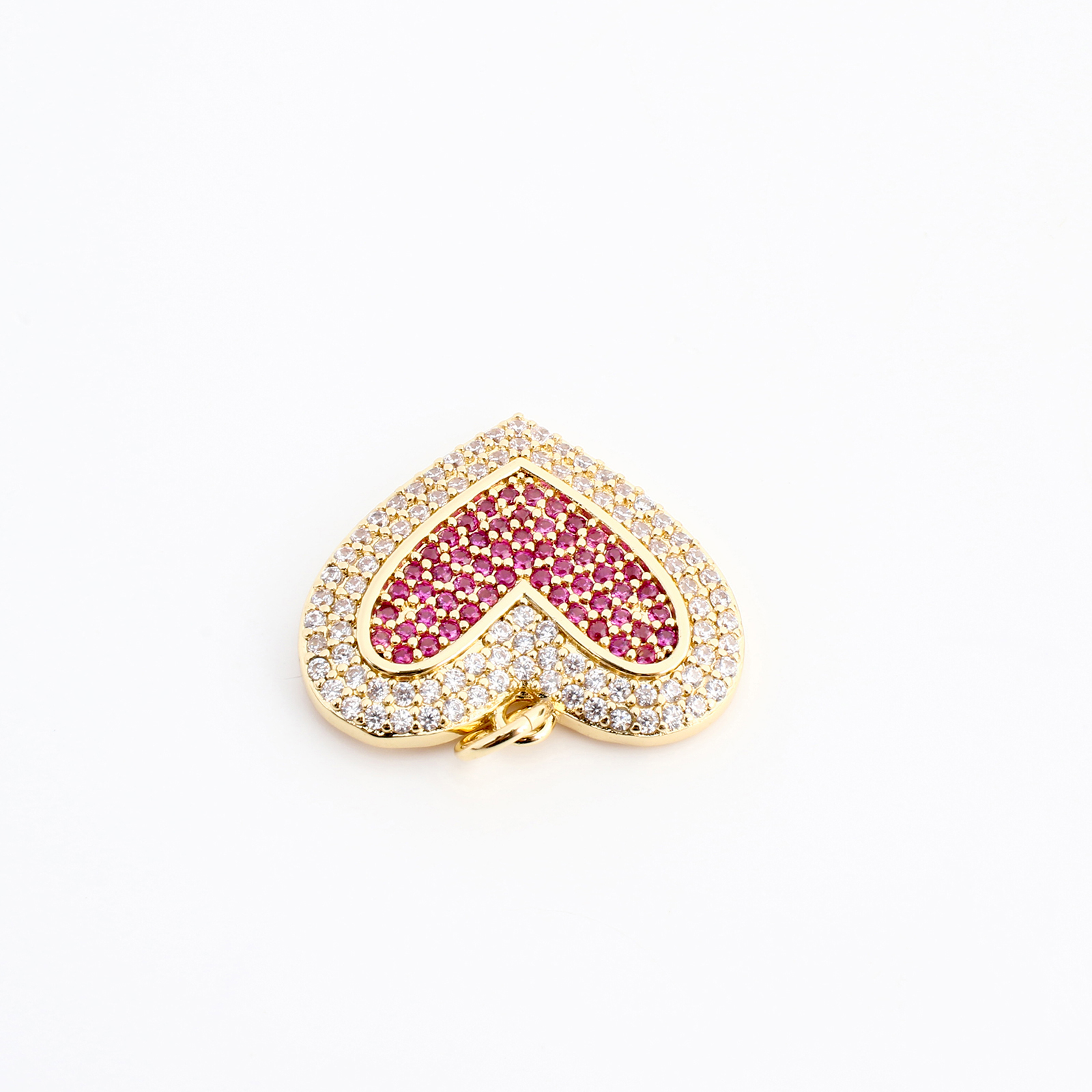 Cubique Pendentif en laiton zircon pavent, coeur, DIY & pavé de micro zircon, doré, 17x20x2mm, Vendu par PC