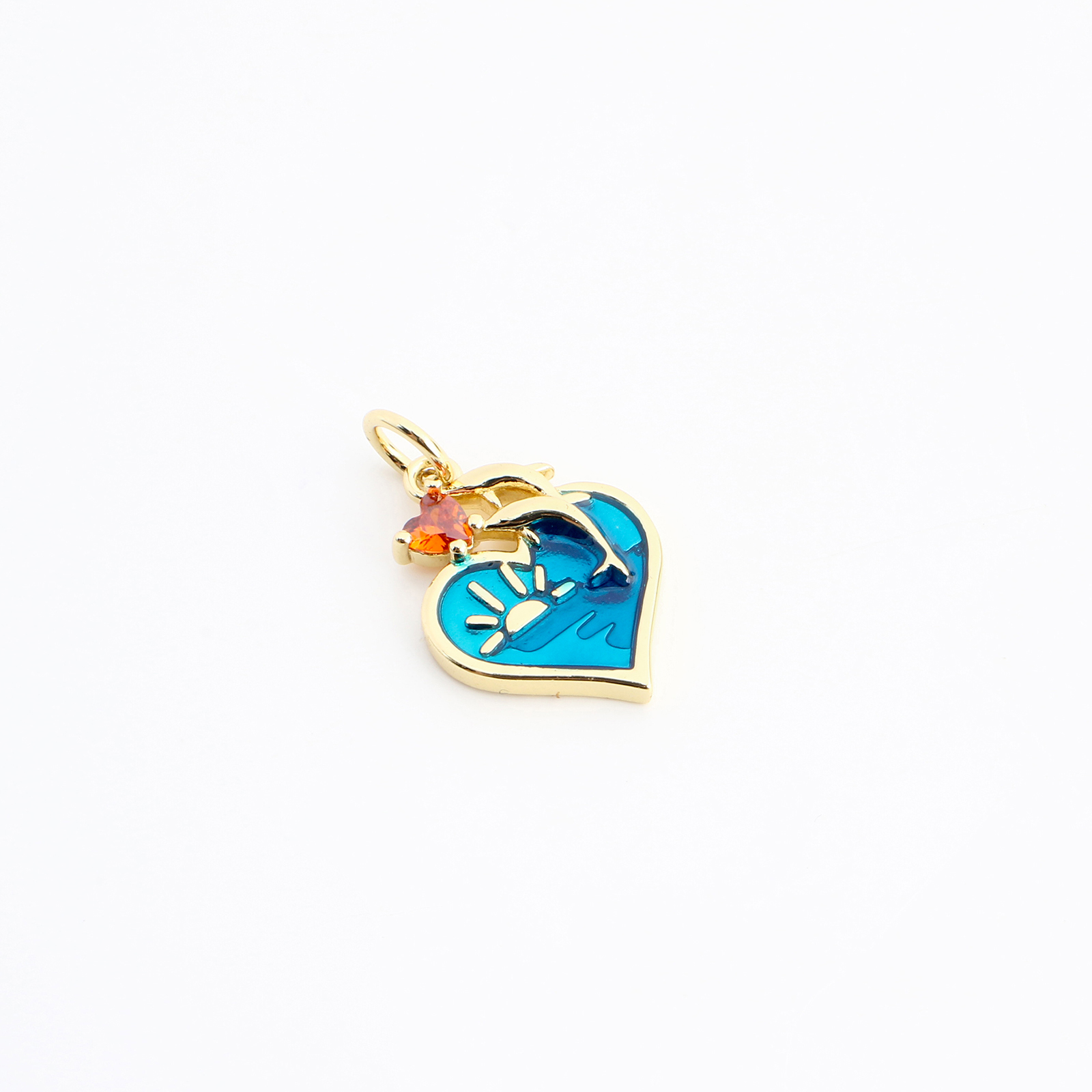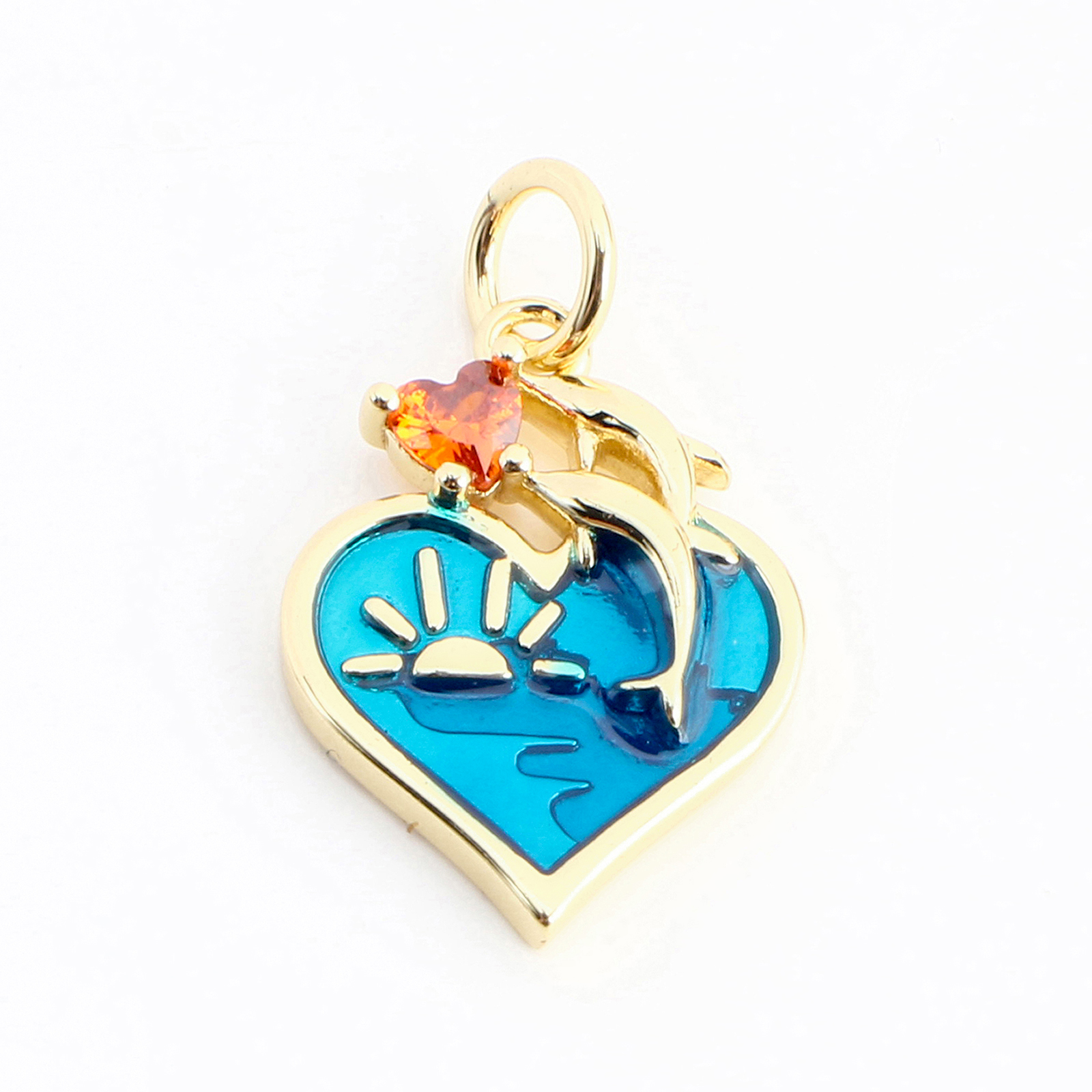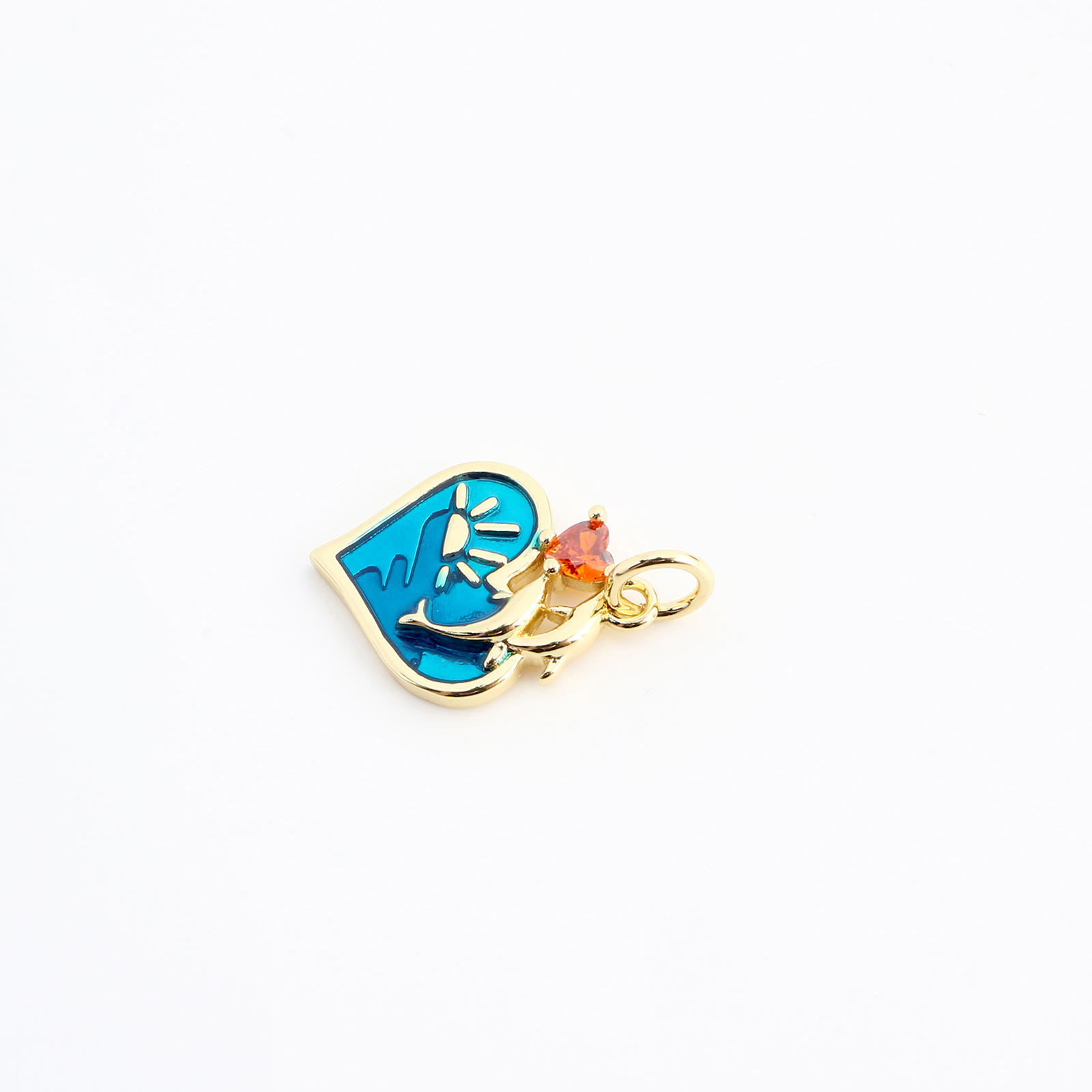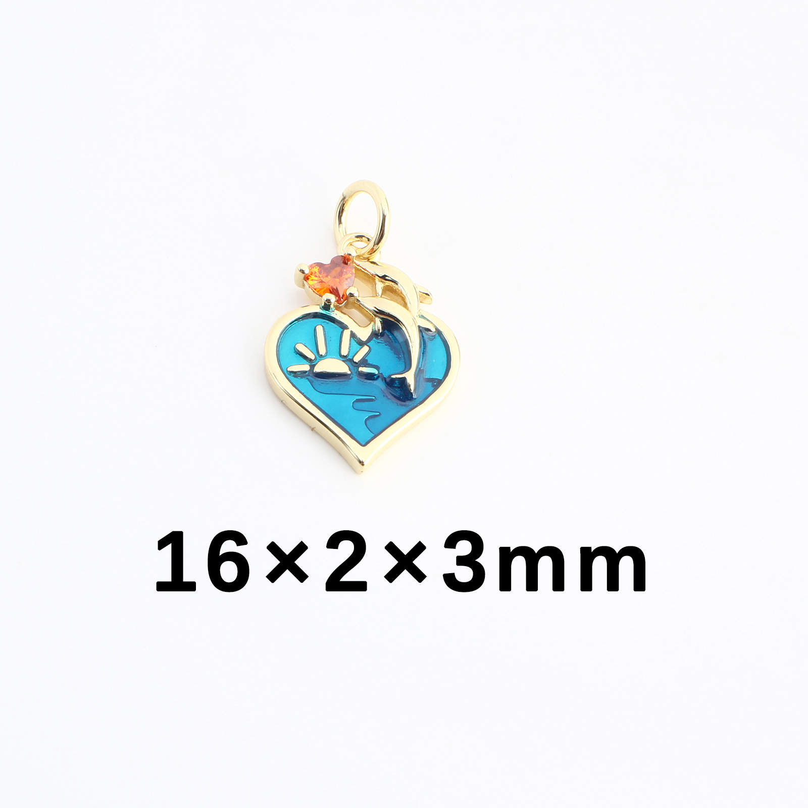 Cubique Pendentif en laiton zircon pavent, coeur, DIY & pavé de micro zircon & émail, doré, 16x2x3mm, Vendu par PC