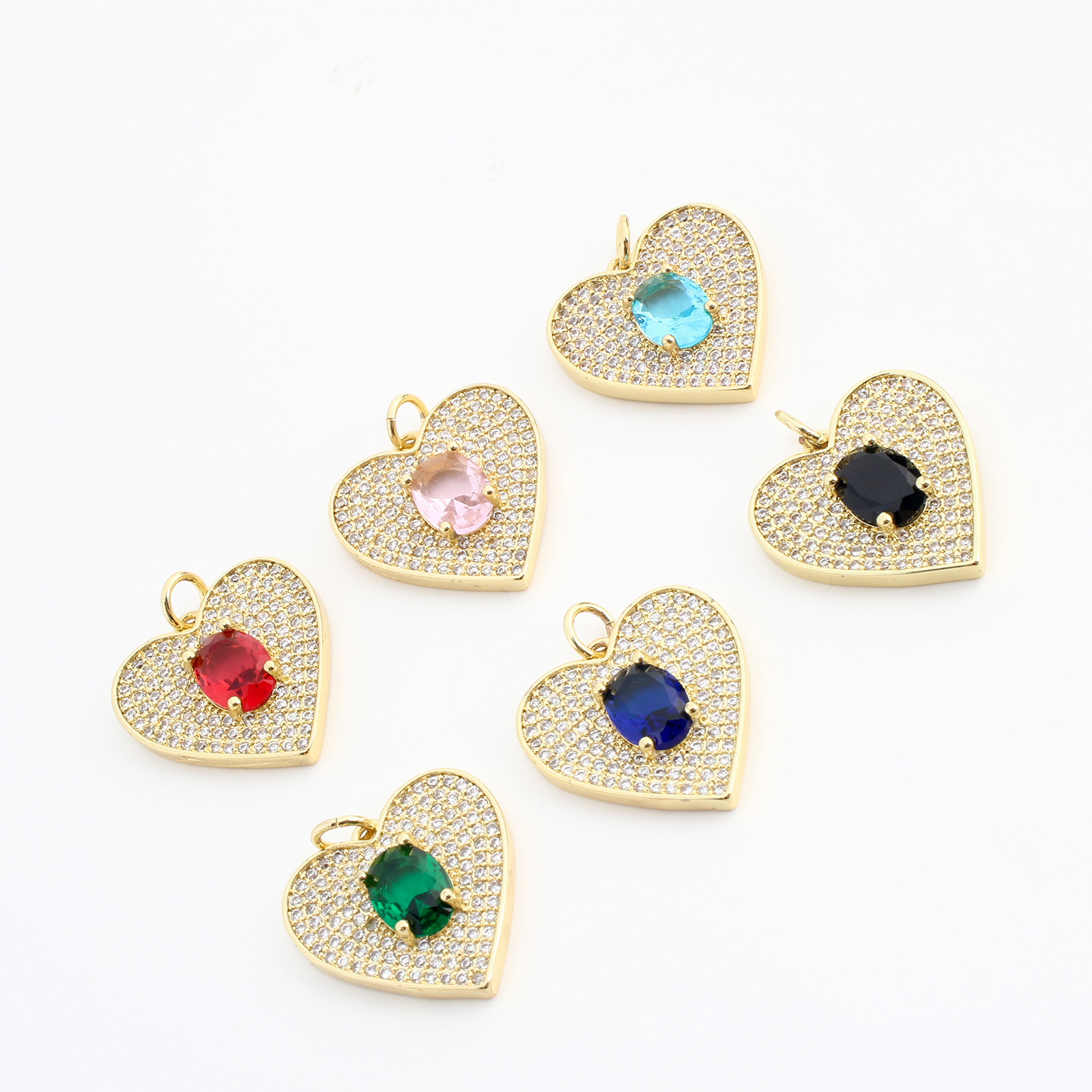 Cubique Pendentif en laiton zircon pavent, coeur, Placage de couleur d'or, DIY & pavé de micro zircon, plus de couleurs à choisir, 19x19x5mm, Vendu par PC