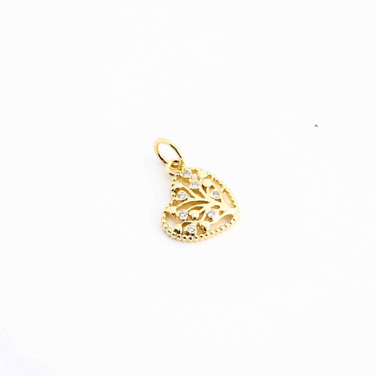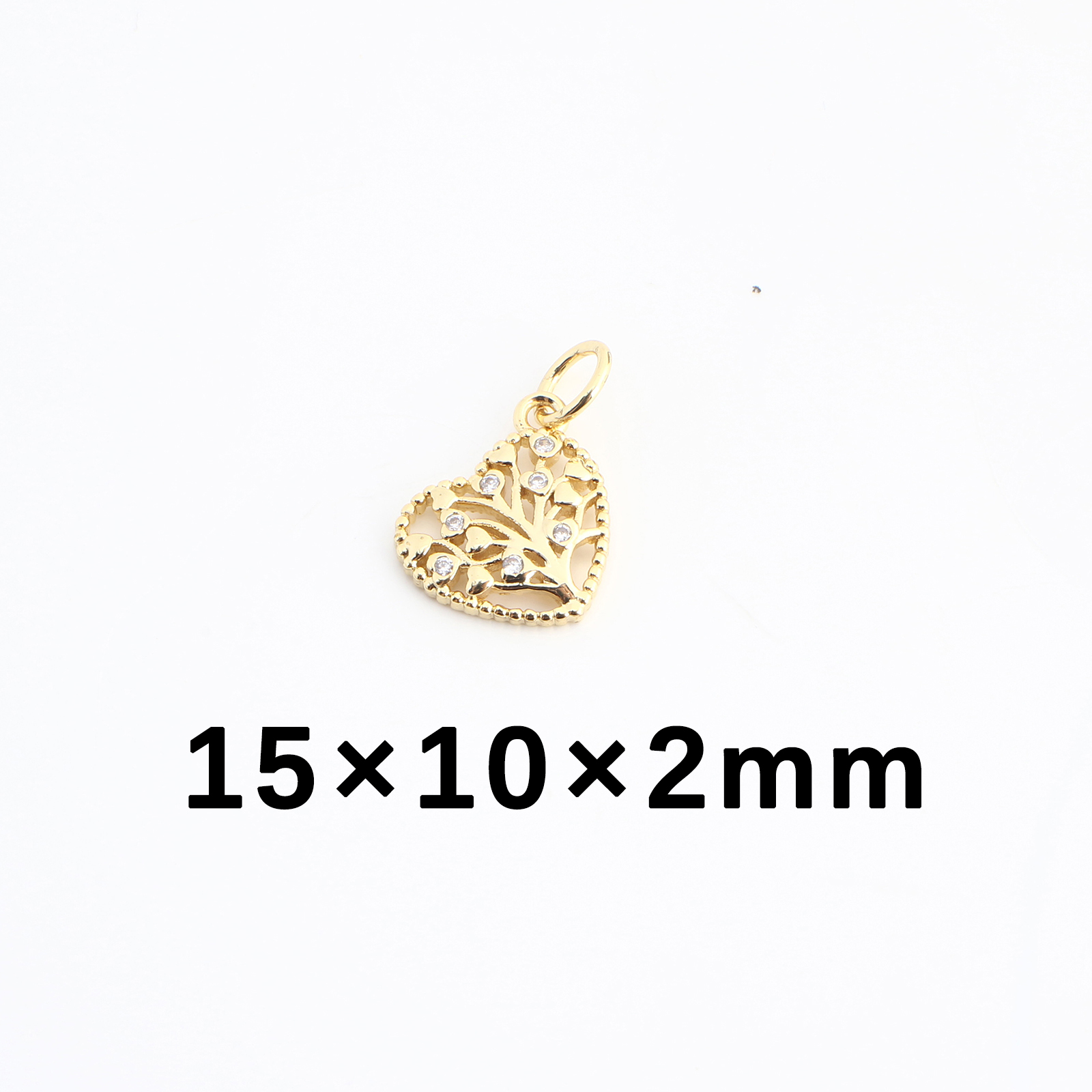 Cubique Pendentif en laiton zircon pavent, coeur, DIY & pavé de micro zircon & creux, doré, 15x10x2mm, Vendu par PC