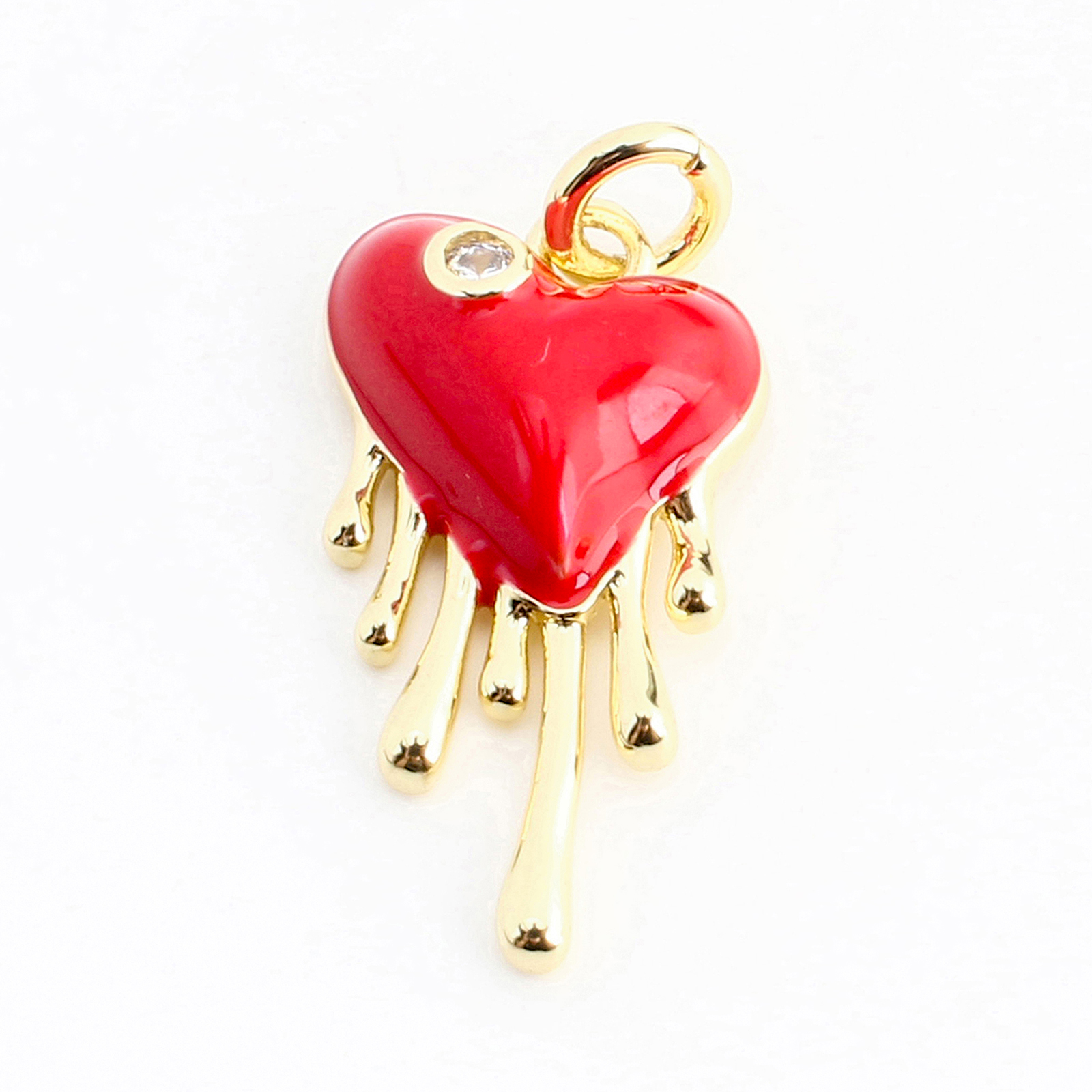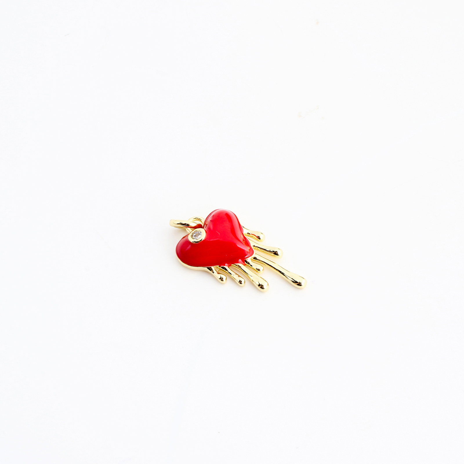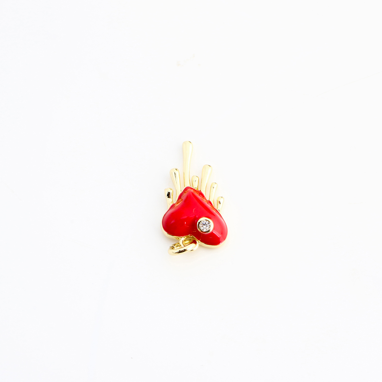 Cubique Pendentif en laiton zircon pavent, coeur, DIY & pavé de micro zircon & émail, doré, 16x9x3mm, Vendu par PC