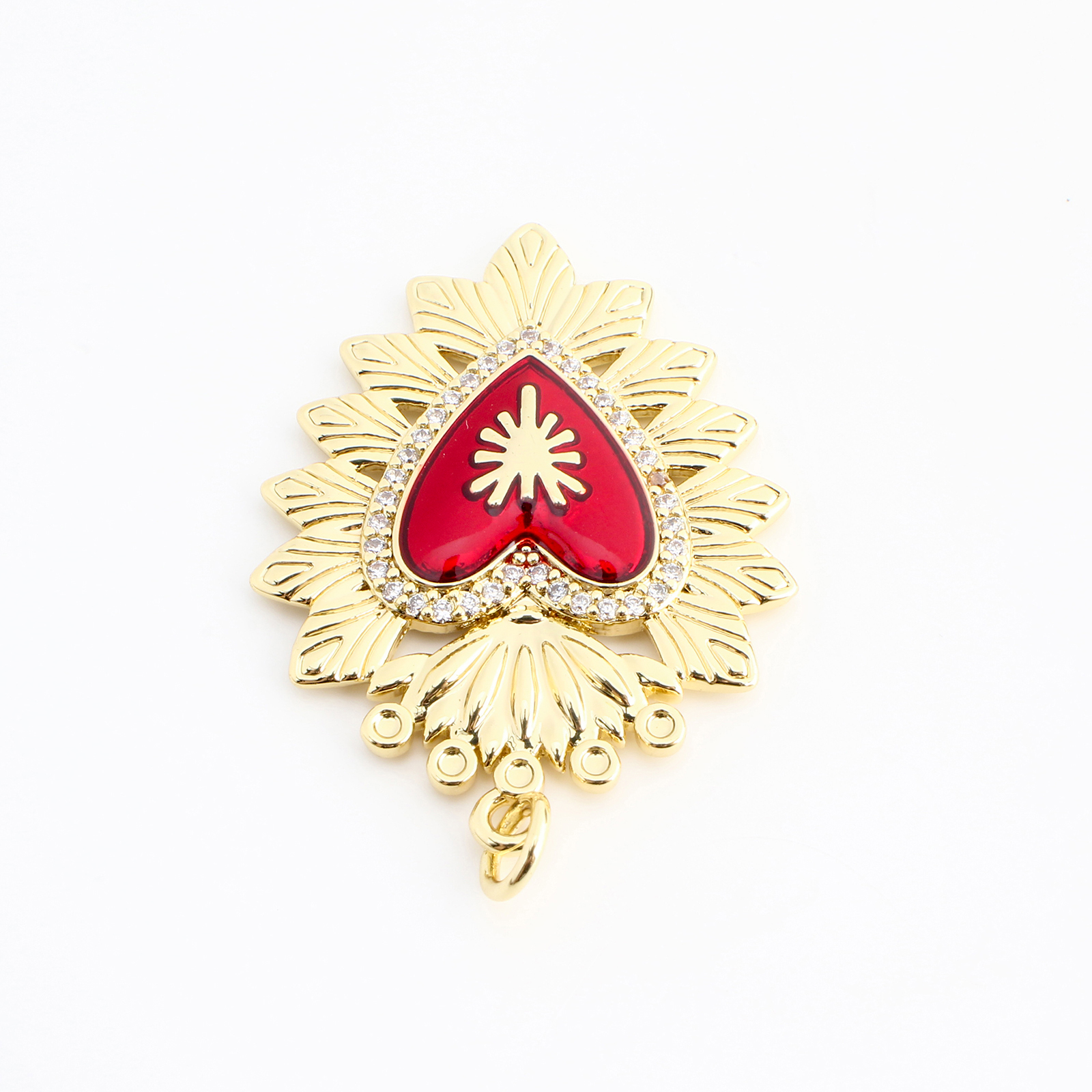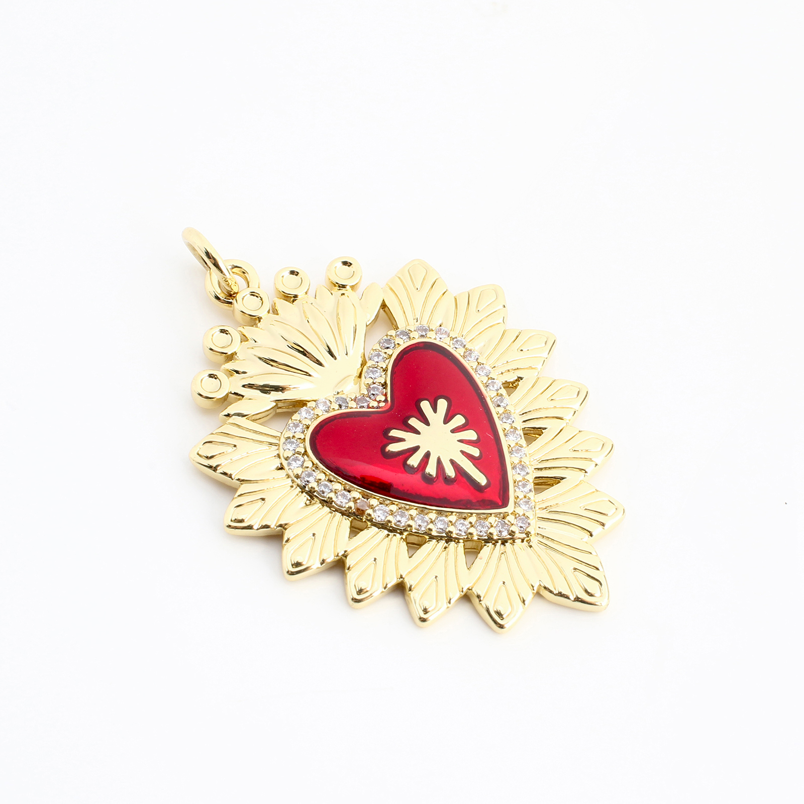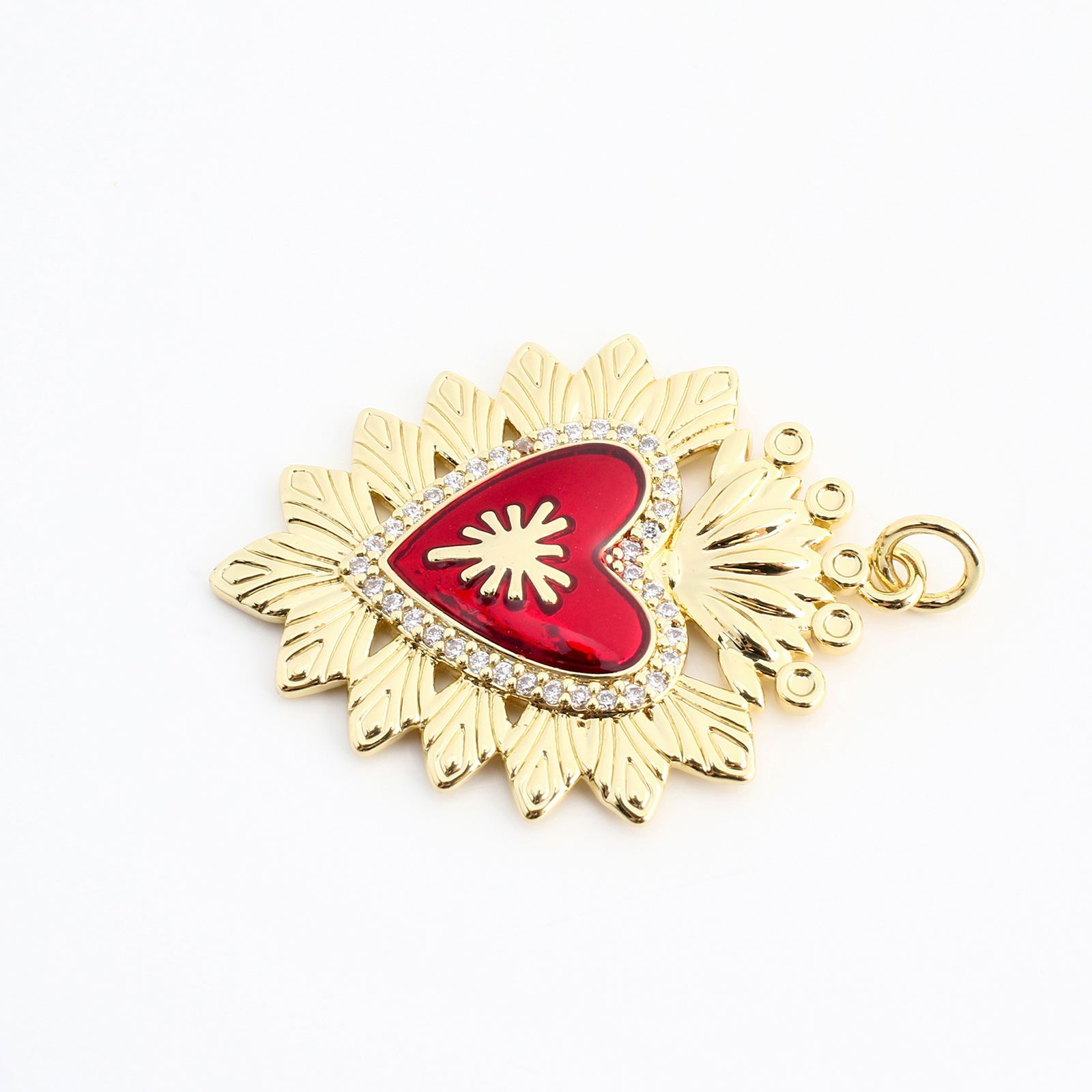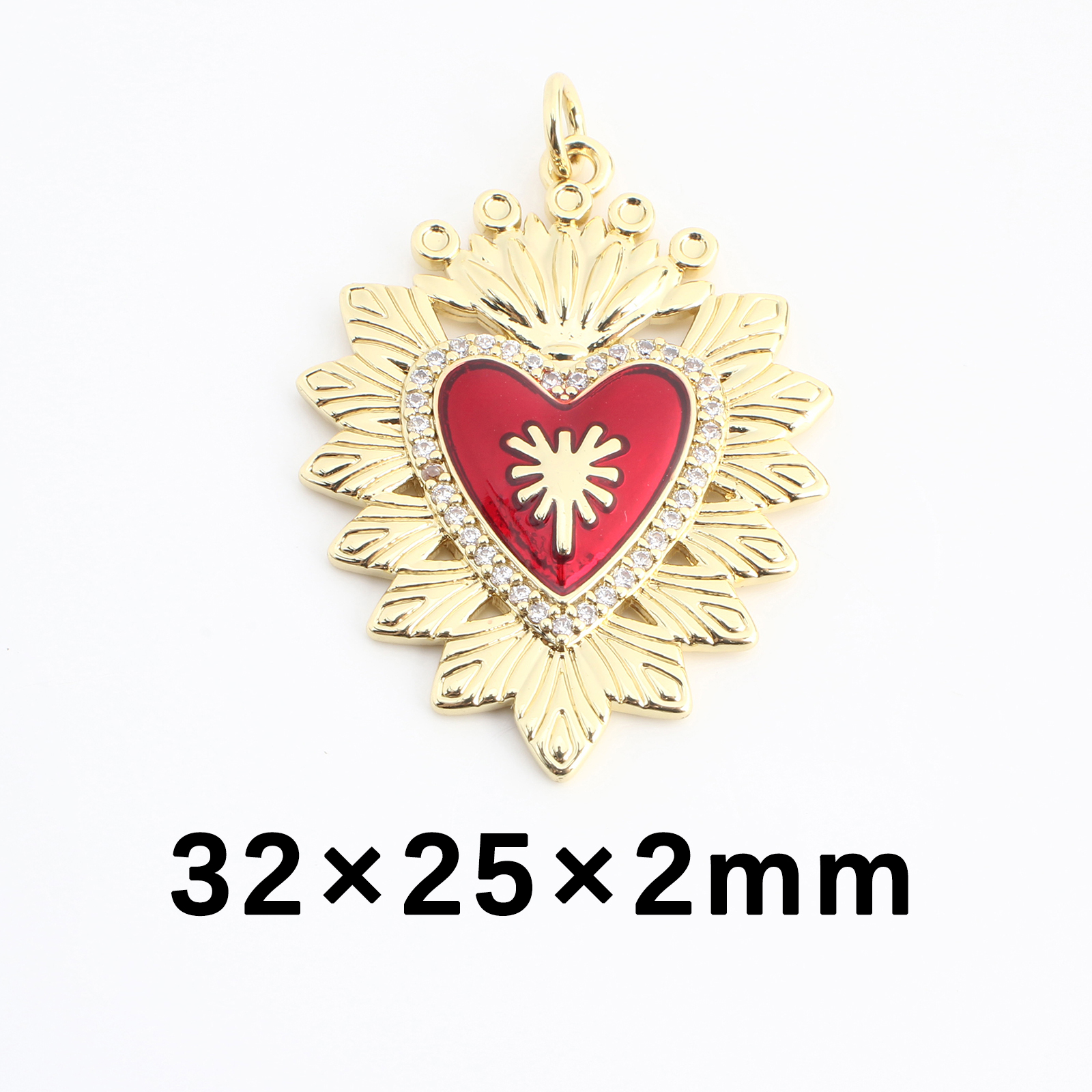 Cubique Pendentif en laiton zircon pavent, coeur, DIY & pavé de micro zircon & émail, doré, 32x25x2mm, Vendu par PC