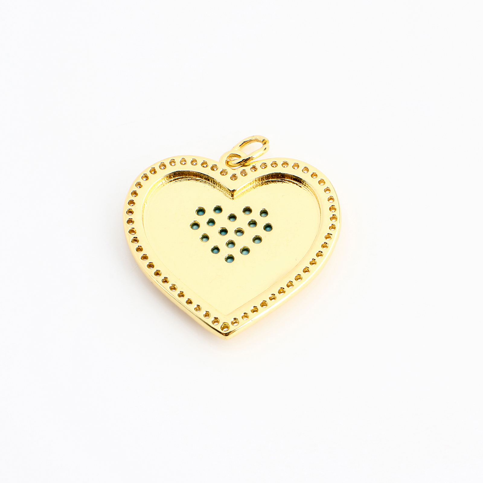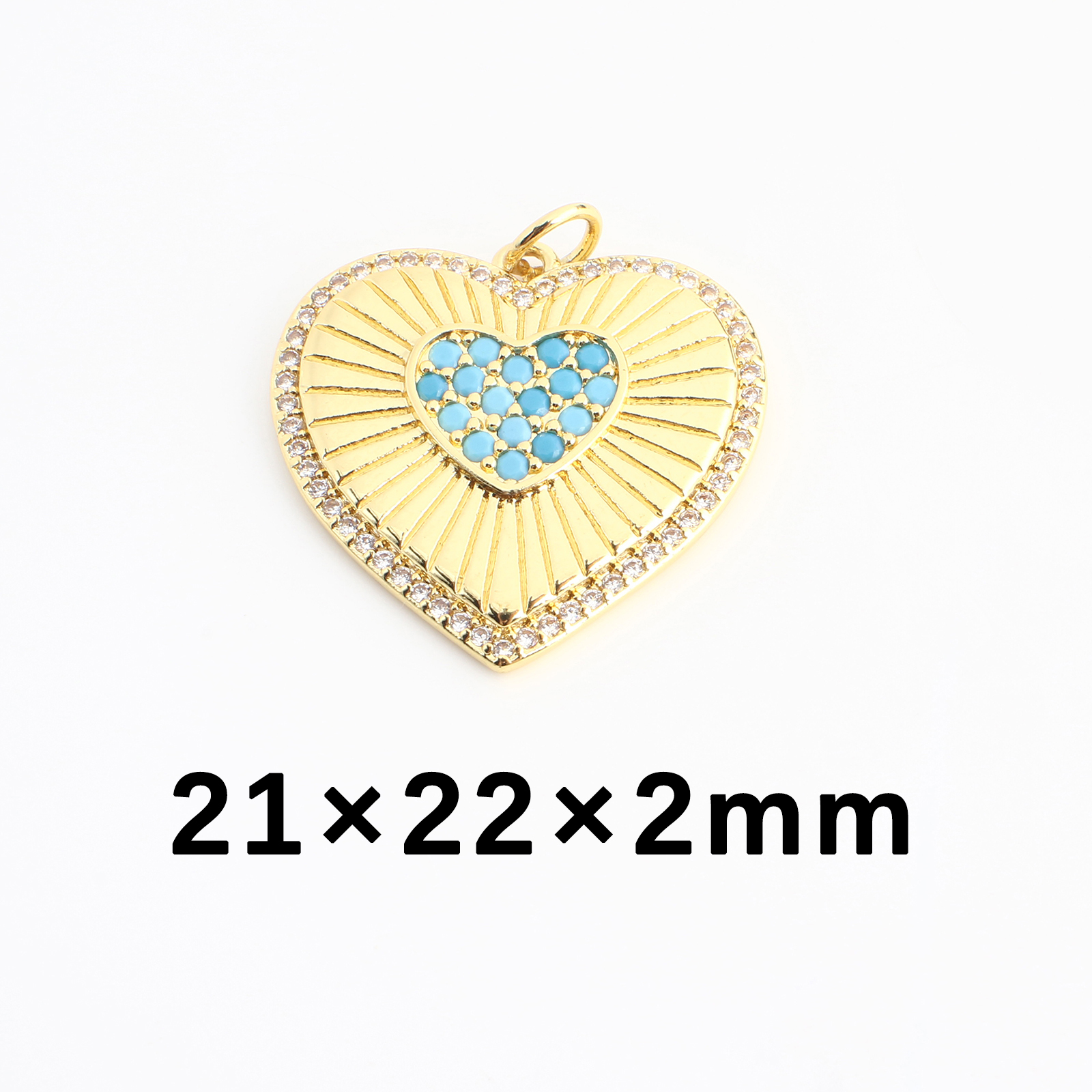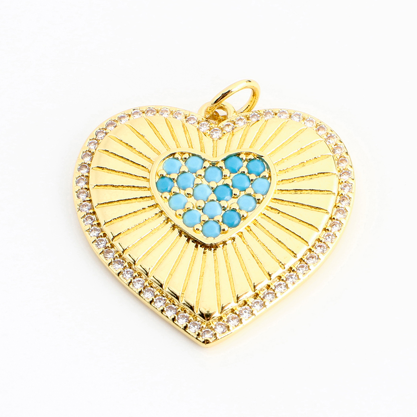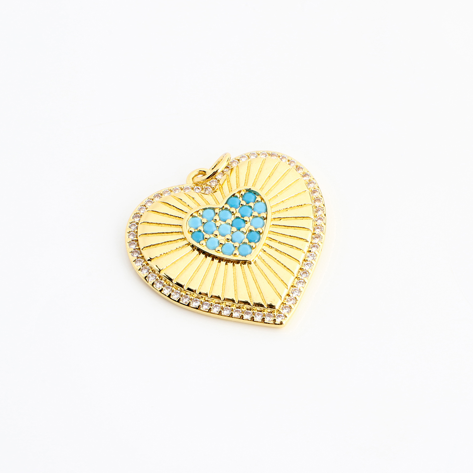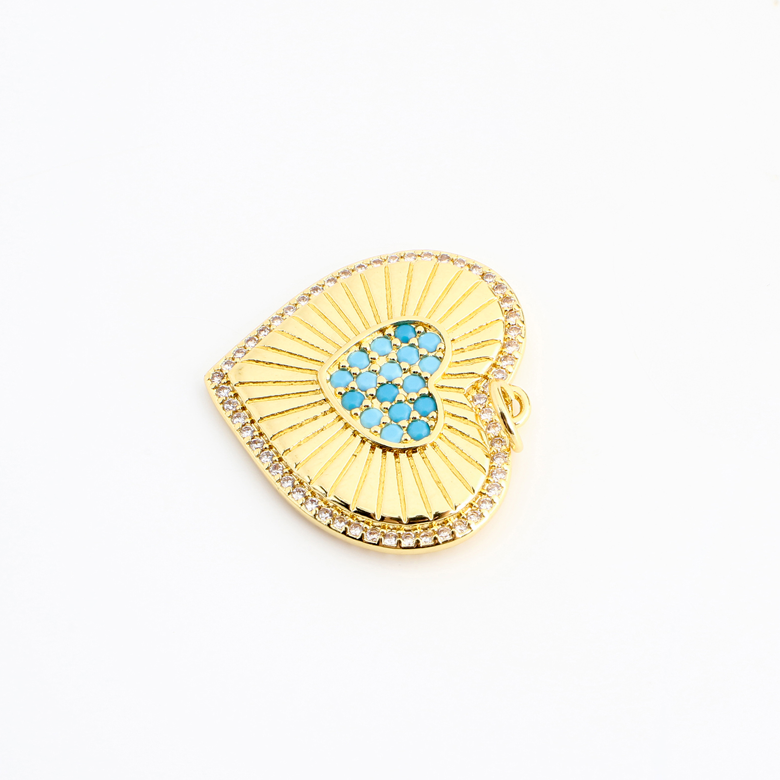 Cubique Pendentif en laiton zircon pavent, avec turquoise naturelle, coeur, DIY & pavé de micro zircon, doré, 21x22x2mm, Vendu par PC