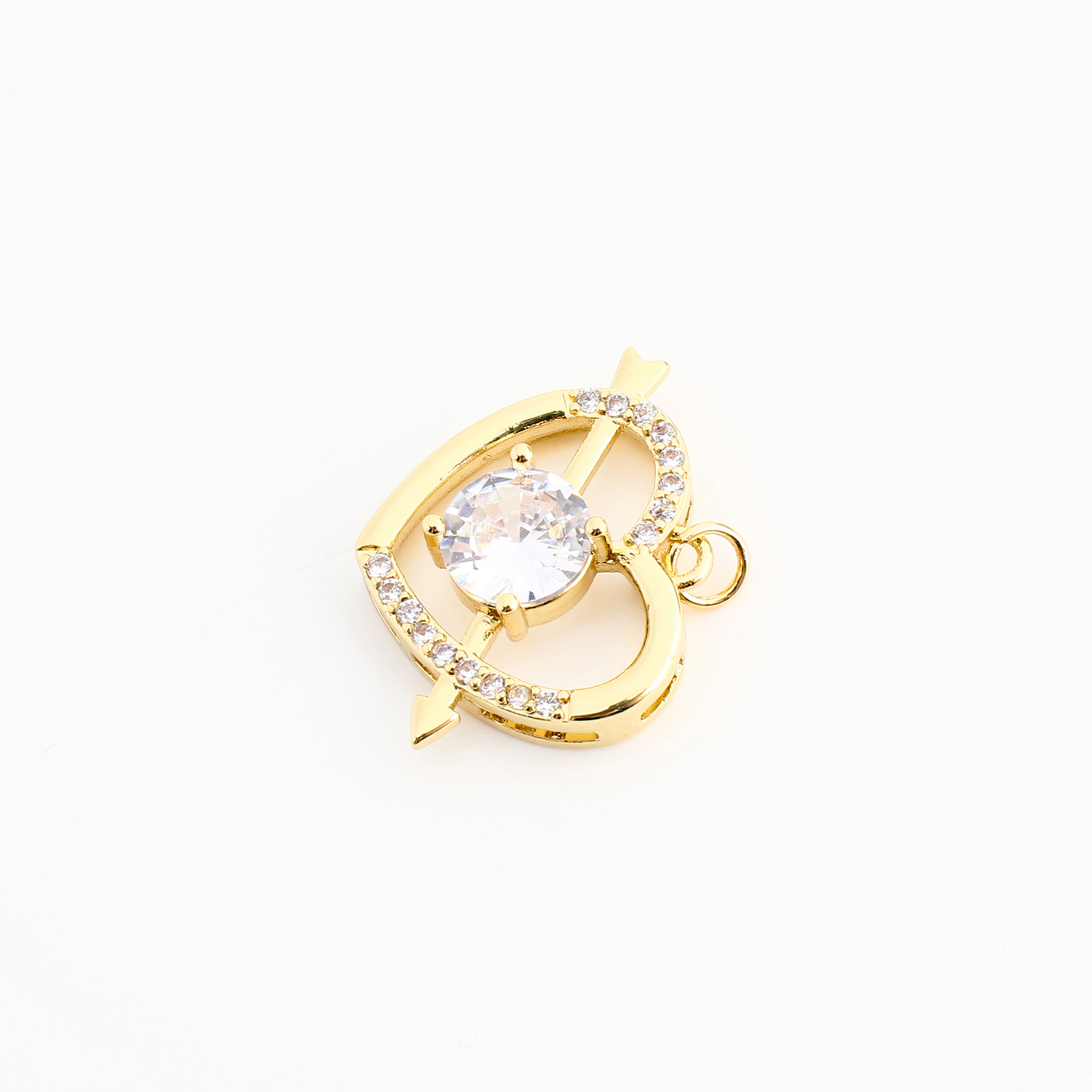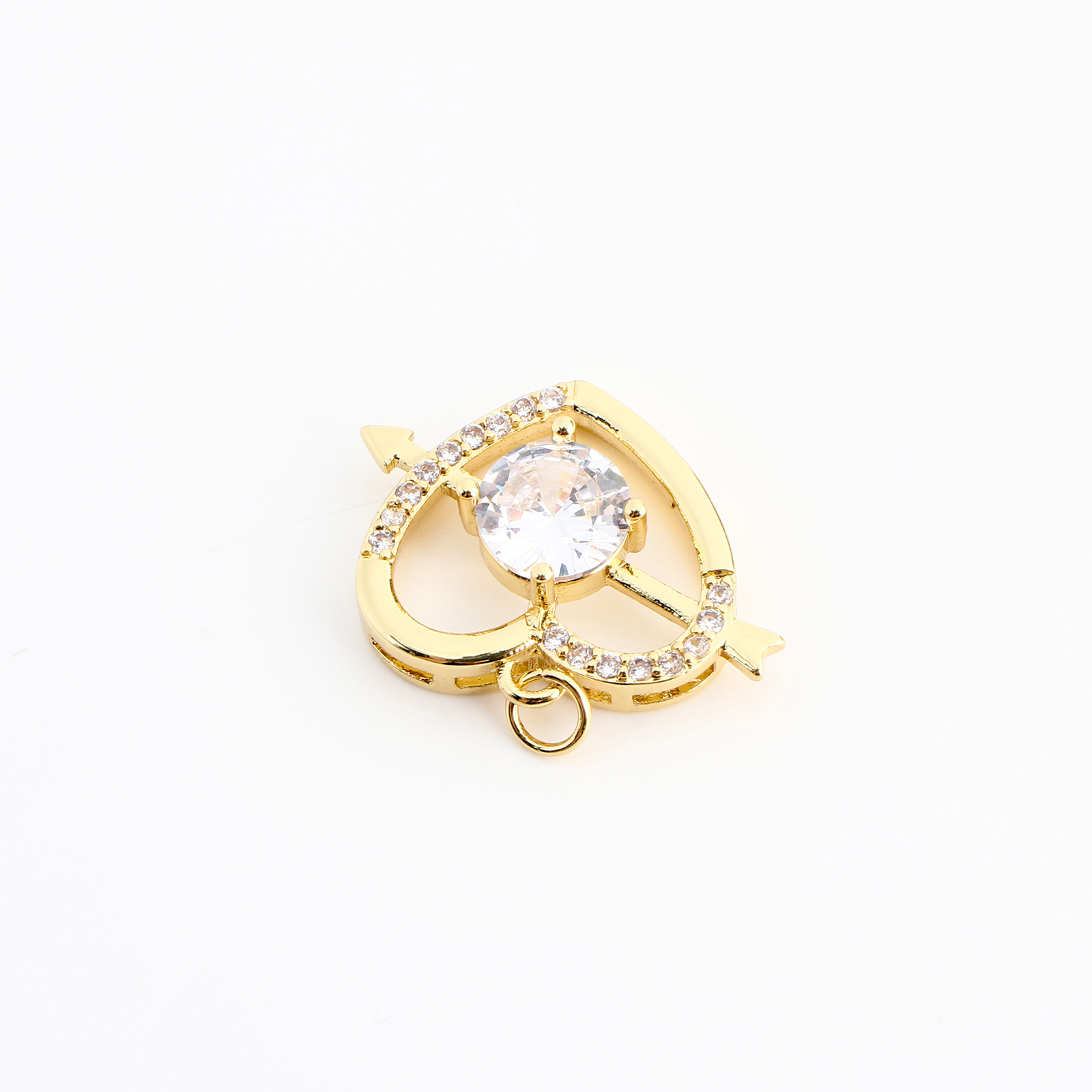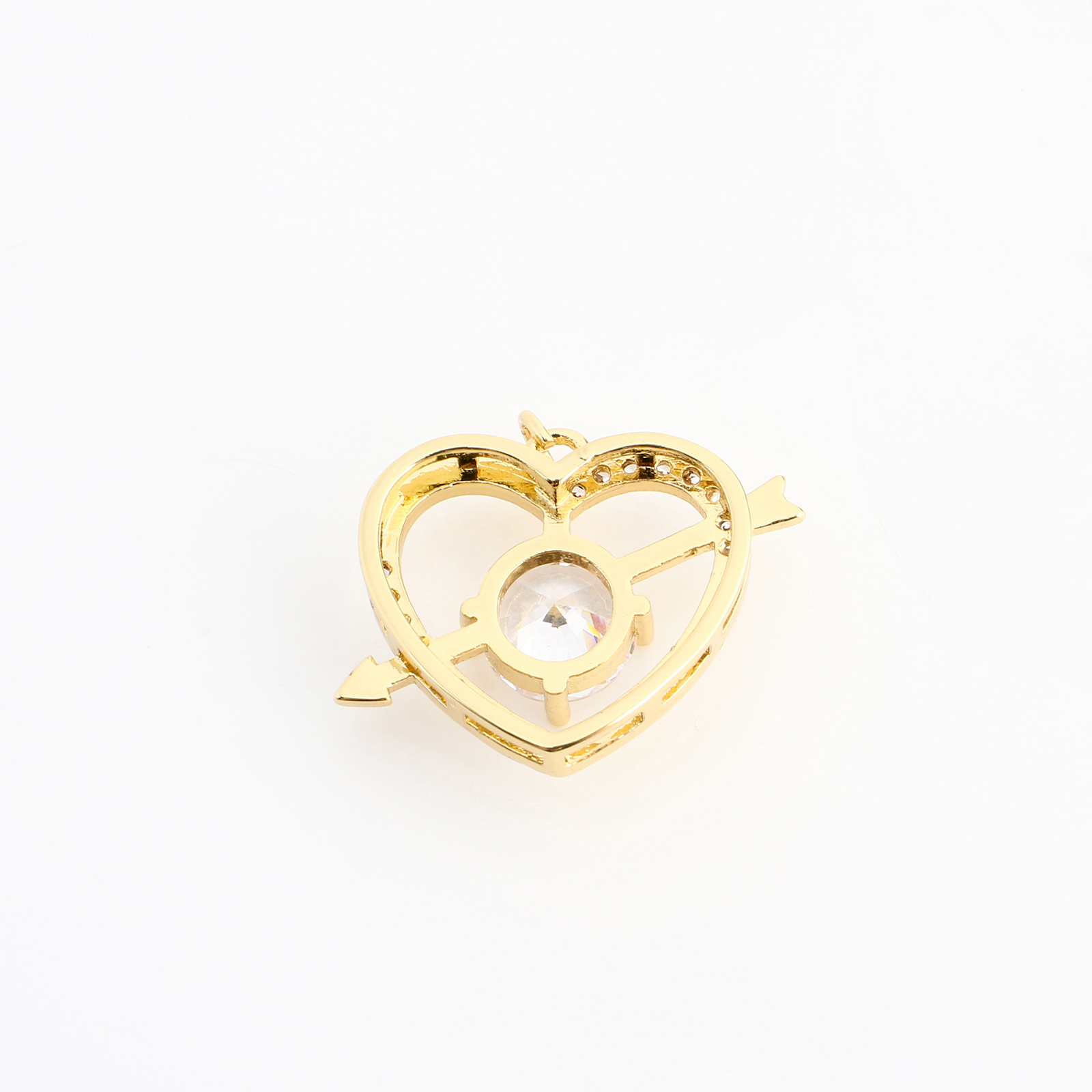 Cubique Pendentif en laiton zircon pavent, coeur, DIY & pavé de micro zircon & creux, doré, 16x21x6mm, Vendu par PC