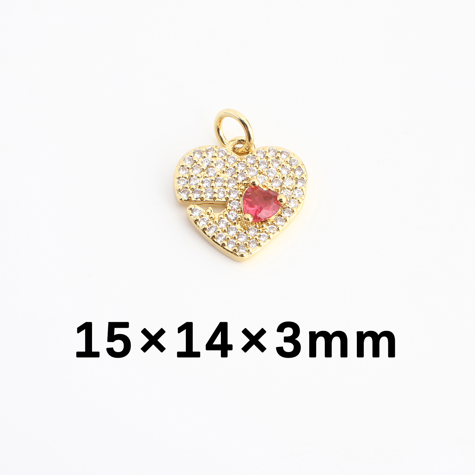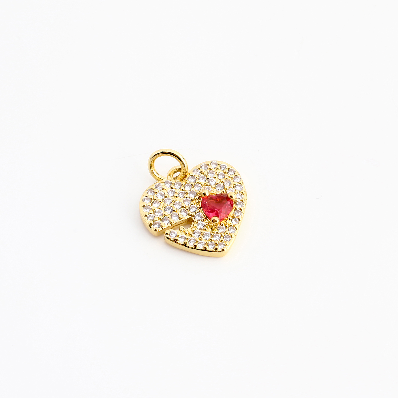 Cubique Pendentif en laiton zircon pavent, coeur, DIY & pavé de micro zircon, doré, 15x14x3mm, Vendu par PC