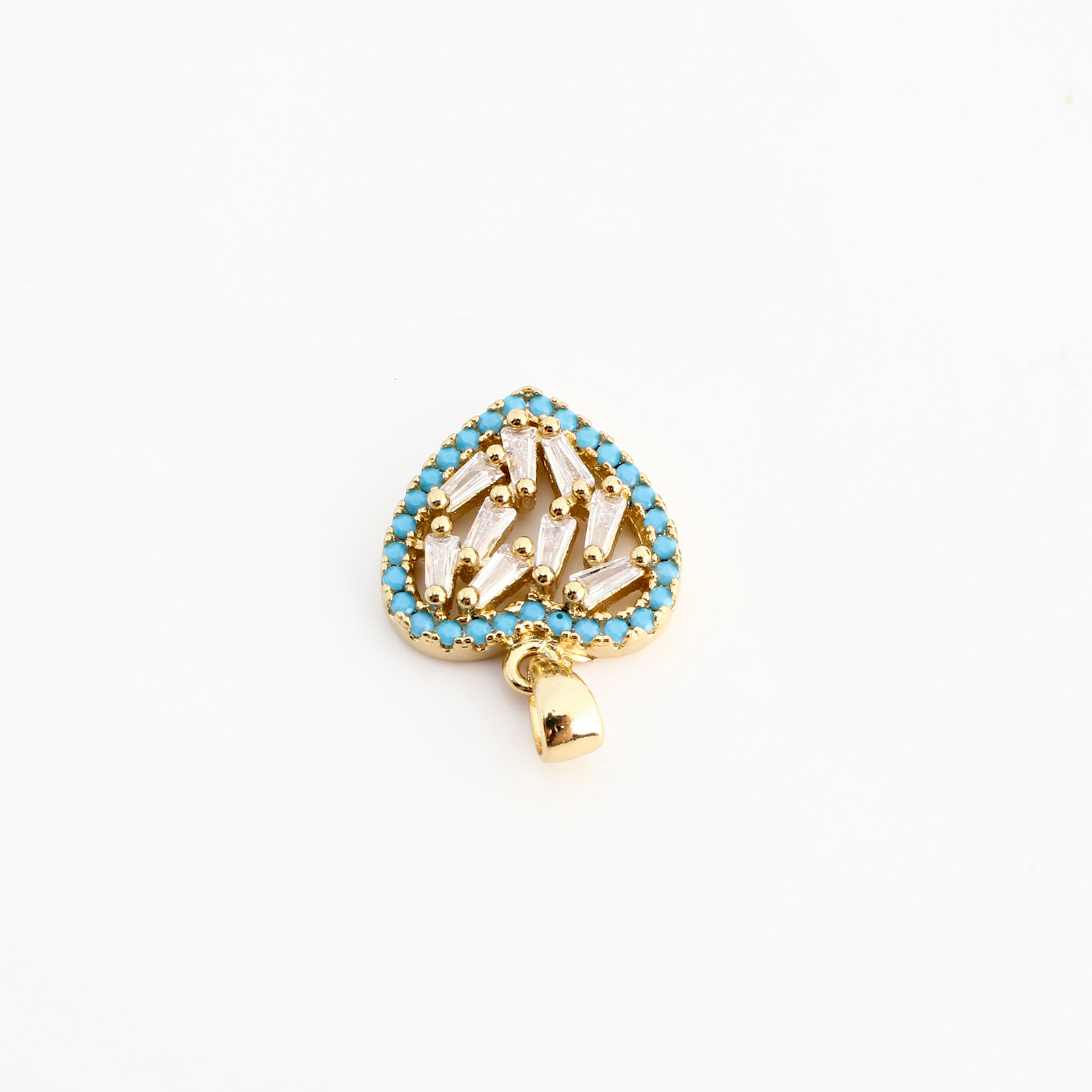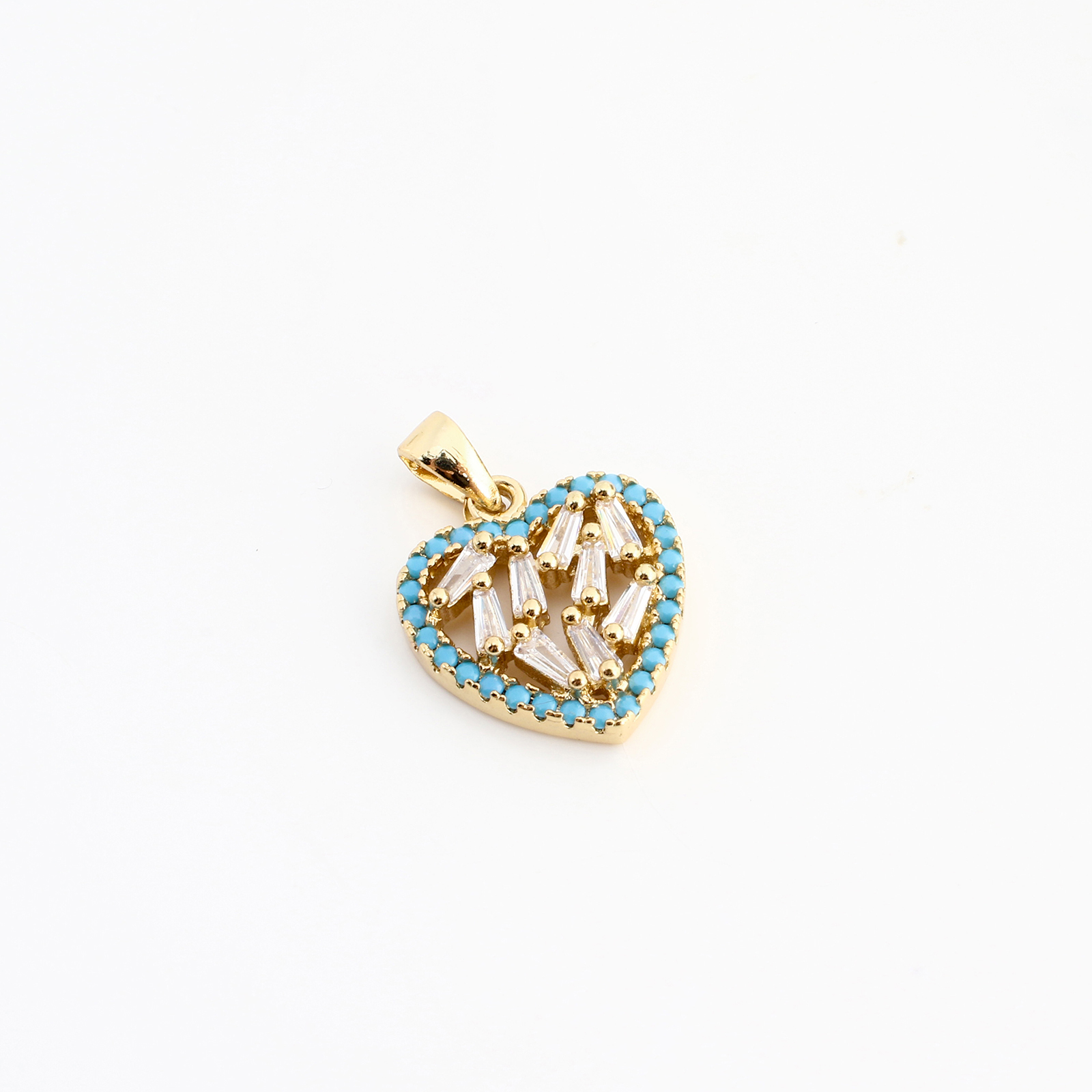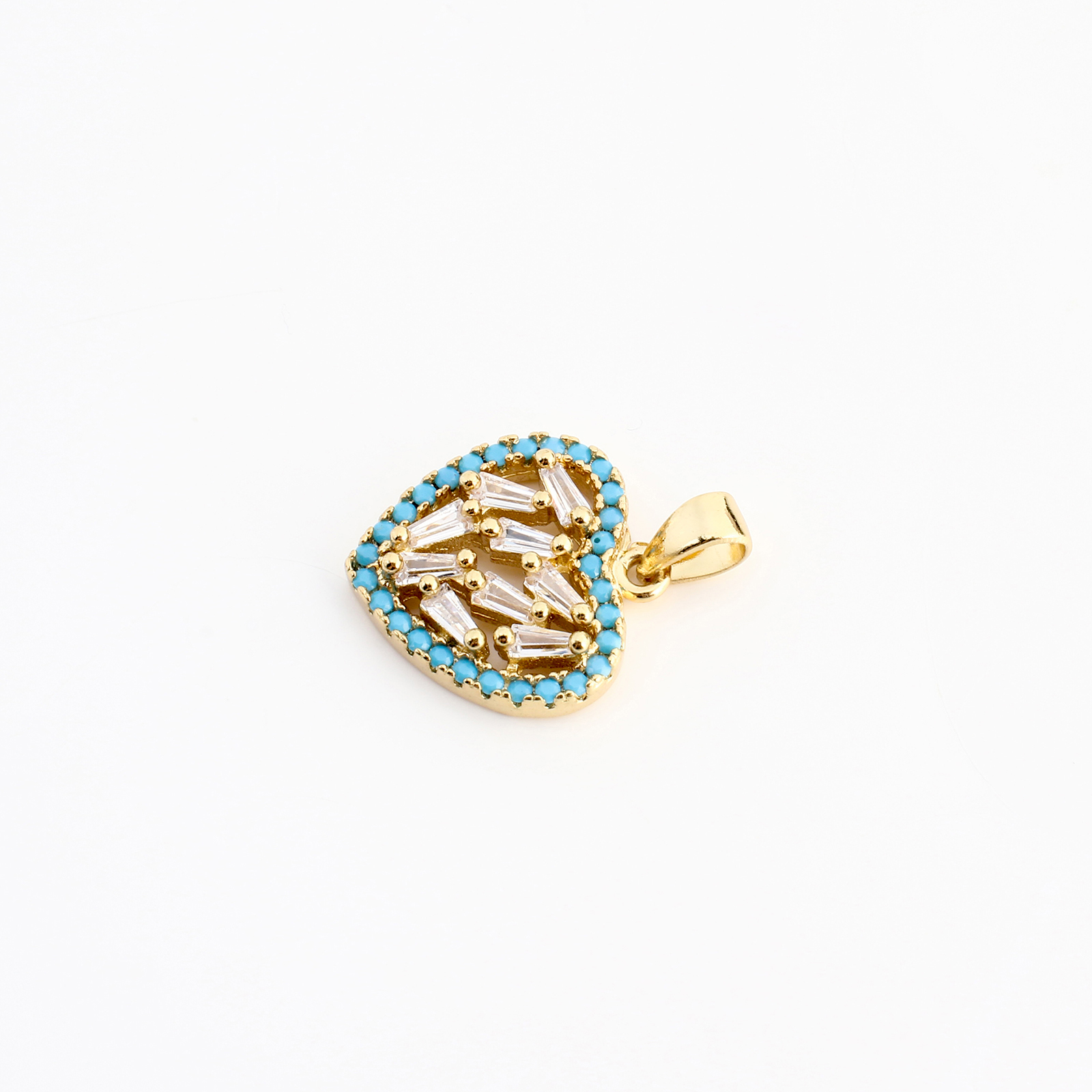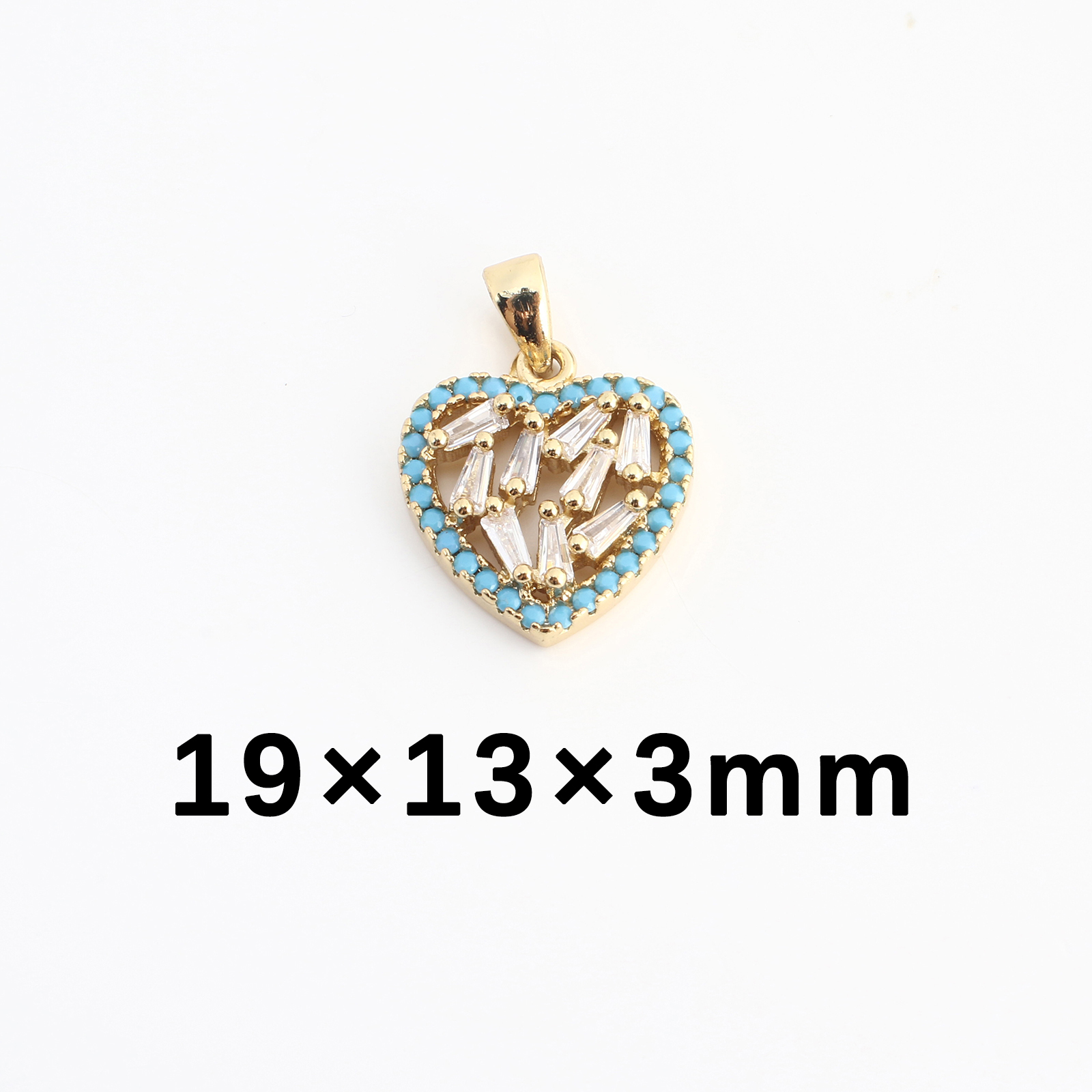 Cubique Pendentif en laiton zircon pavent, avec turquoise naturelle, coeur, DIY & pavé de micro zircon & creux, doré, 19x13x3mm, Vendu par PC