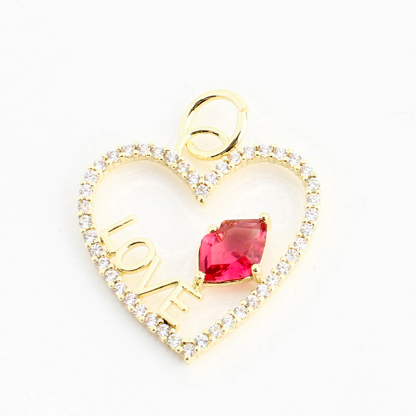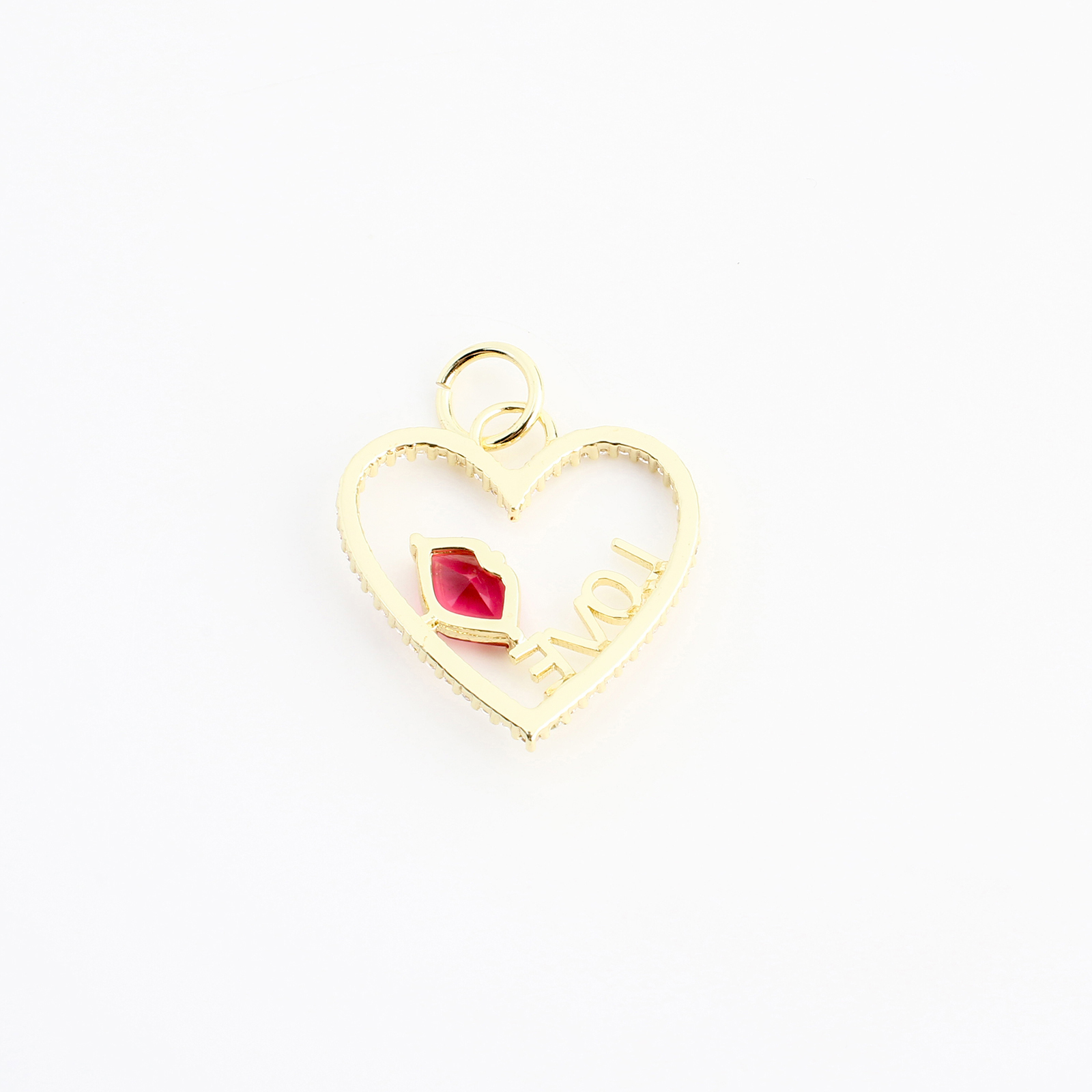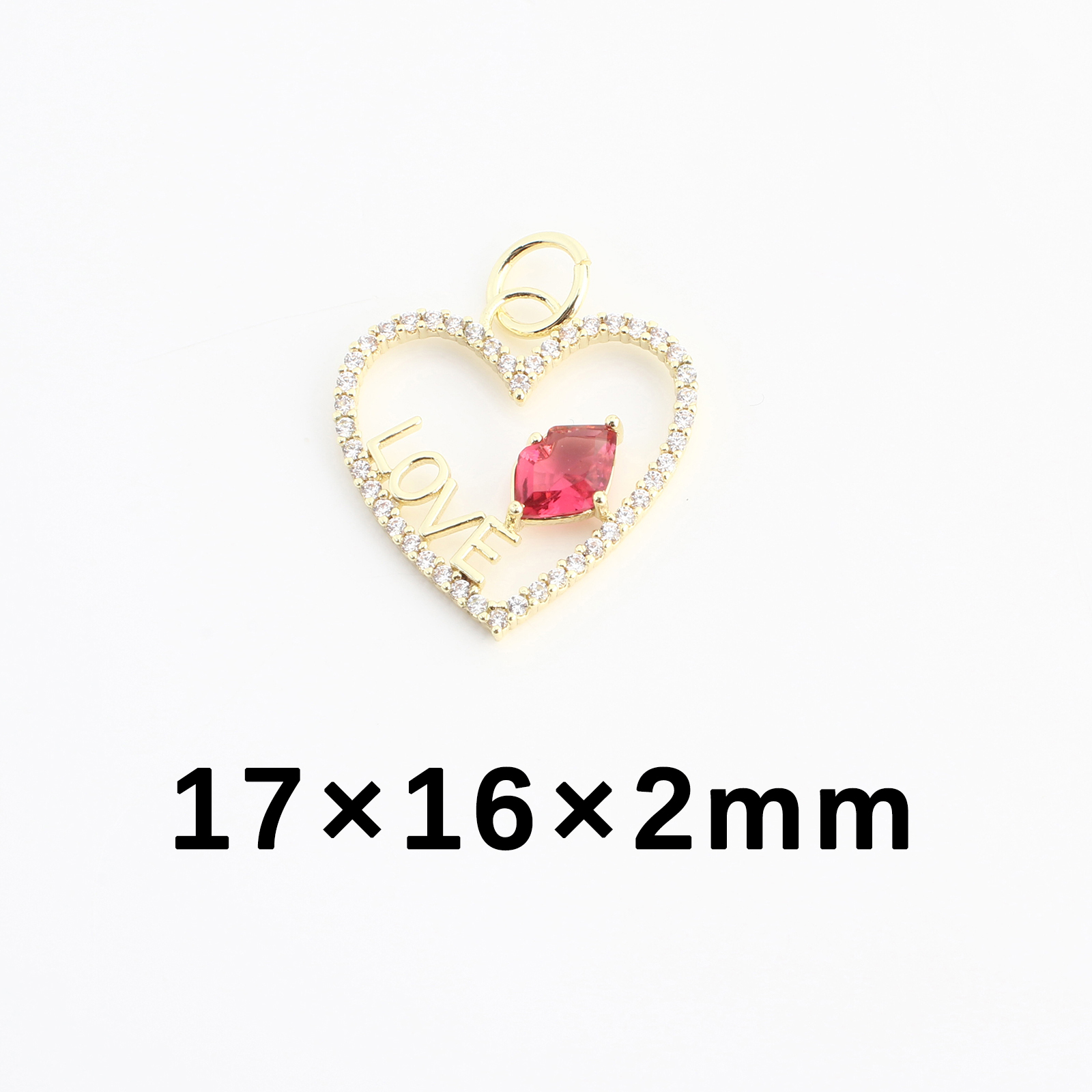 Cubique Pendentif en laiton zircon pavent, coeur, DIY & pavé de micro zircon & creux, doré, 17x16x2mm, Vendu par PC