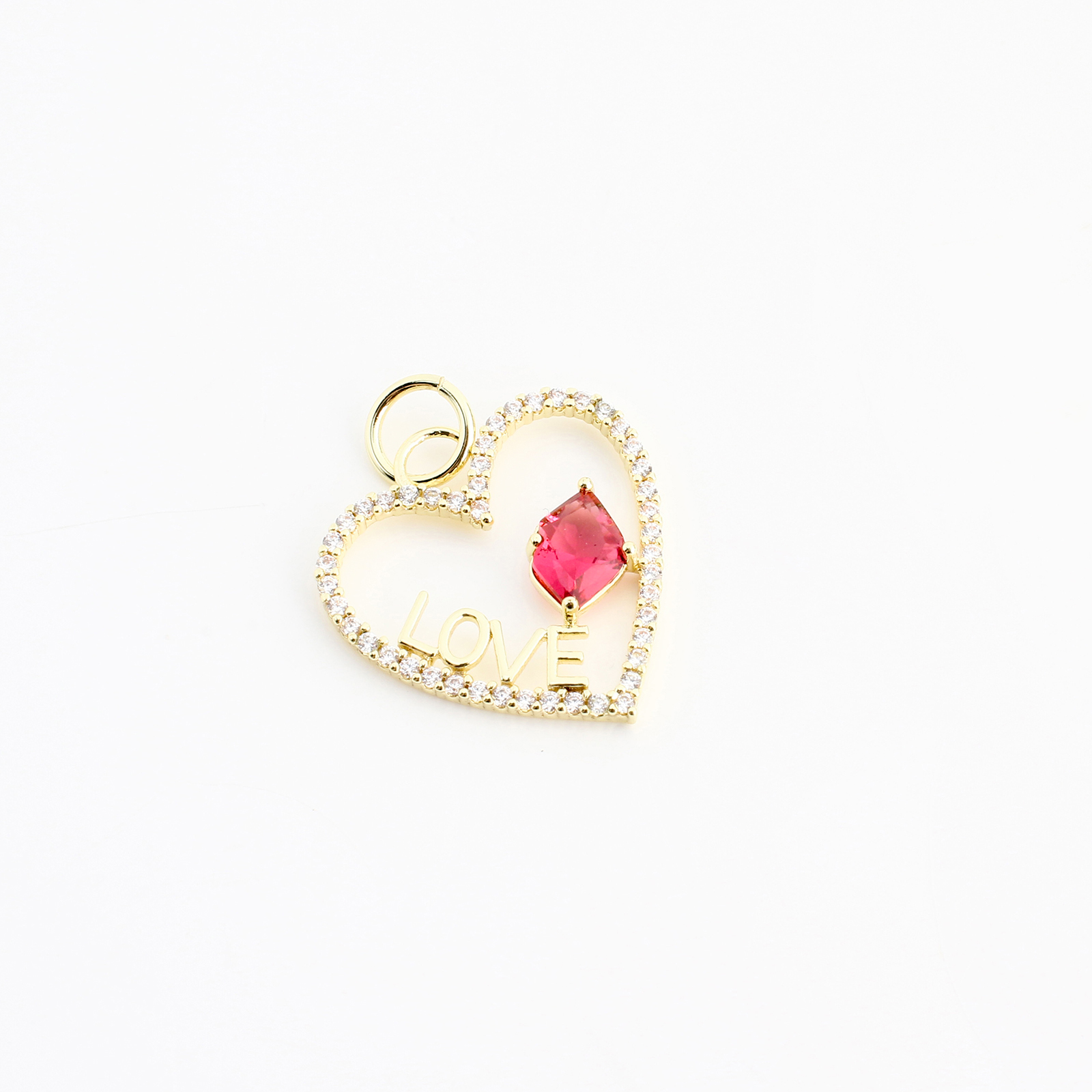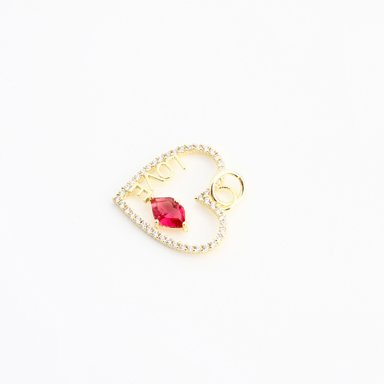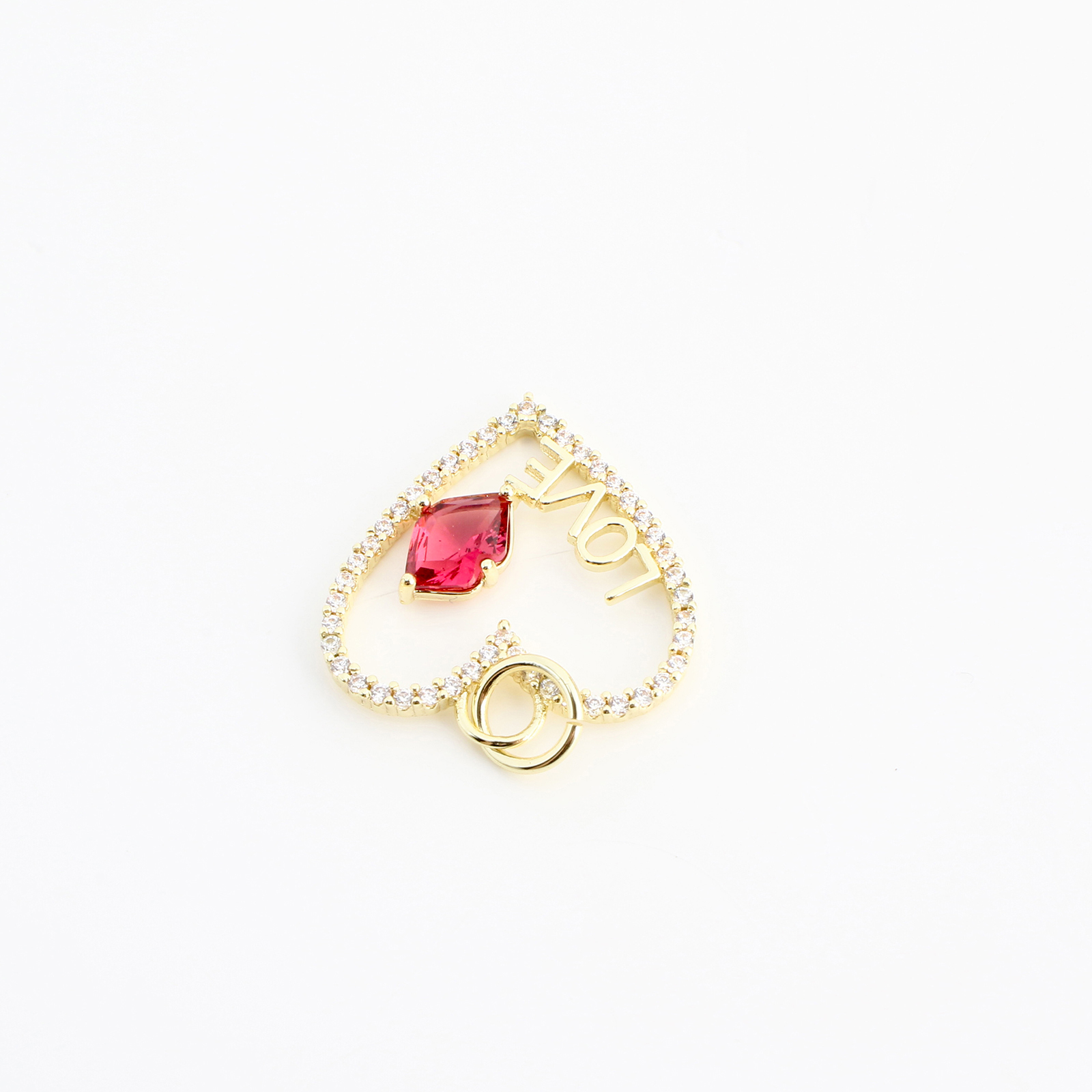 Cubique Pendentif en laiton zircon pavent, coeur, DIY & pavé de micro zircon & creux, doré, 17x16x2mm, Vendu par PC