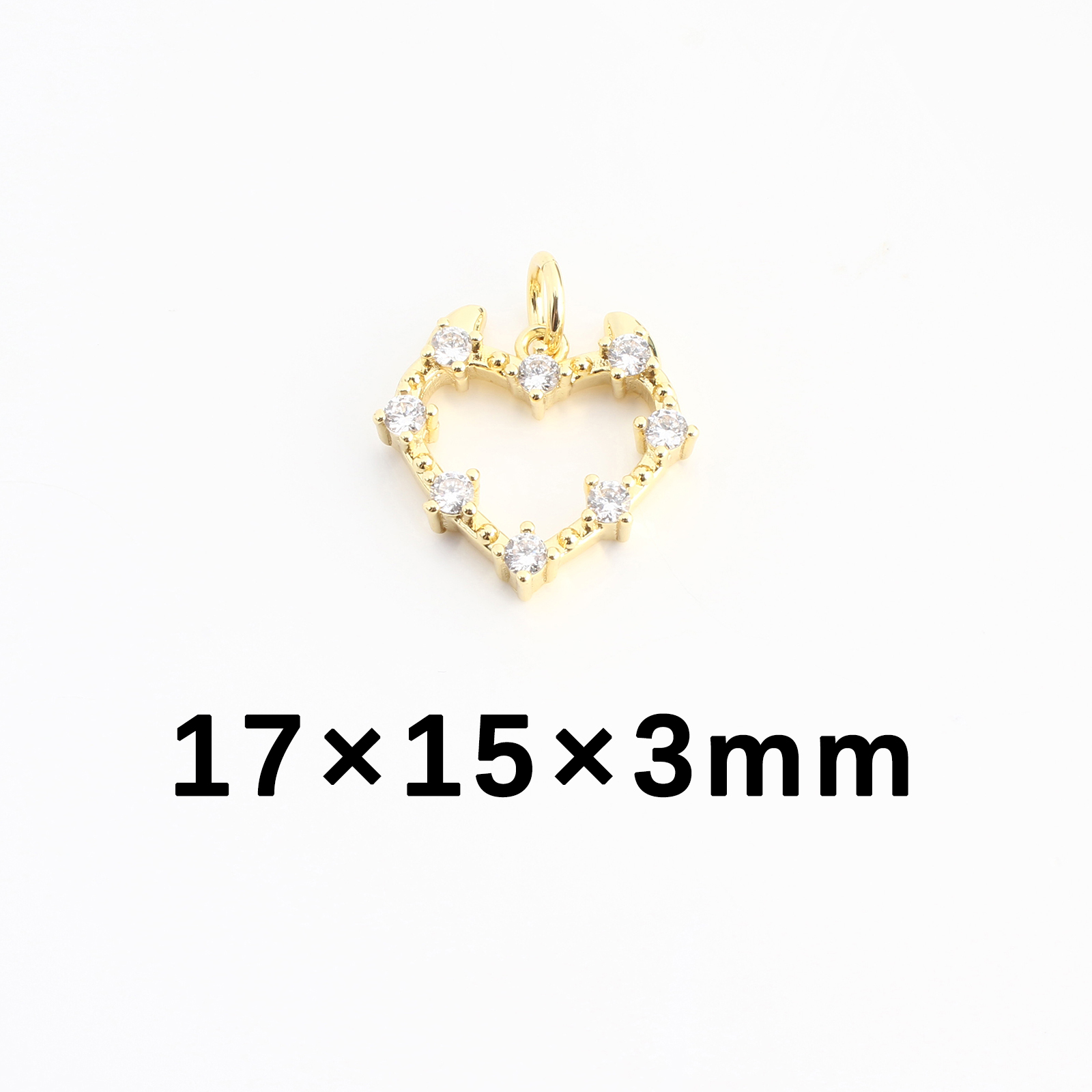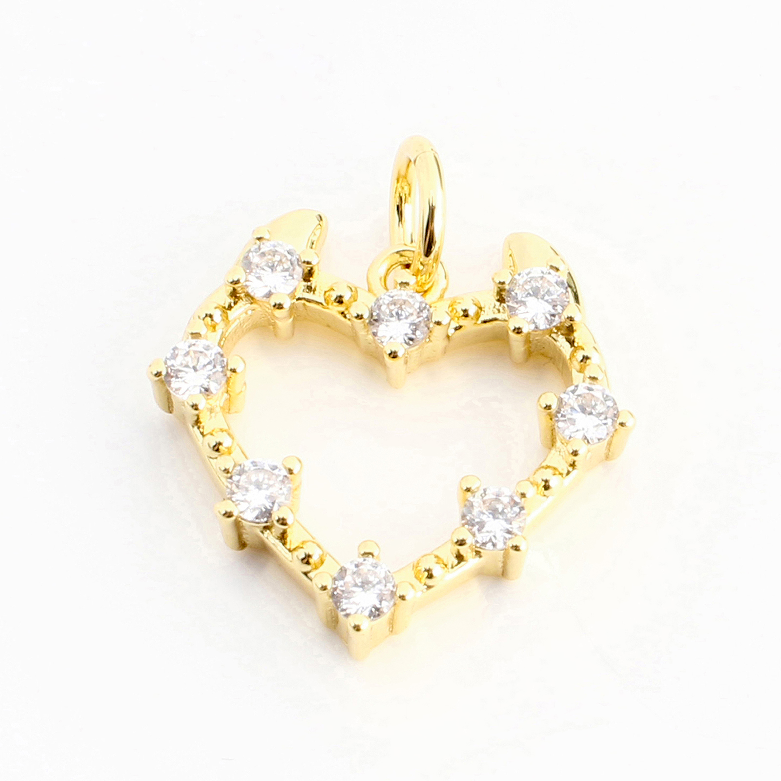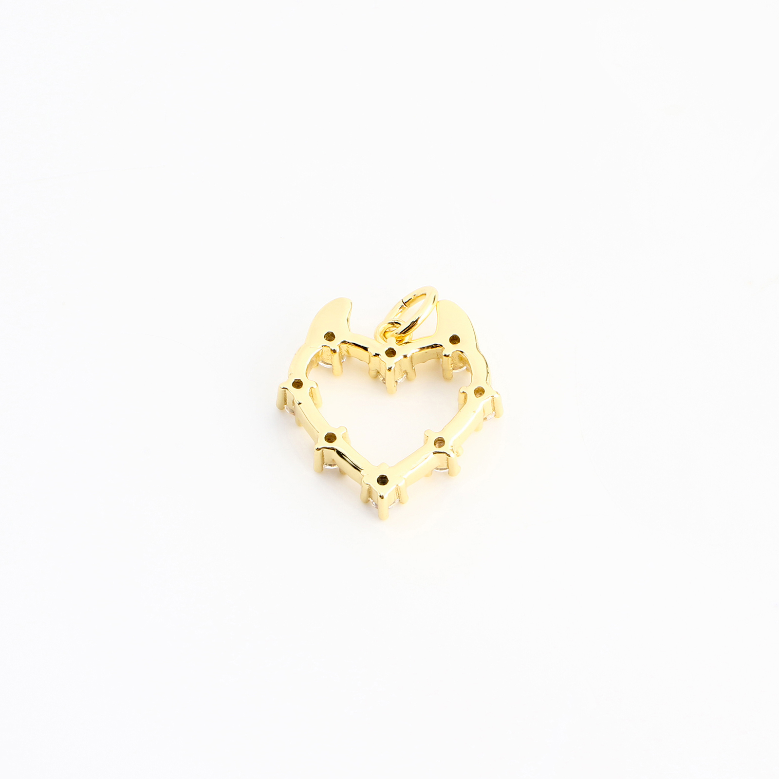 Cubique Pendentif en laiton zircon pavent, coeur, DIY & pavé de micro zircon & creux, doré, 17x15x3mm, Vendu par PC