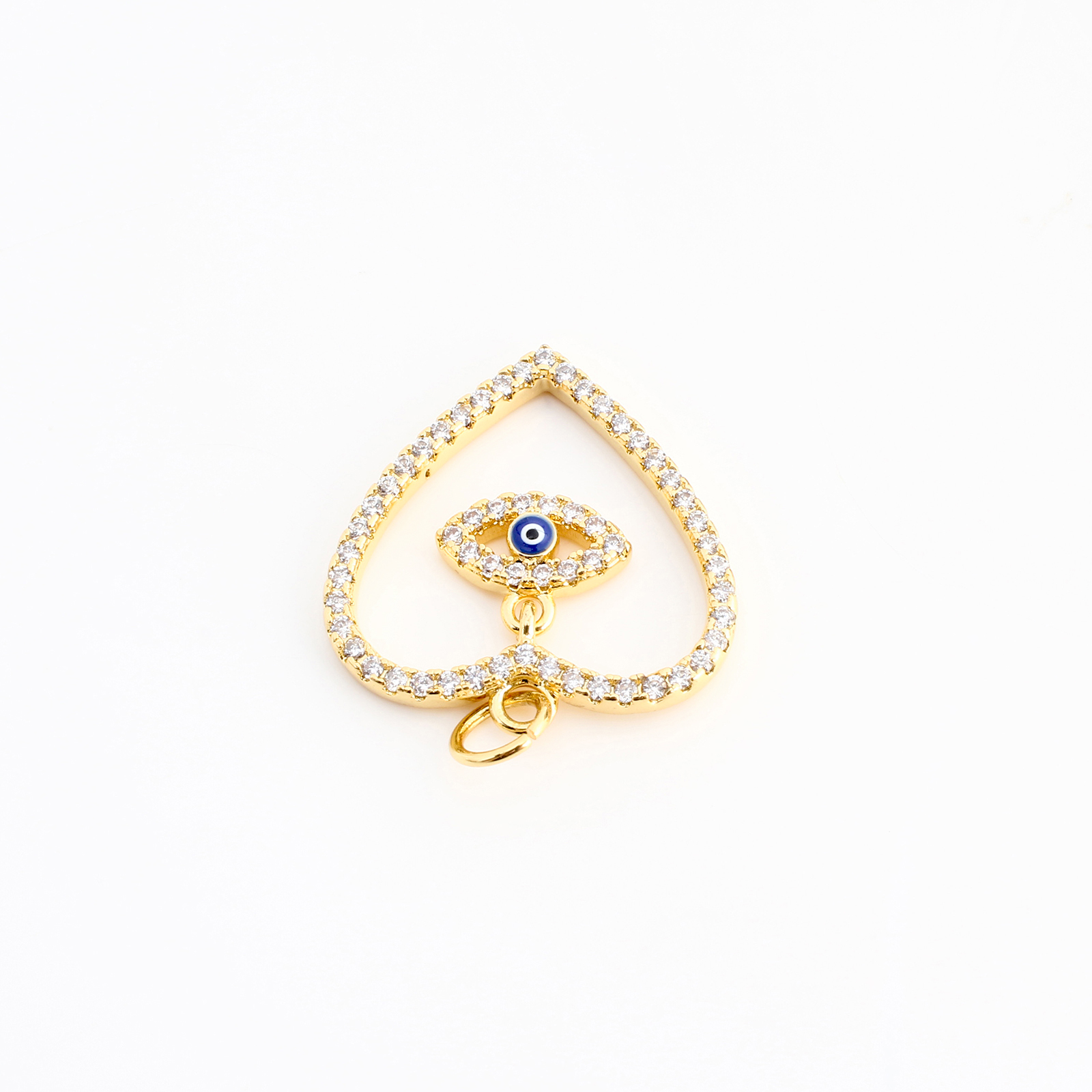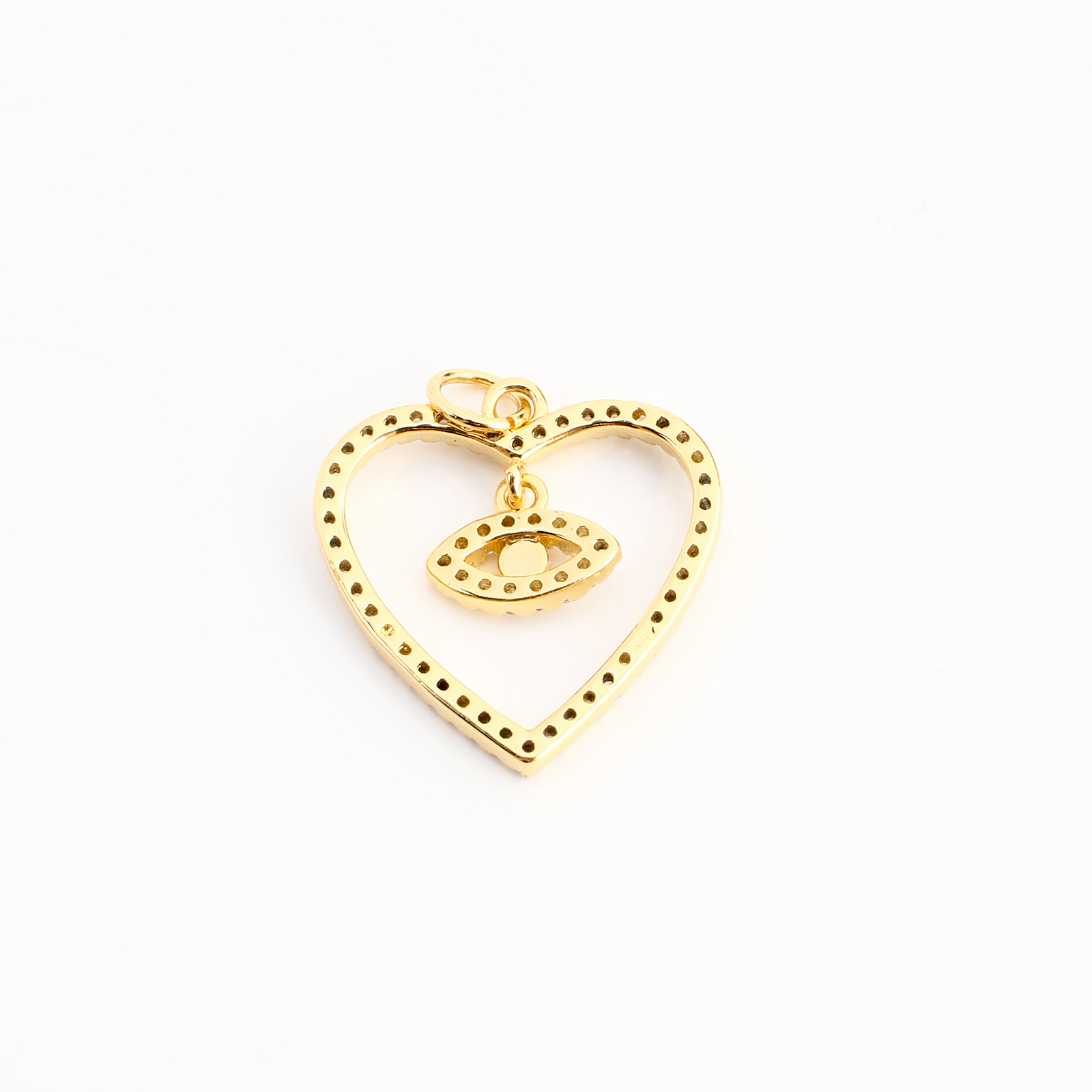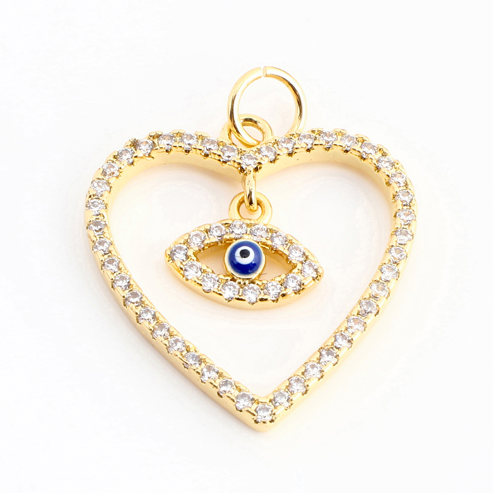 Cubique Pendentif en laiton zircon pavent, coeur, DIY & pavé de micro zircon & émail & creux, doré, 20x19x3mm, Vendu par PC