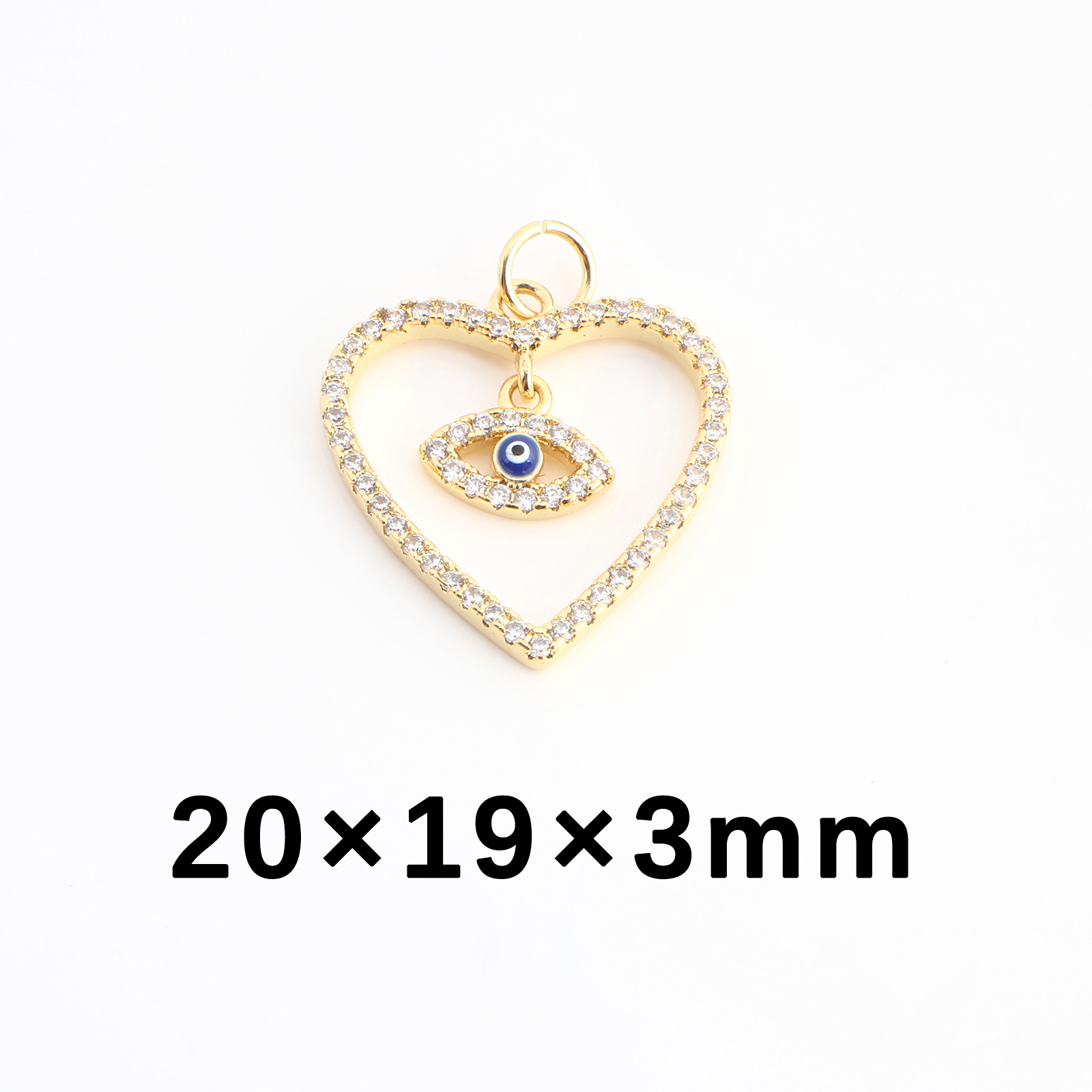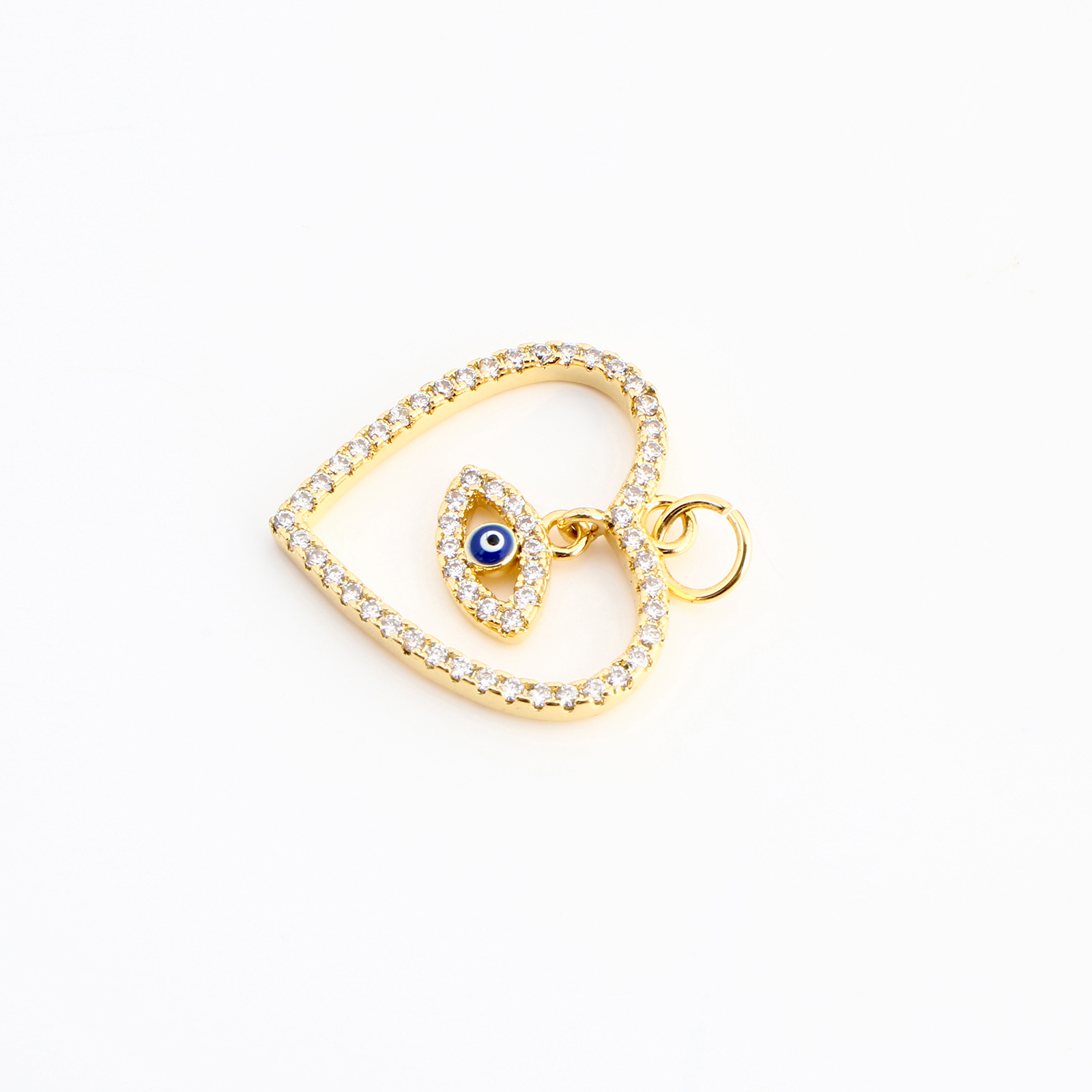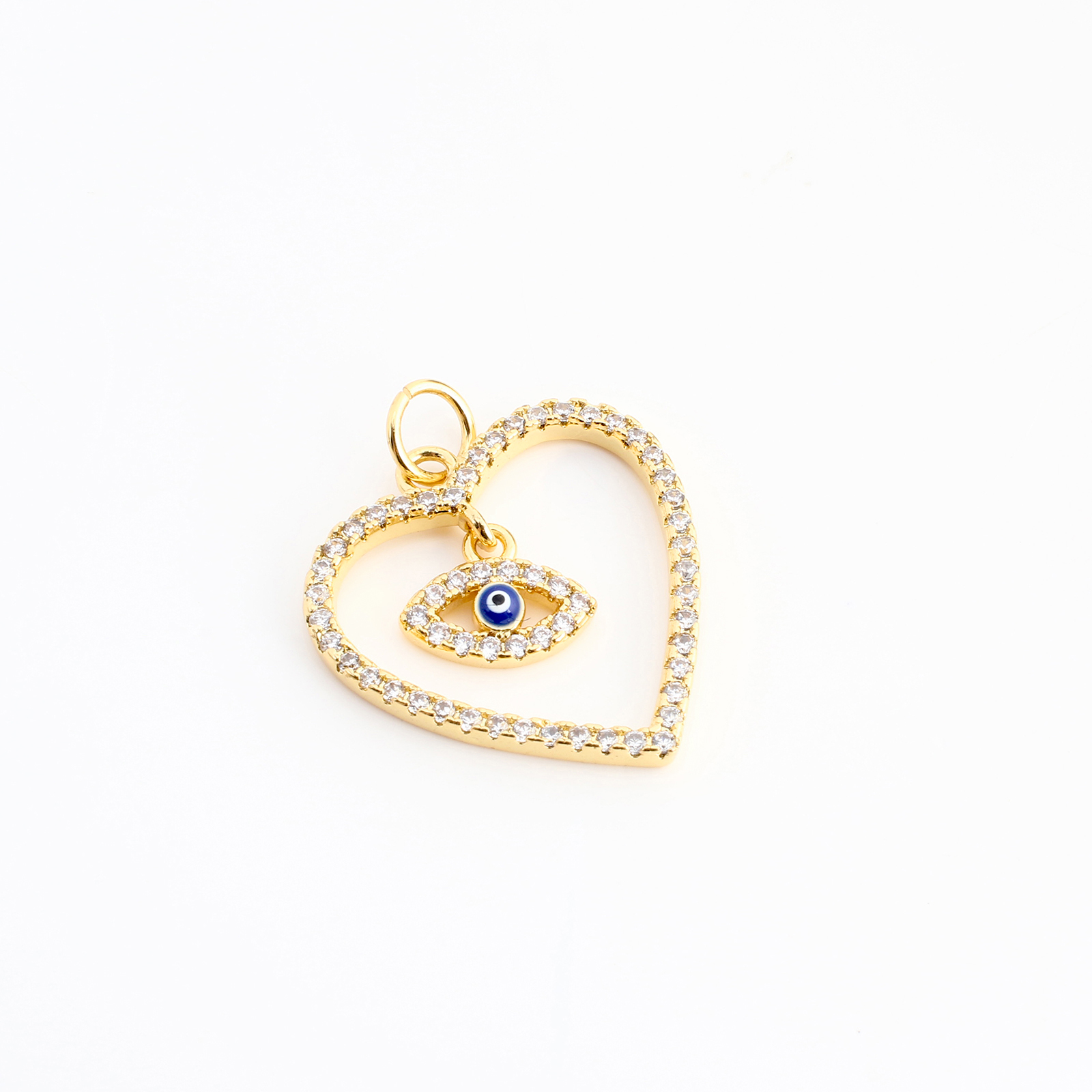 Cubique Pendentif en laiton zircon pavent, coeur, DIY & pavé de micro zircon & émail & creux, doré, 20x19x3mm, Vendu par PC