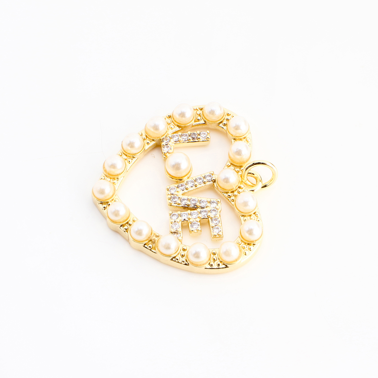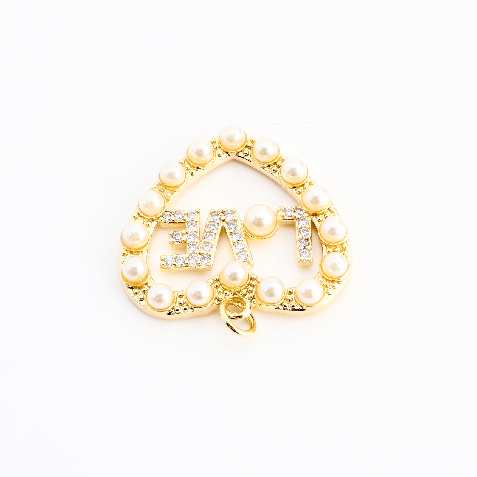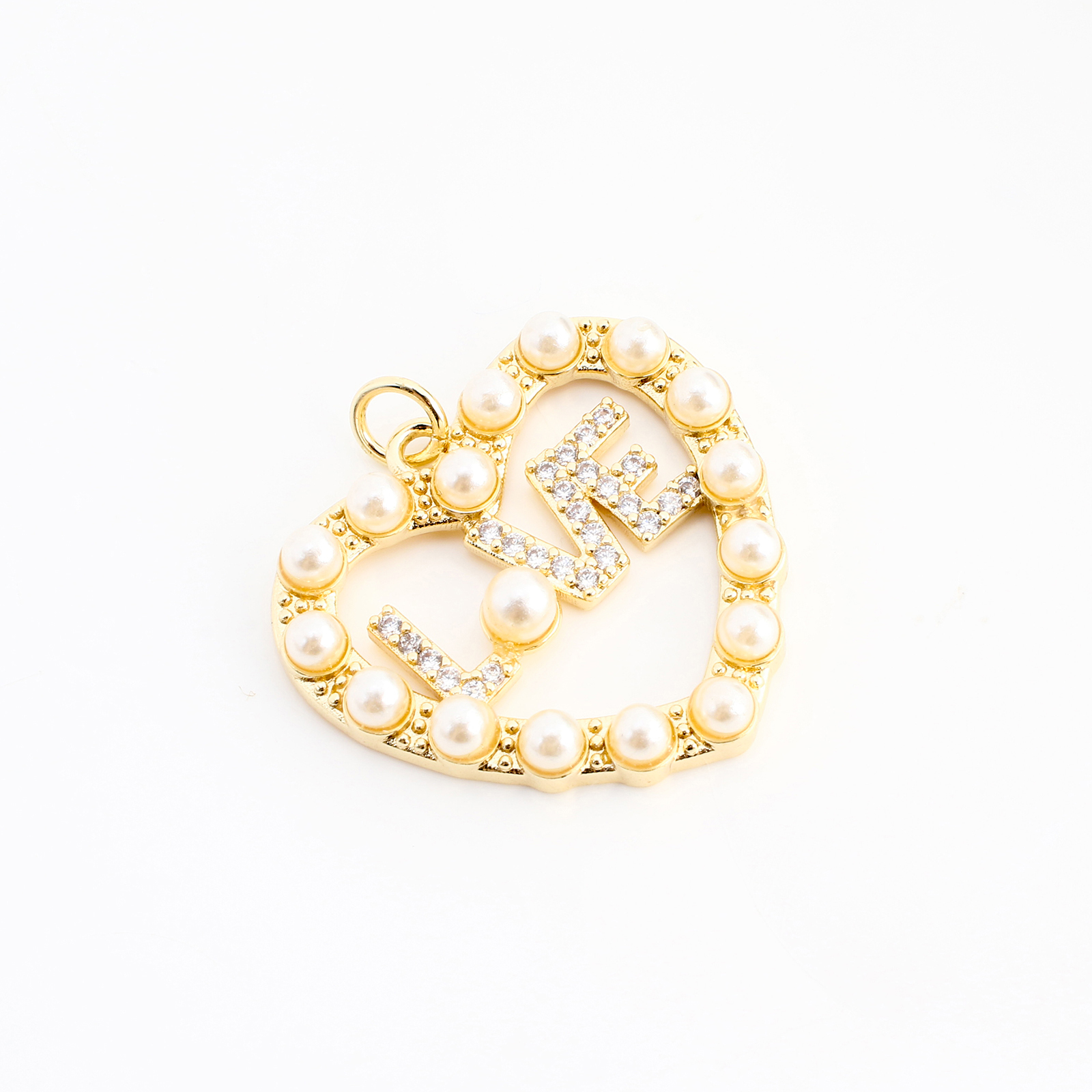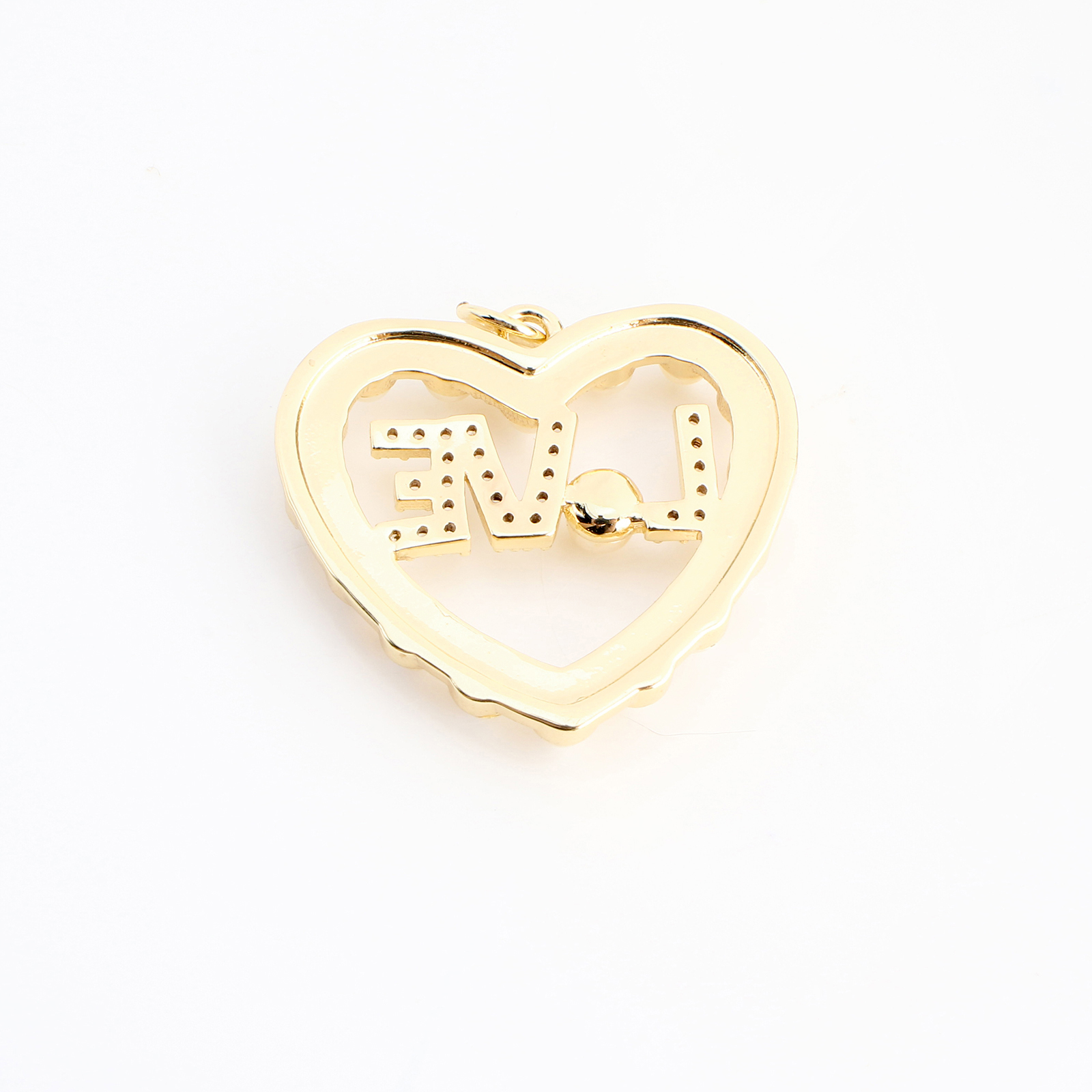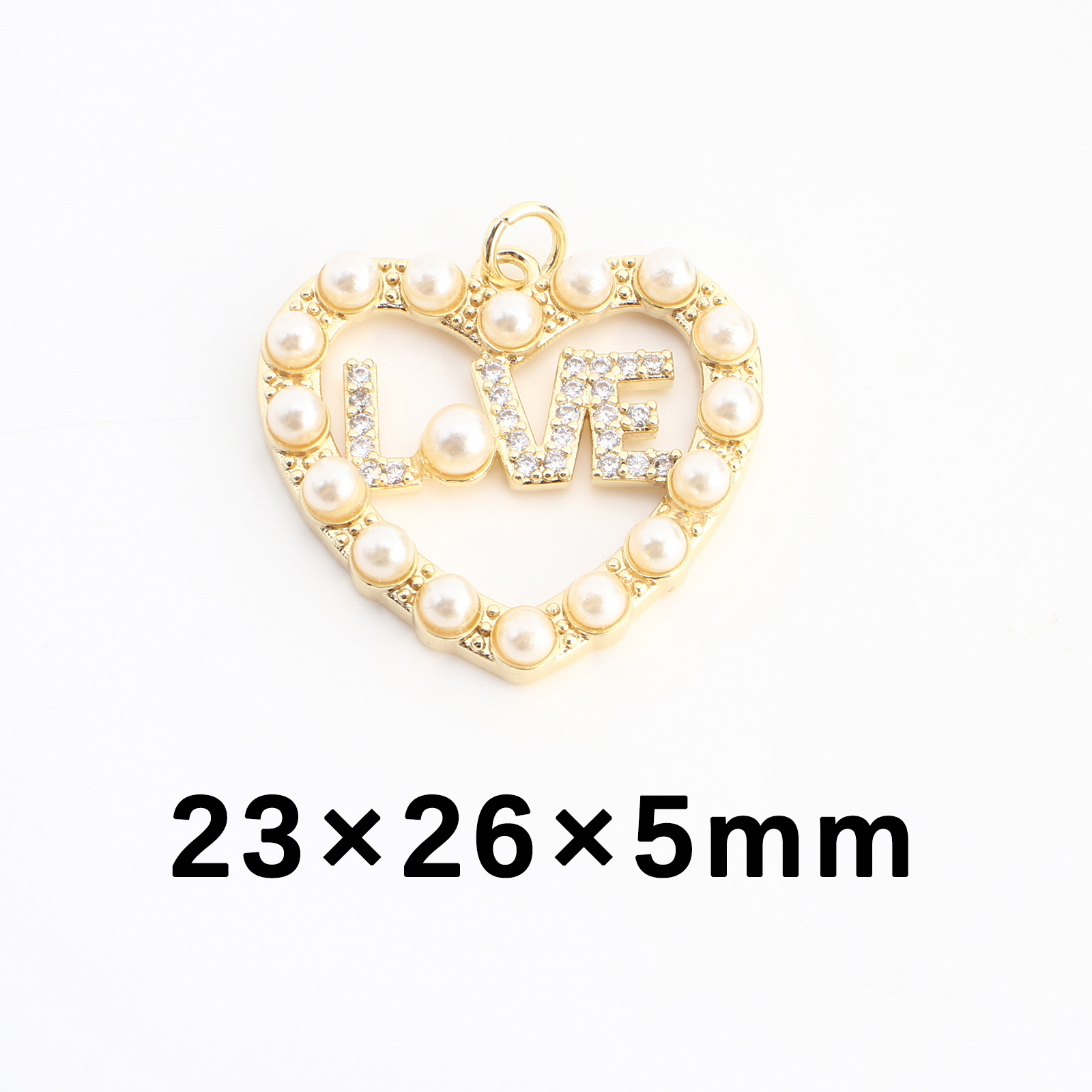 Cubique Pendentif en laiton zircon pavent, avec perle de plastique, coeur, DIY & pavé de micro zircon & creux, doré, 23x26x5mm, Vendu par PC