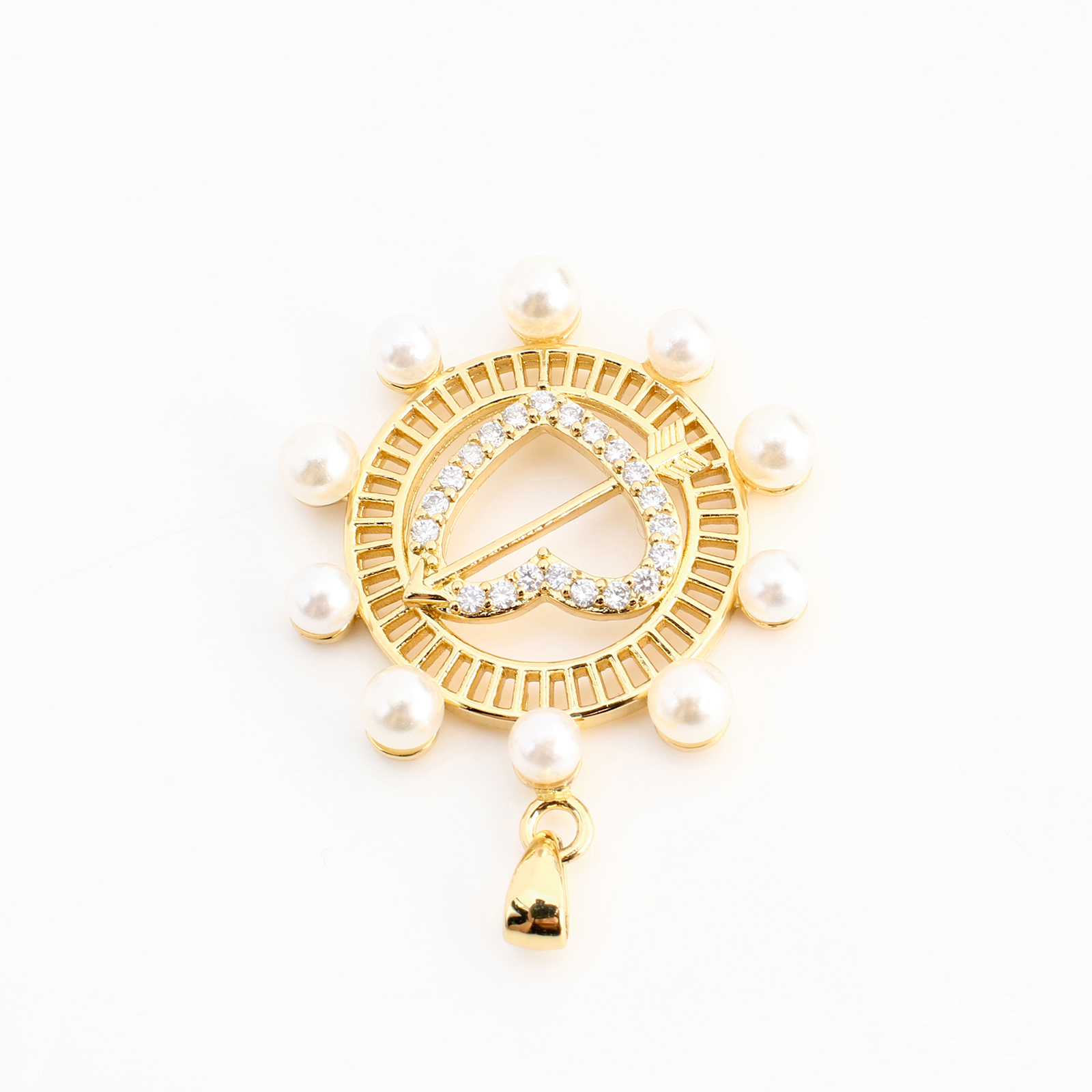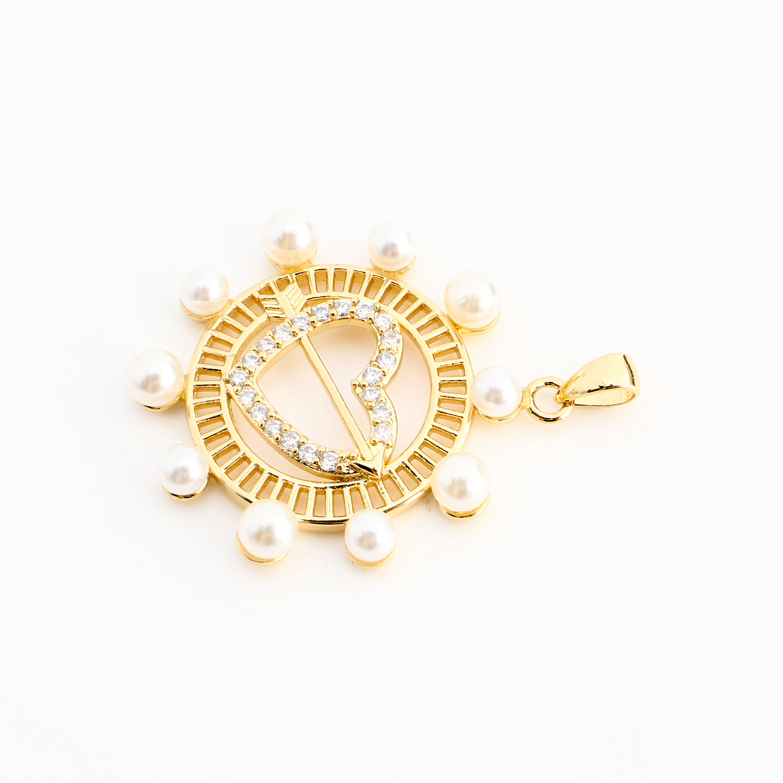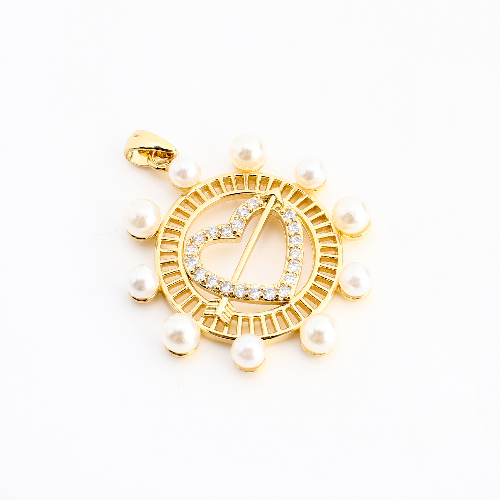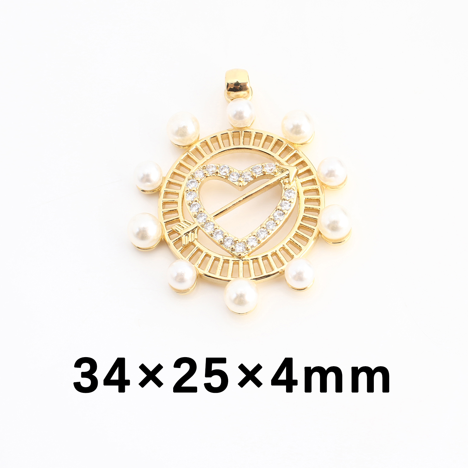 Cubique Pendentif en laiton zircon pavent, avec perle de plastique, Rond, DIY & pavé de micro zircon & creux, doré, 34x25x4mm, Vendu par PC