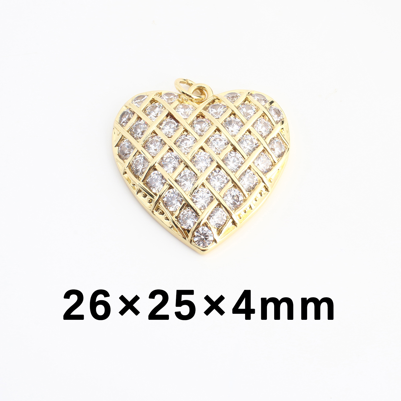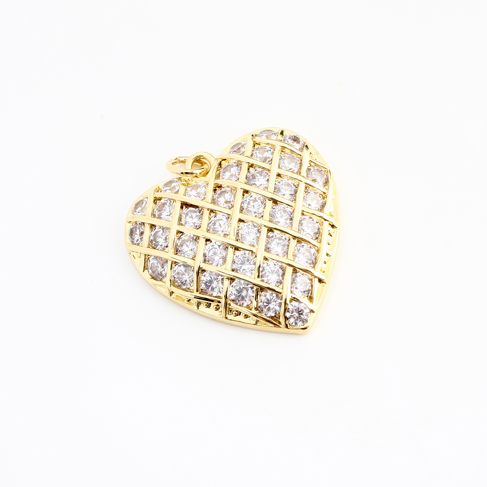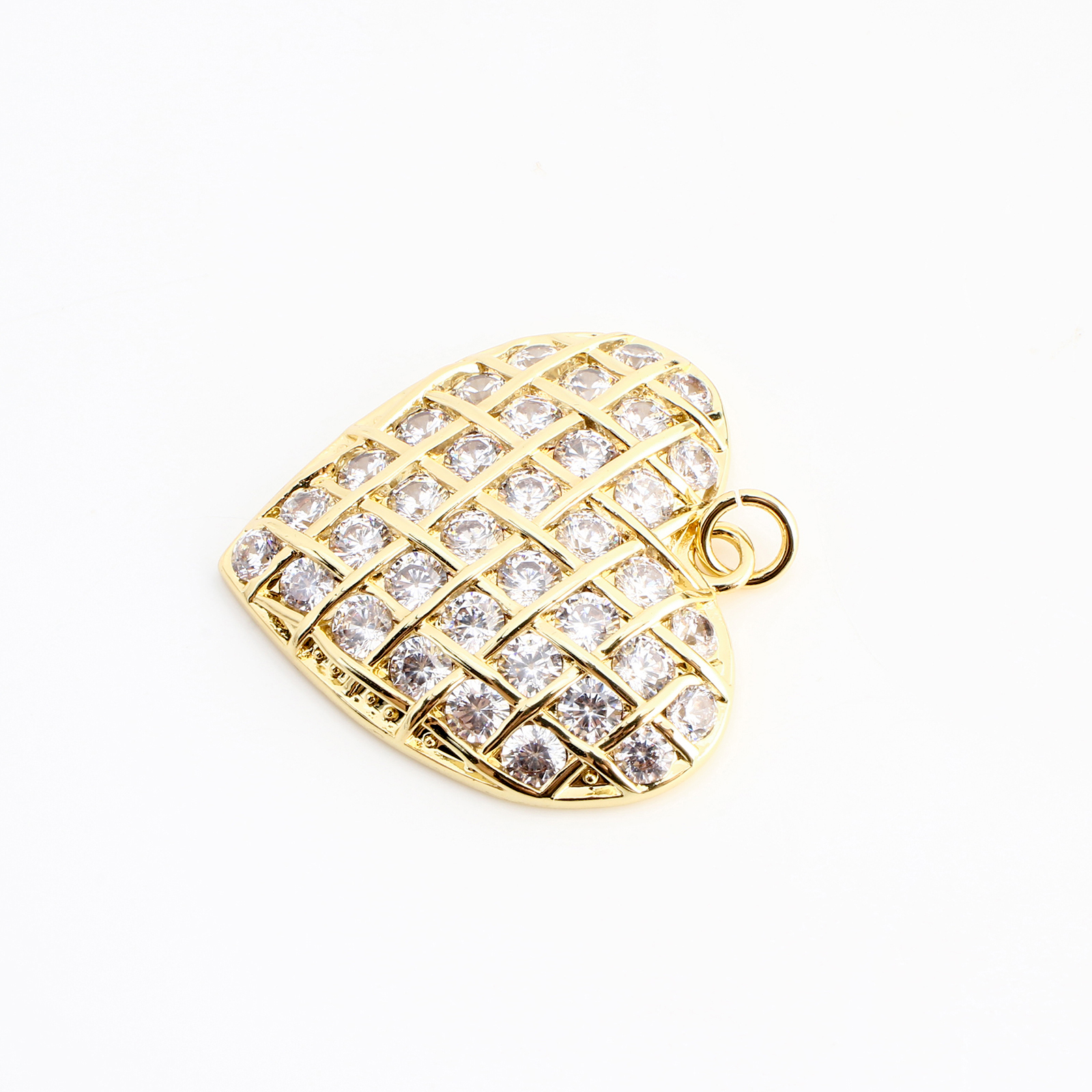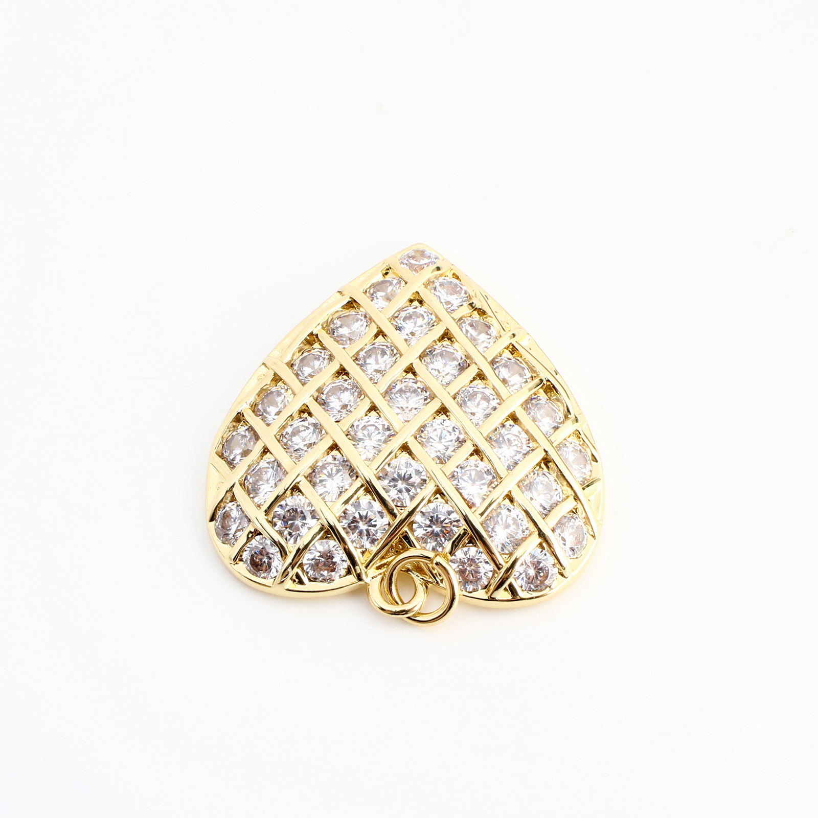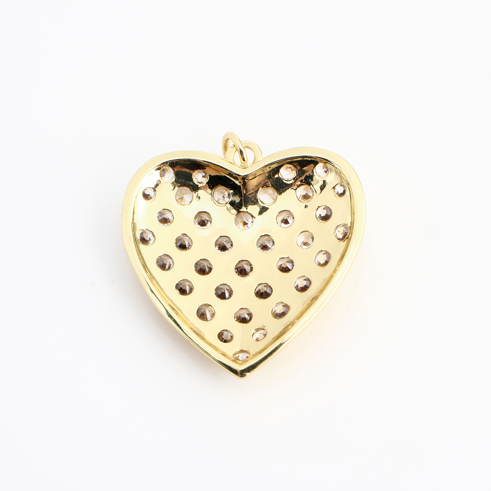 Cubique Pendentif en laiton zircon pavent, coeur, DIY & pavé de micro zircon, doré, 26x25x4mm, Vendu par PC