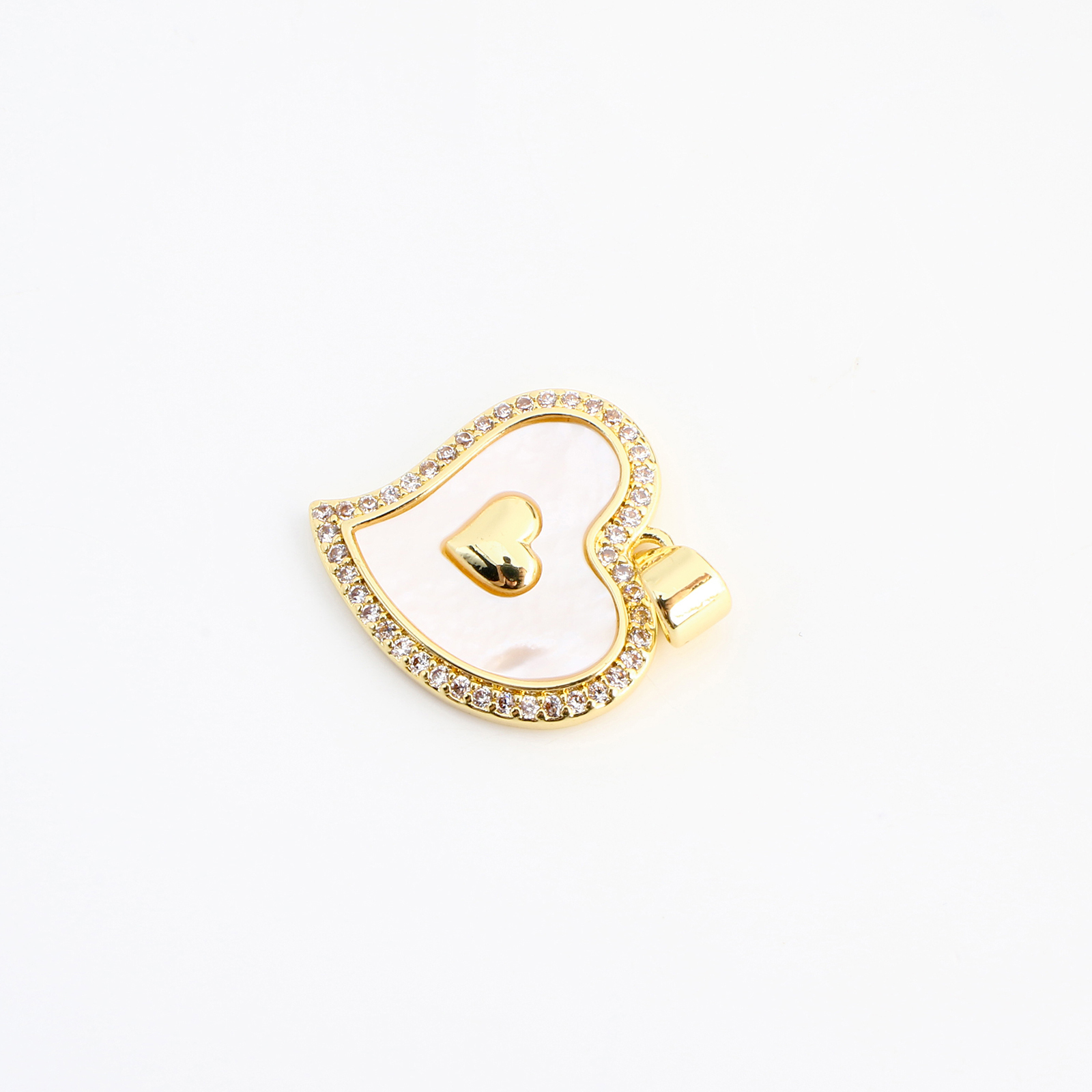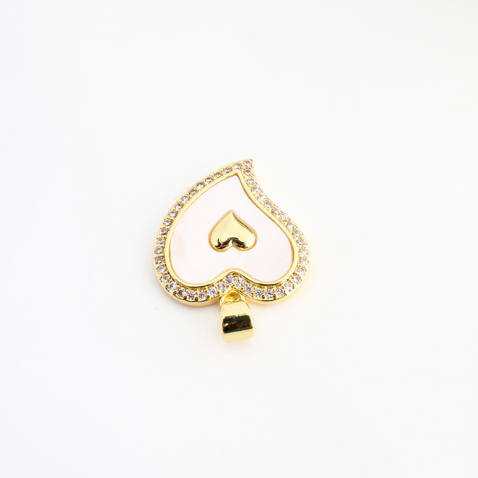Cubique Pendentif en laiton zircon pavent, avec coquille blanche, coeur, DIY & pavé de micro zircon, doré, 24x18x4mm, Vendu par PC