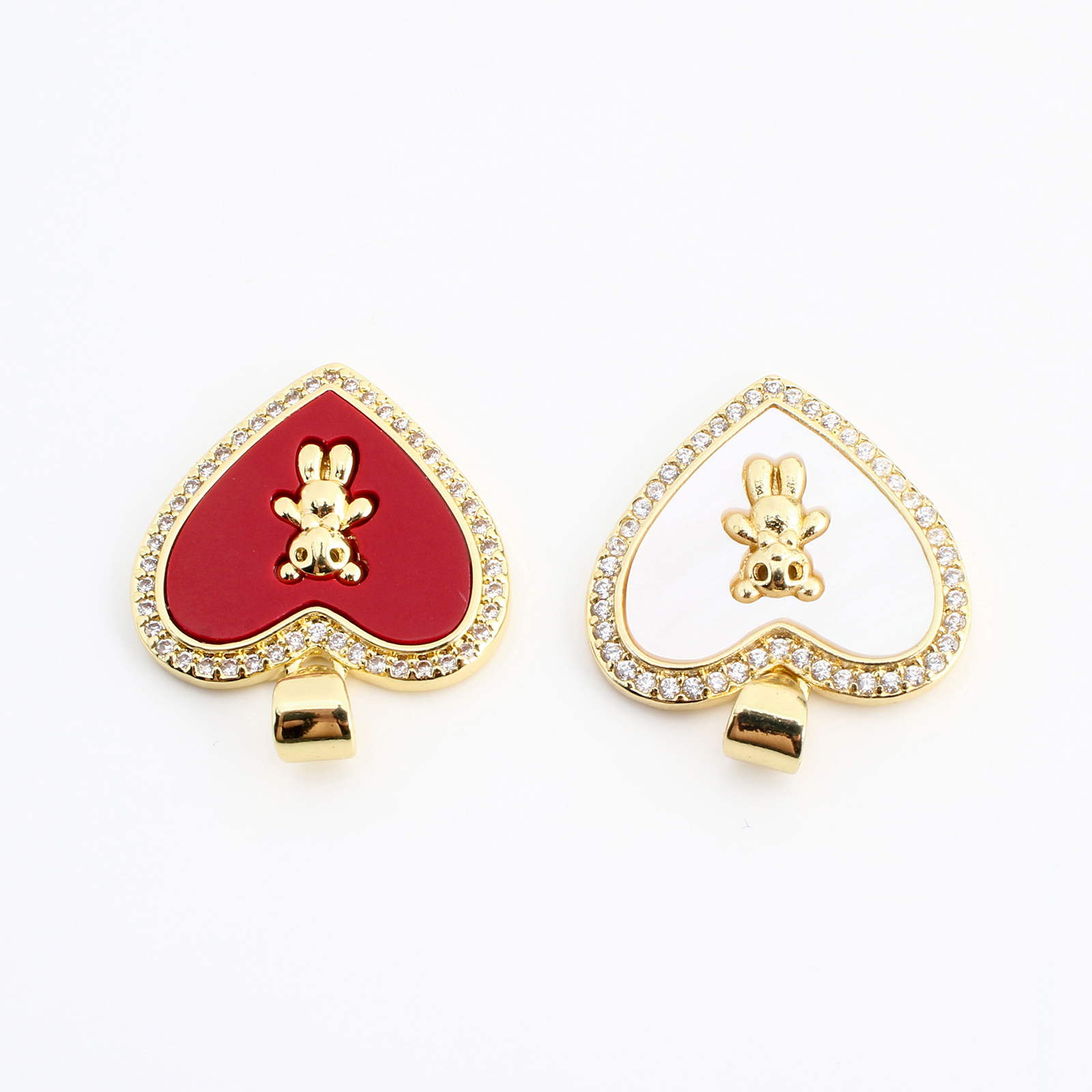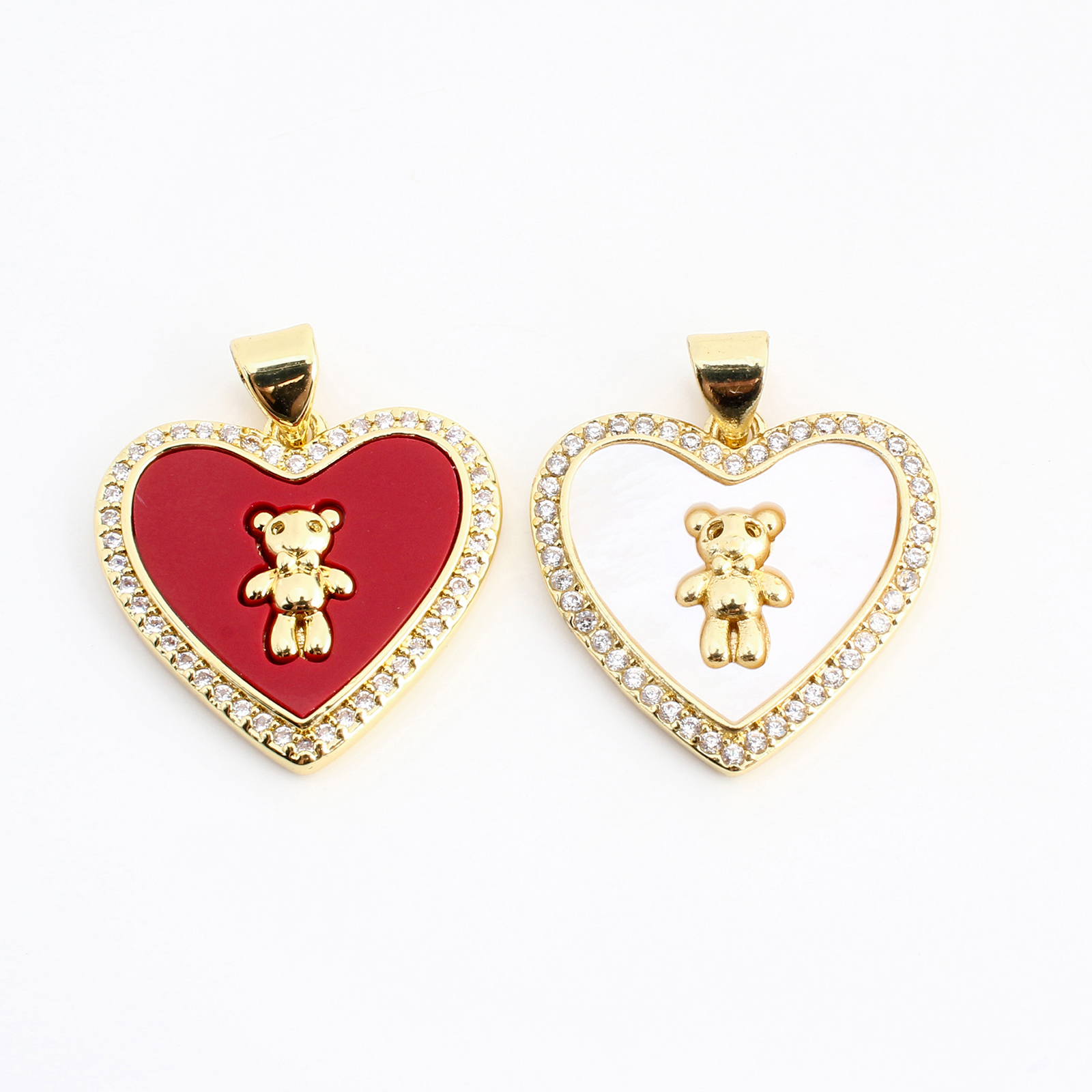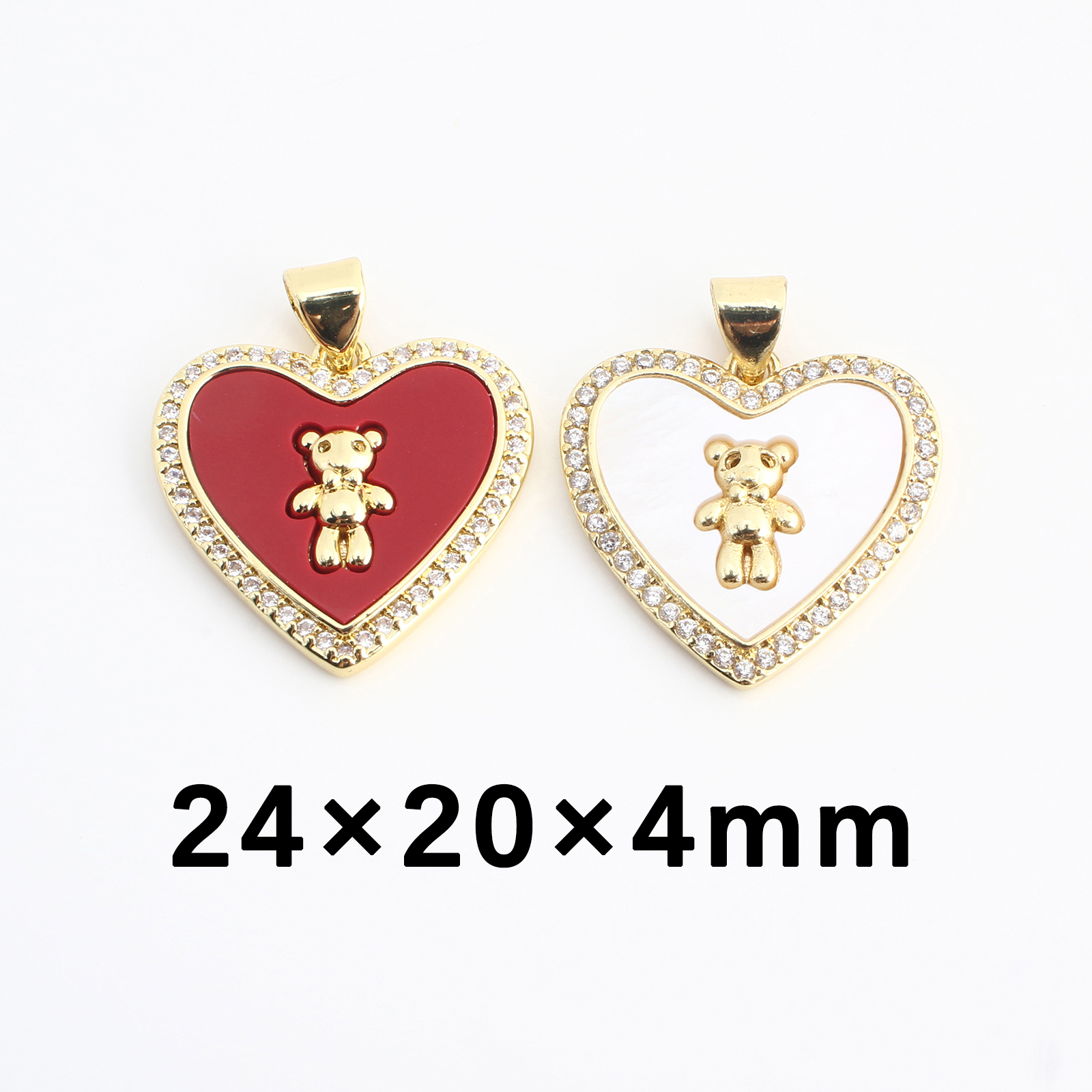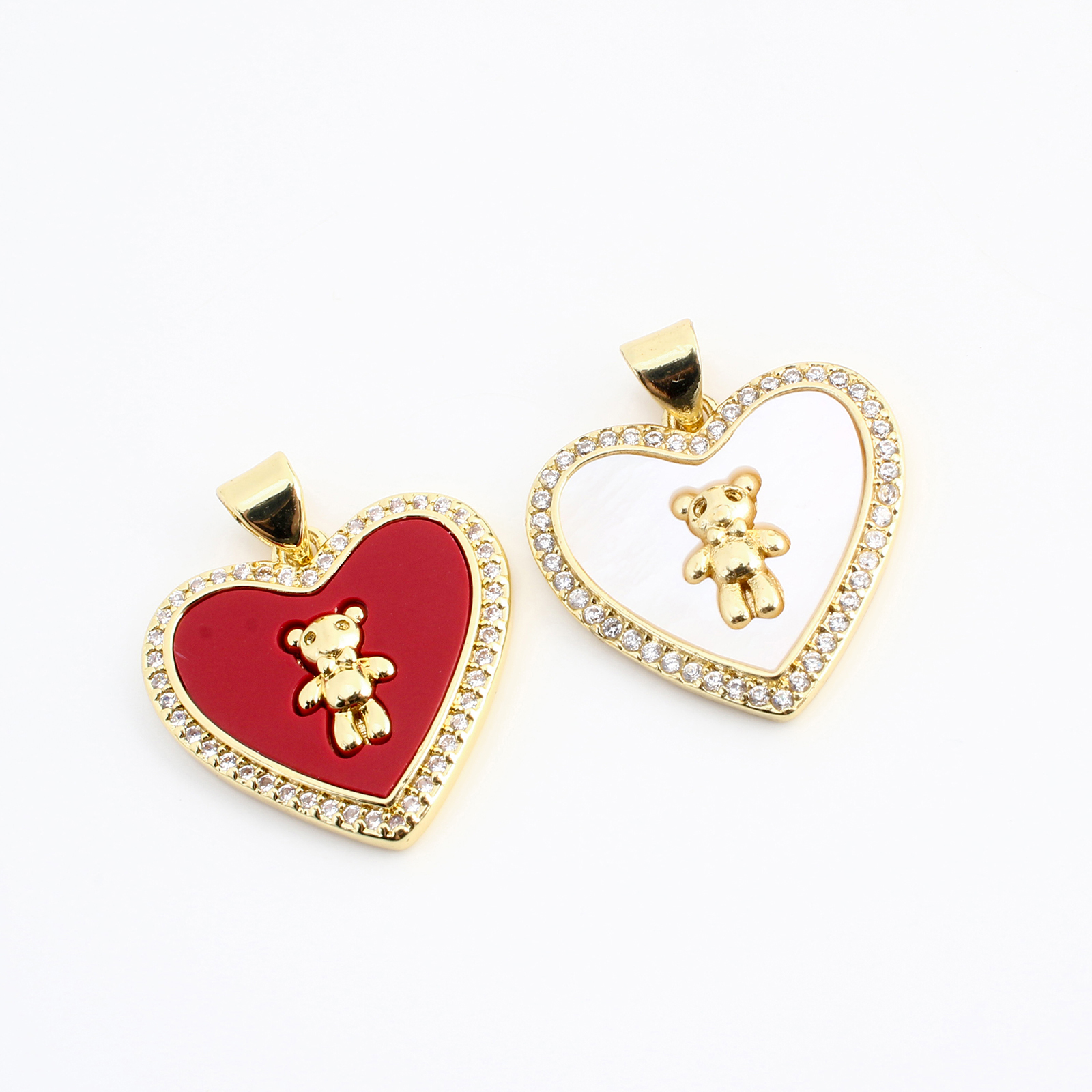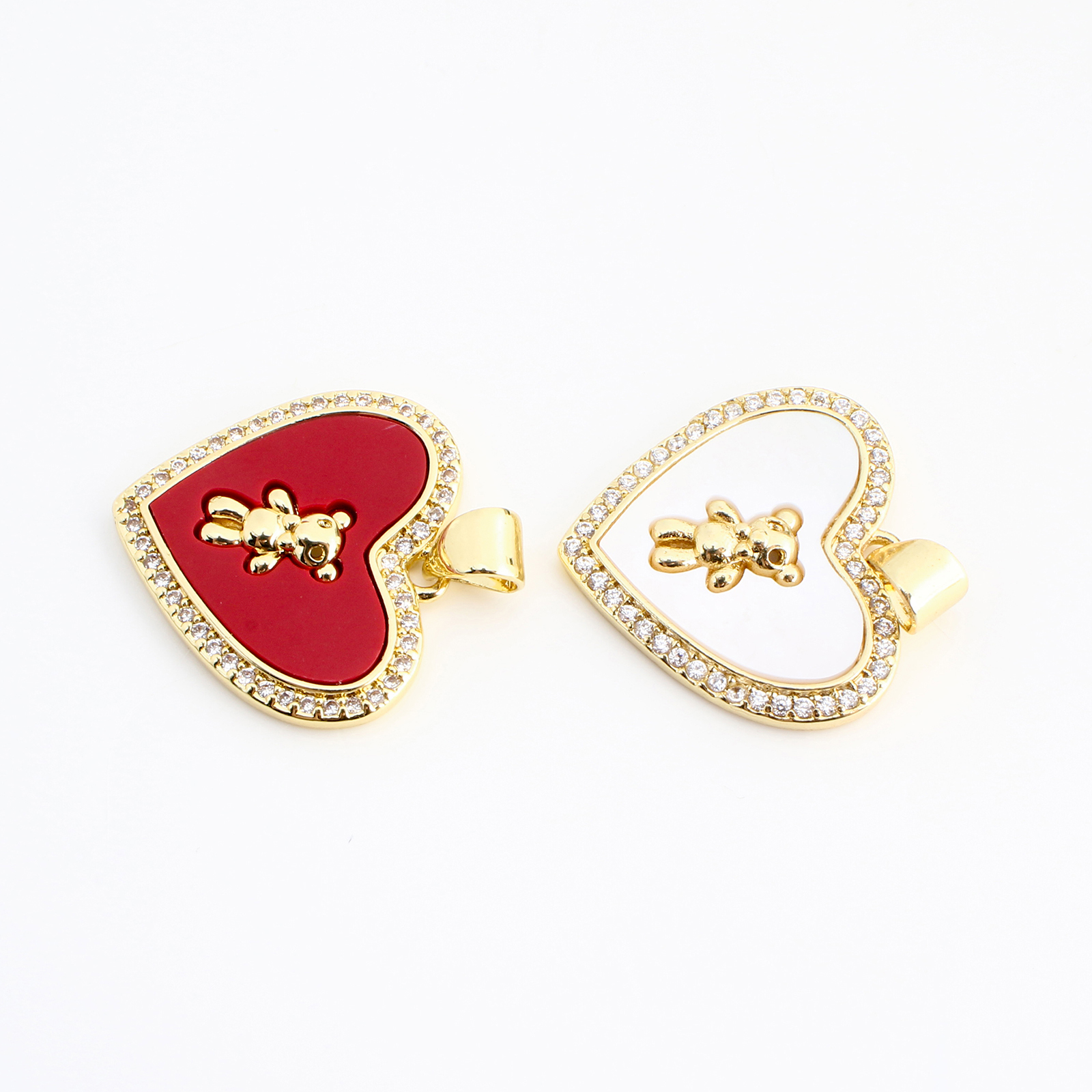 Cubique Pendentif en laiton zircon pavent, avec Acrylique, coeur, Placage de couleur d'or, DIY & pavé de micro zircon, plus de couleurs à choisir, 24x20x4mm, Vendu par PC