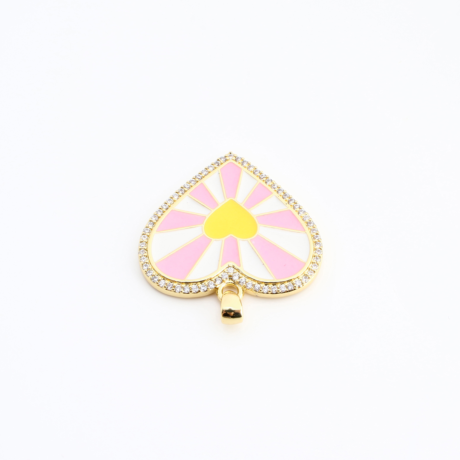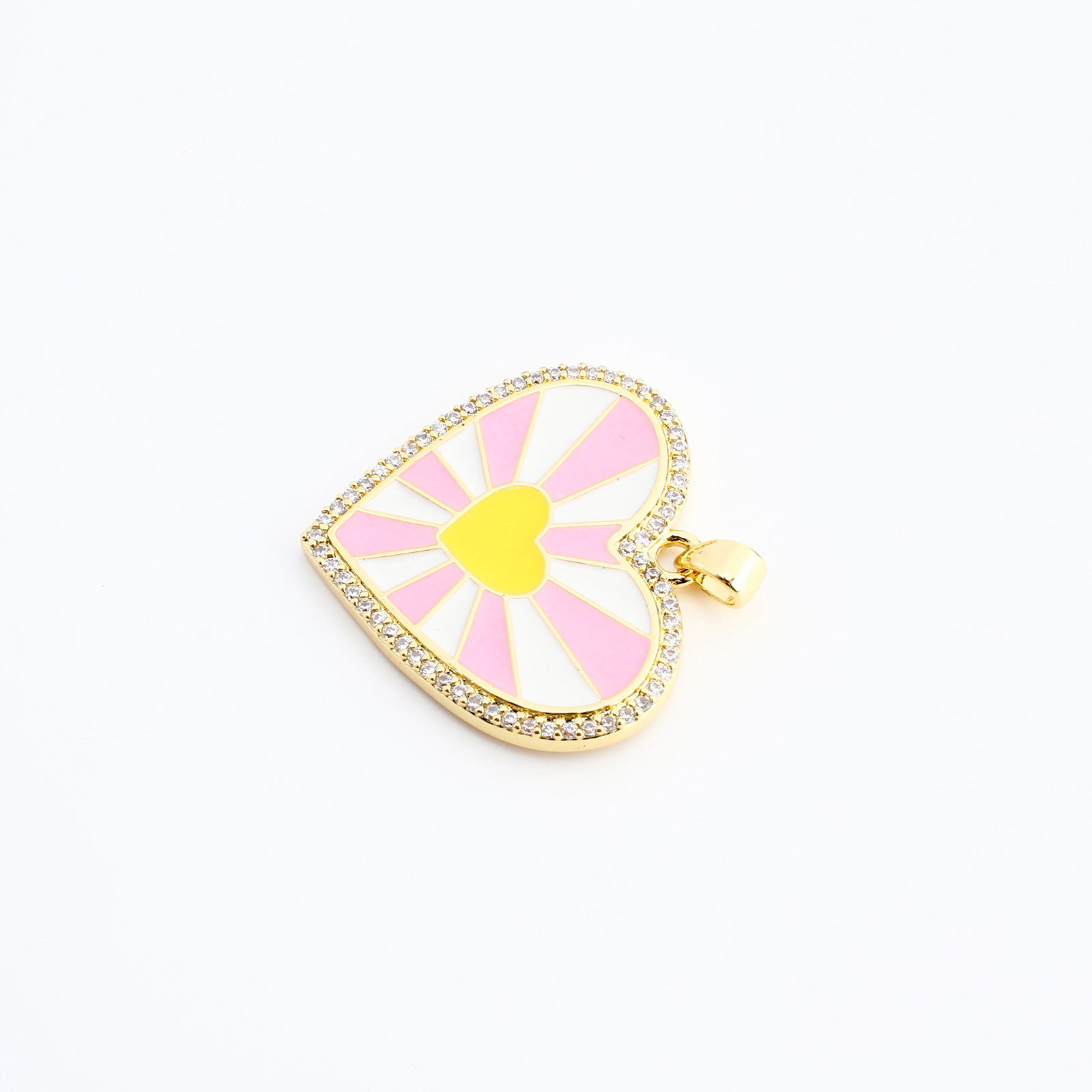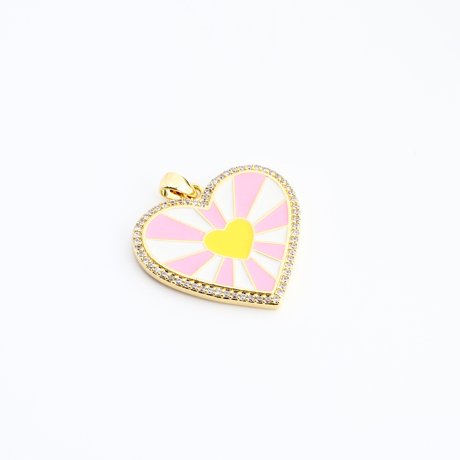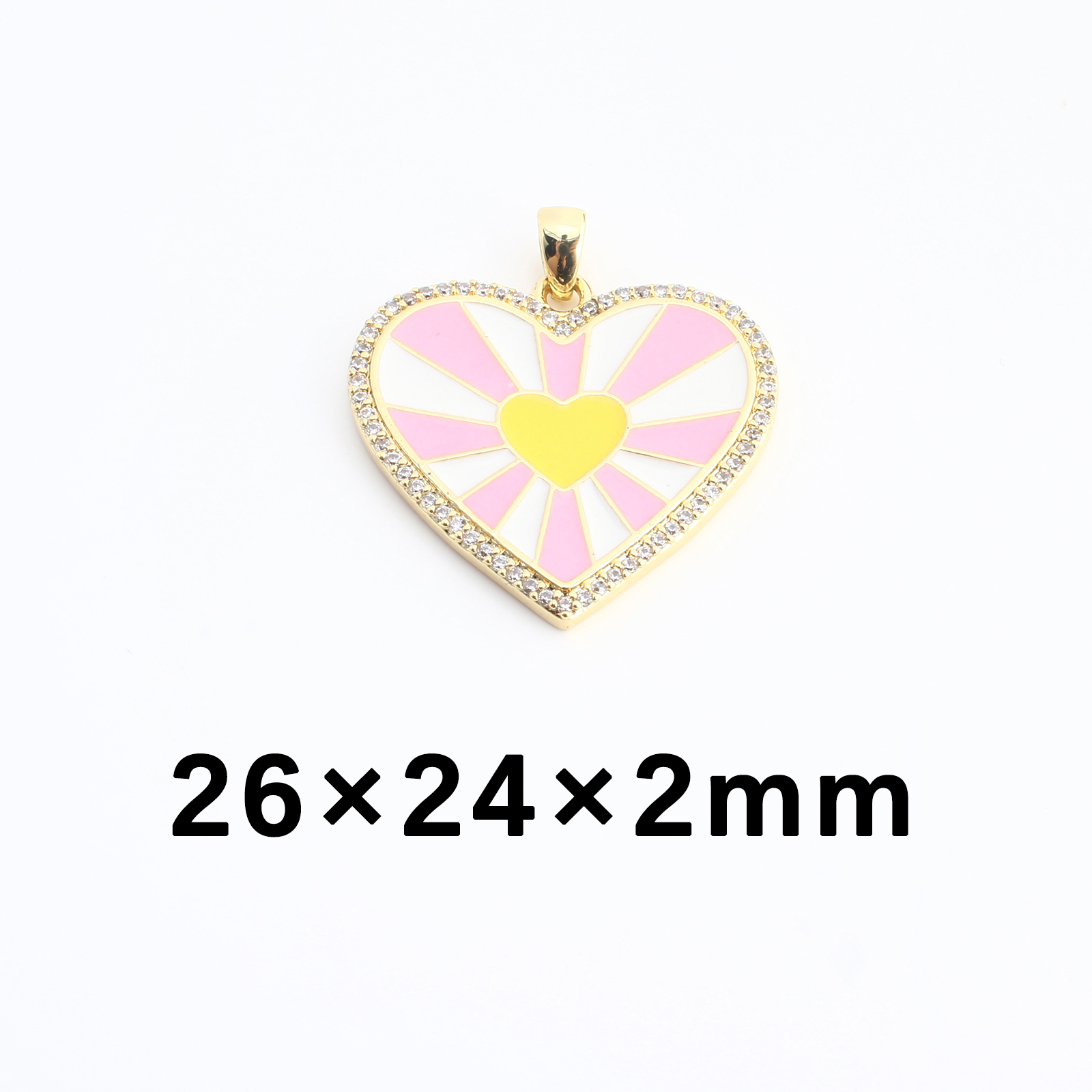 Cubique Pendentif en laiton zircon pavent, coeur, Placage de couleur d'or, DIY & pavé de micro zircon & émail, 26x24x2mm, Vendu par PC