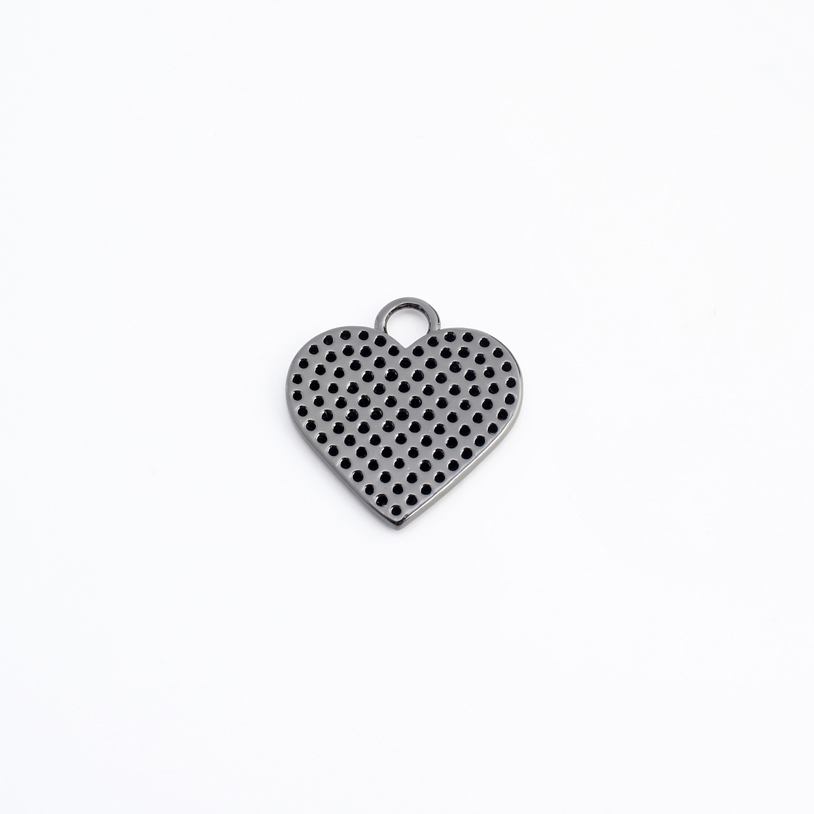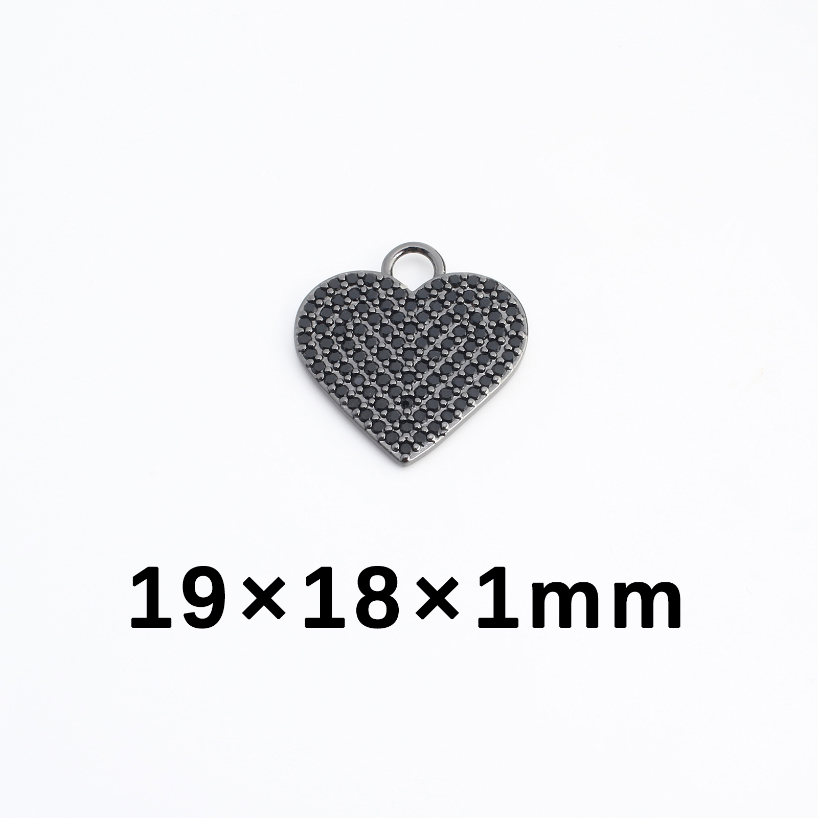 Cubique Pendentif en laiton zircon pavent, coeur, DIY & pavé de micro zircon, noire, 19x18x1mm, Vendu par PC