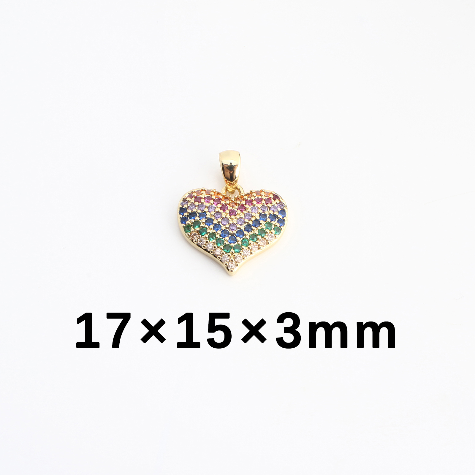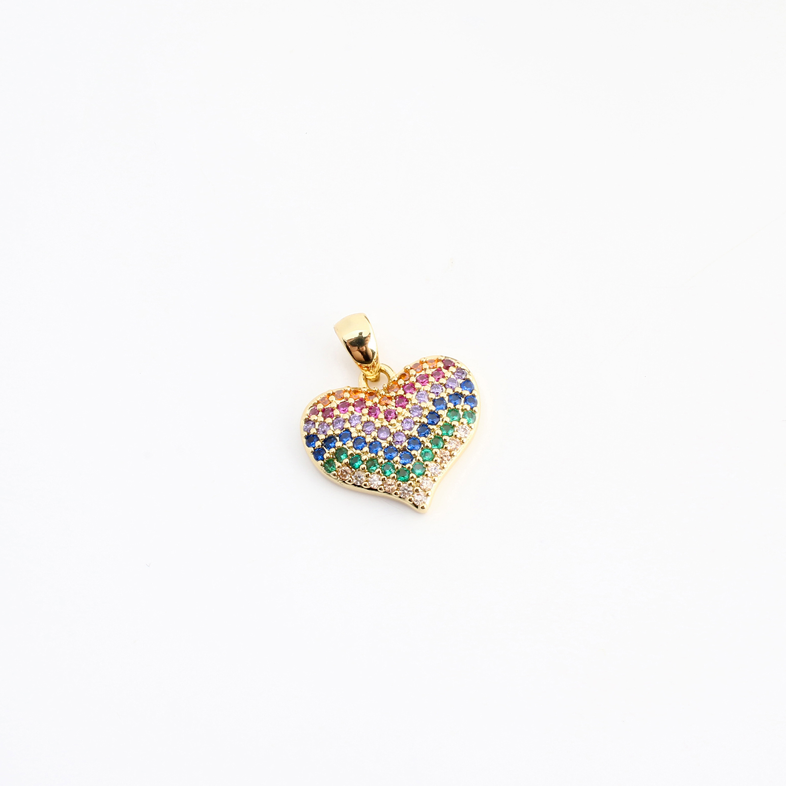 Cubique Pendentif en laiton zircon pavent, coeur, DIY & pavé de micro zircon, doré, 17x15x3mm, Vendu par PC
